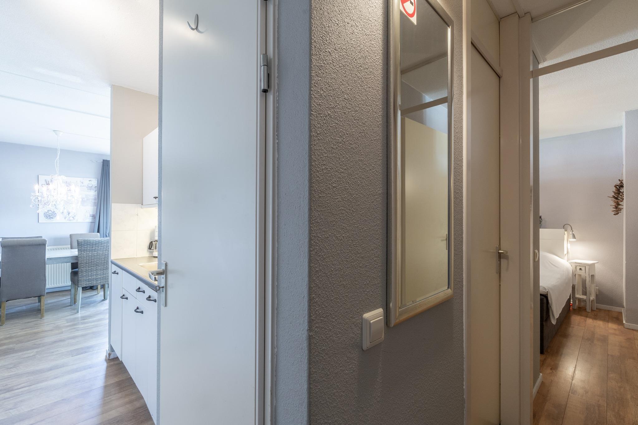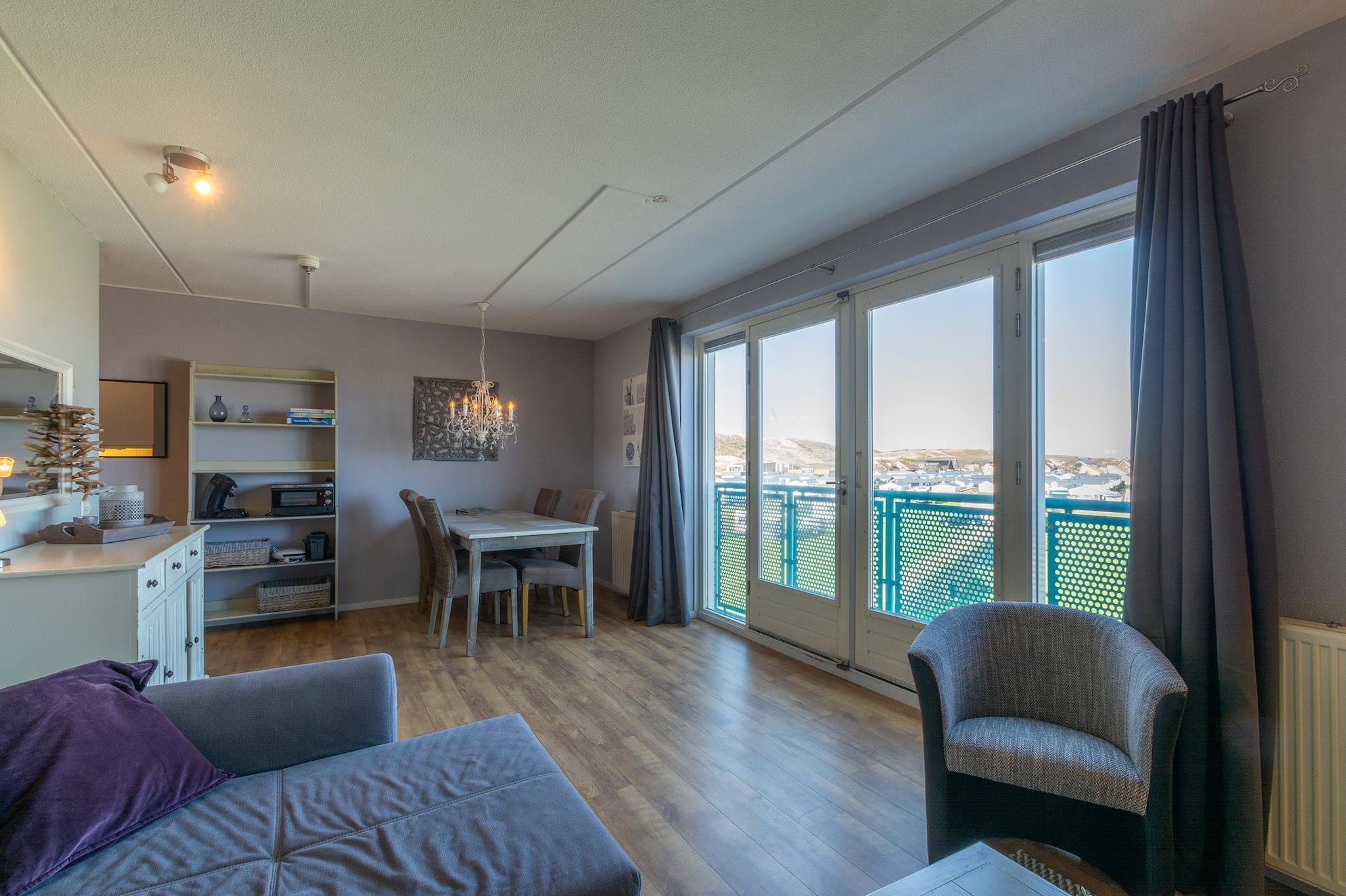 Välkommen till ett inbjudande semesterhus perfekt beläget vid foten av sanddynerna. Denna vackert inredda lägenhet ligger på andra våningen och erbjuder en fridfull oas för din semester vid havet. Lägenheten har en härlig fransk balkong med fantastisk utsikt över sanddynerna, så att du kan njuta av omgivningens naturliga skönhet. Det mysiga vardagsrummet är smakfullt inrett och har en matplats, vilket gör det till en idealisk plats för avkoppling och måltider. Det fullt utrustade köket ser till att du har allt du behöver för matlagning, medan badrummet också är genomtänkt inrett för din bekvämlighet. Leta inte längre, denna lägenhet rekommenderas starkt för en minnesvärd vistelse! Dessutom är du välkommen att ta med en hund för att njuta av din semester med dig.