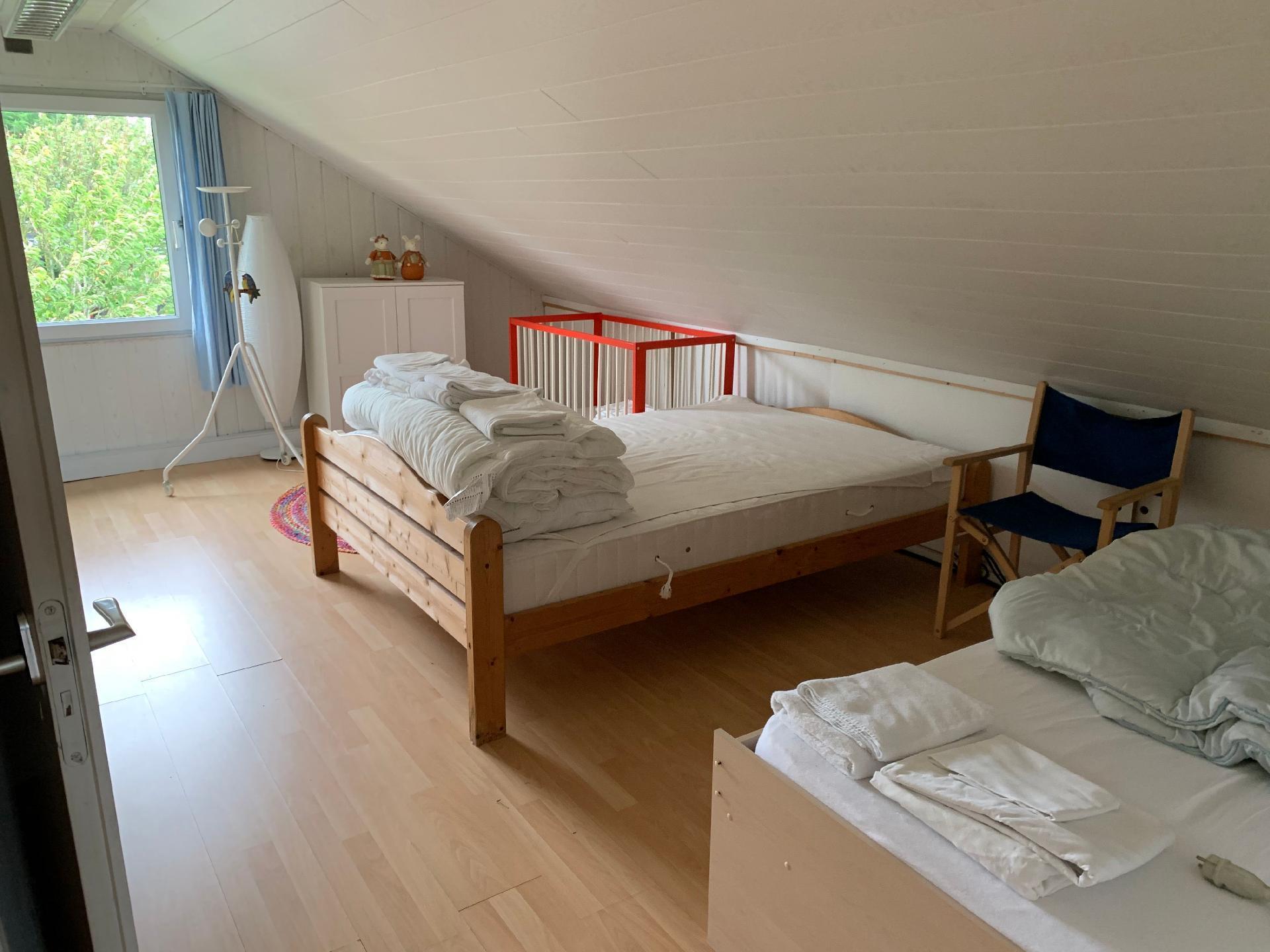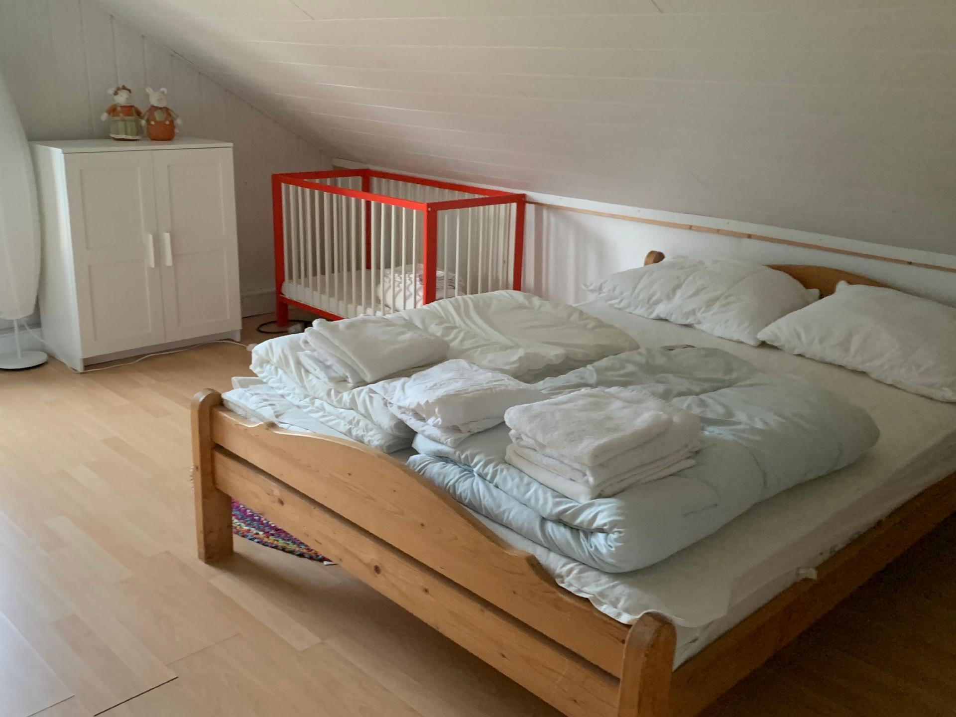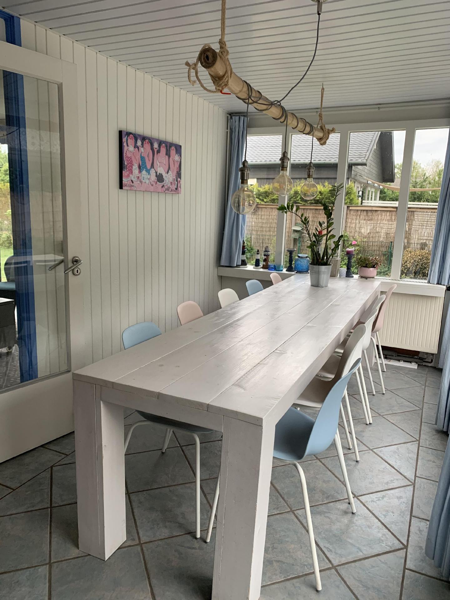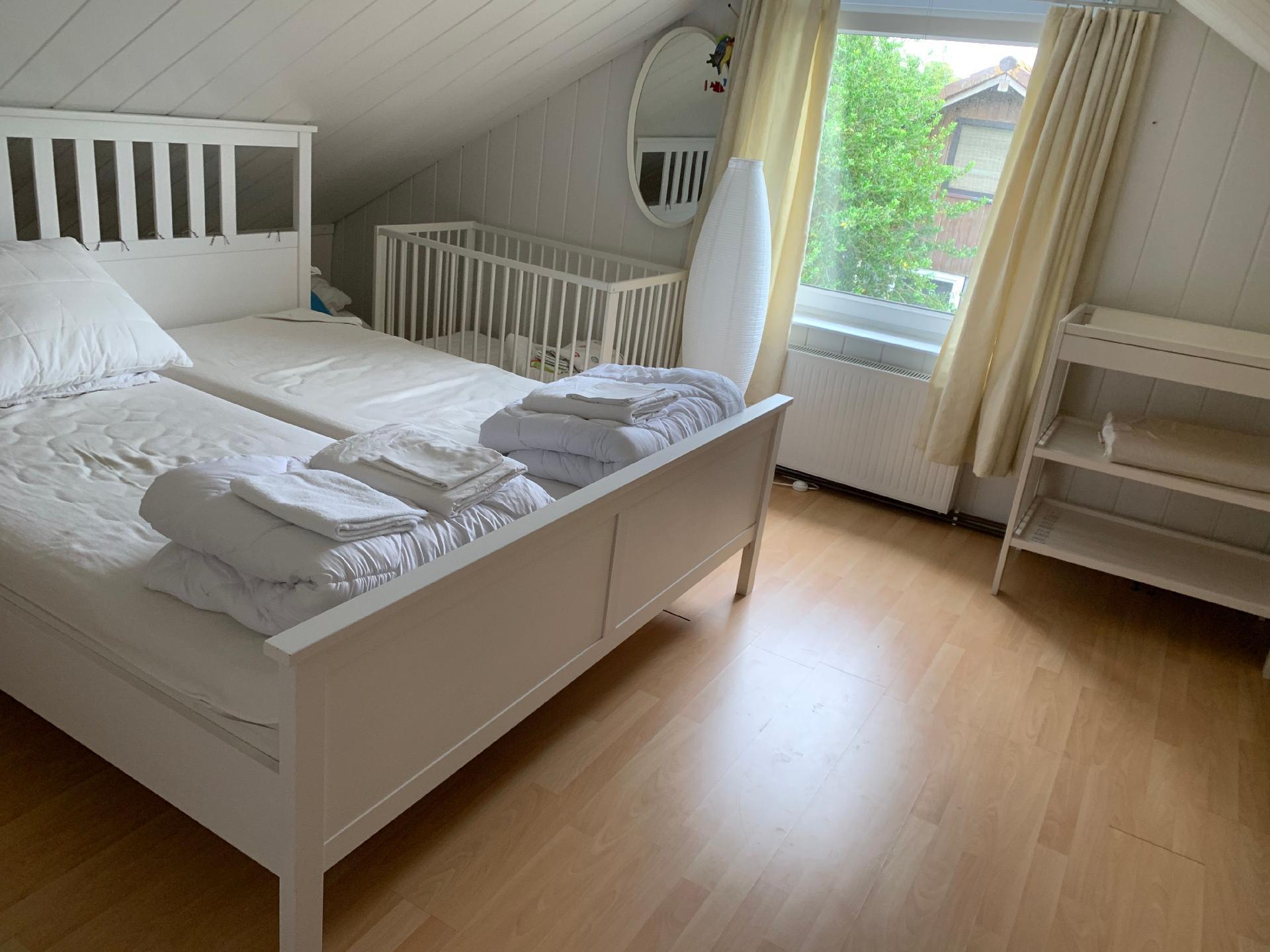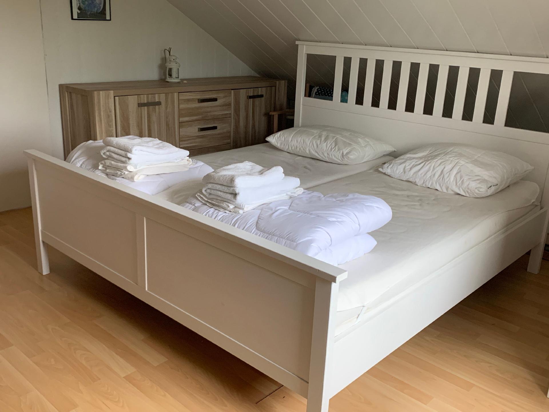 The house is tastefully and practically furnished and is ideal for families with several children or for a number of couples who want to spend a cosy holiday together. On the ground floor (70 m²) is a living room with cosy seating area and a sunny conservatory with a dining table for 10 people. The kitchen is fully equipped with gas cooker, oven, microwave, coffee machine, dishwasher, etc. Downstairs there are two bedrooms, the first with a comfortable double bed (160 cm) and the second with two single beds (box spring 90 cm). There are two bathrooms on the ground floor. The first bathroom has a toilet, sink and shower. Bathroom two has a washbasin and walk-in rain shower. Under the stairs to the first floor are a washing machine and tumble dryer (in cupboard). Upstairs is a spacious bedroom with a comfortable double bed (180 cm), a cot with chest of drawers and a single bed (box spring 90 cm). In the open space on the first floor there is a double bed (140 cm), a cot and a single bed (90 cm). To reach the upstairs bedroom, you have to walk through this space. Also on the first floor is a room with a toilet with washbasin. There is also a drying rack and an ironing board here.