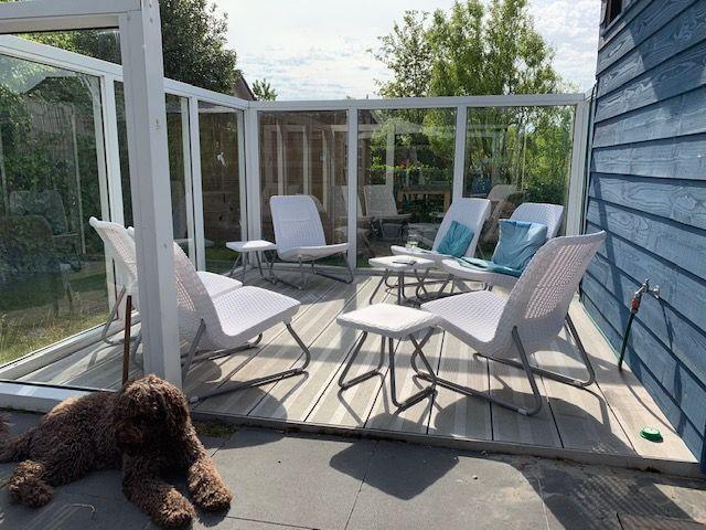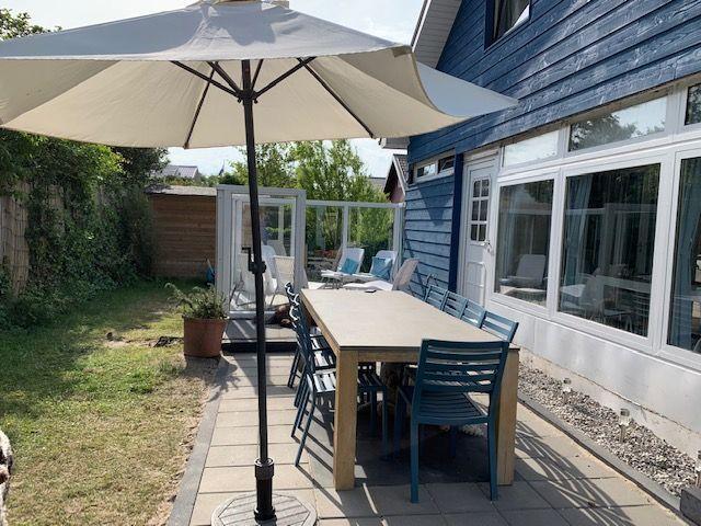 The spacious plot (530 m²) is fully fenced. There is a sunny terrace with a glass windbreak and a dining table for 9 people and there is a covered terrace for long summer evenings outside. Adjacent to the covered terrace is a terrace with a fixed barbecue. Two bicycles are available. In the garden there is a sandpit and a double swing for children. 50 metres away (on the park) is a large playing/sports field.