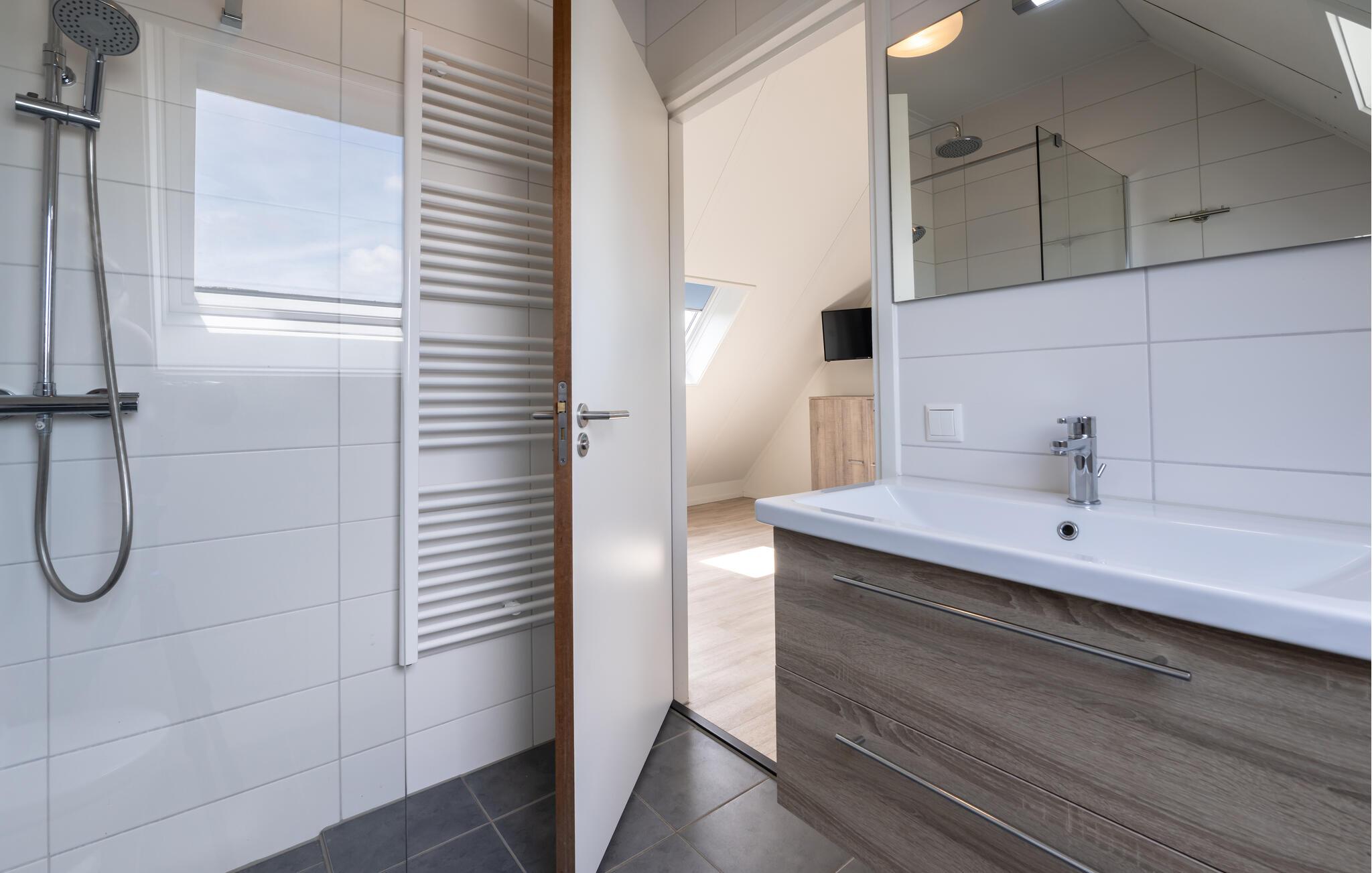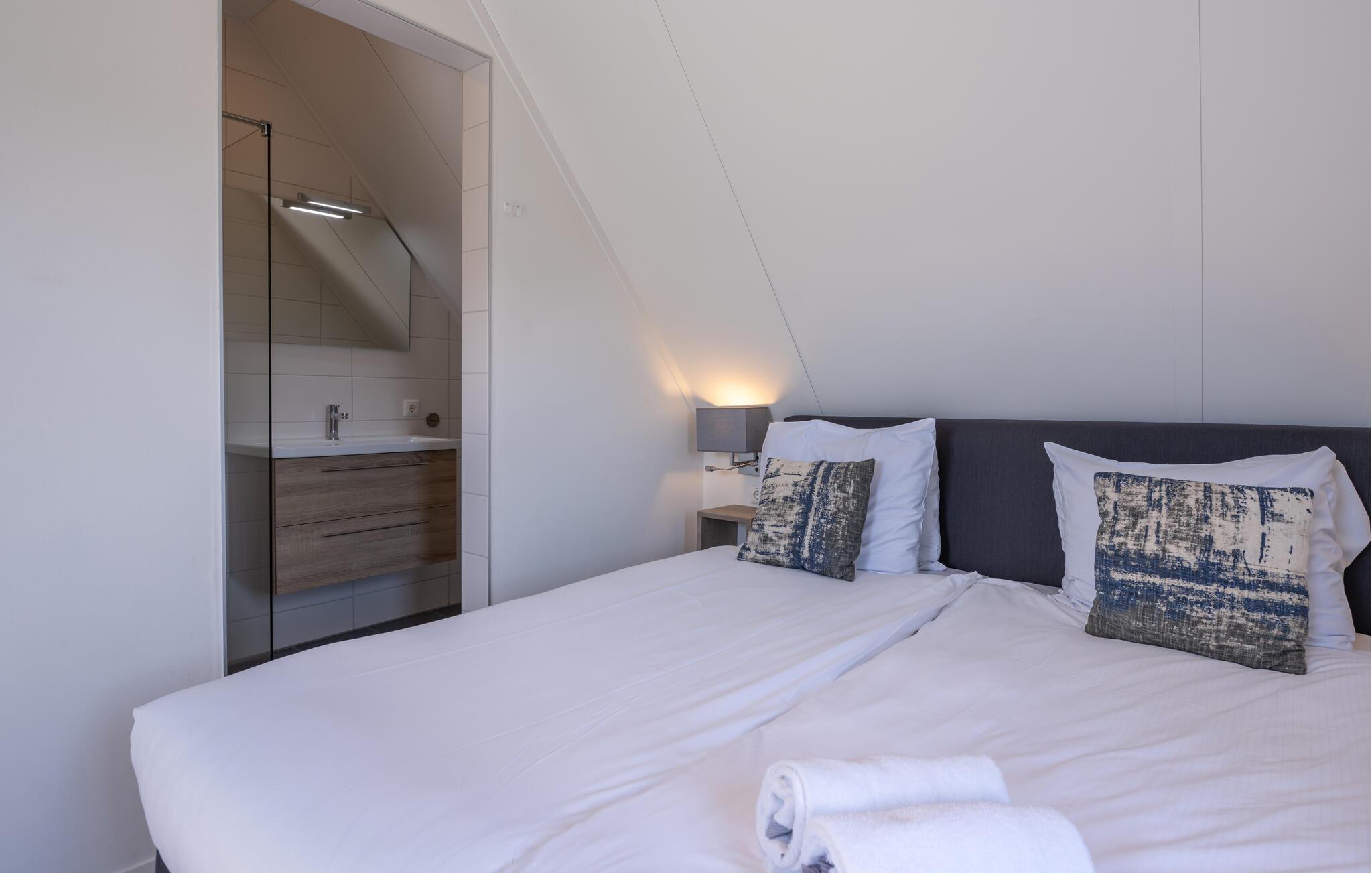 Denna moderna och lyxiga villa nära stranden erbjuder dig den perfekta platsen att varva ner på. De eleganta möblerna och den ljusa, maritima atmosfären skapar en lugn och inbjudande atmosfär. Här har du gott om utrymme för att känna dig som hemma med din familj eller vänner. Kom samman i det öppna vardagsrummet, som framgångsrikt kombinerar kök, matsal och vardagsrum och inbjuder dig att laga mat, äta eller koppla av tillsammans. Vid varmt väder håller luftkonditioneringen på bottenvåningen och i sovrummen på övervåningen dig sval. Badrummen har en regndusch.