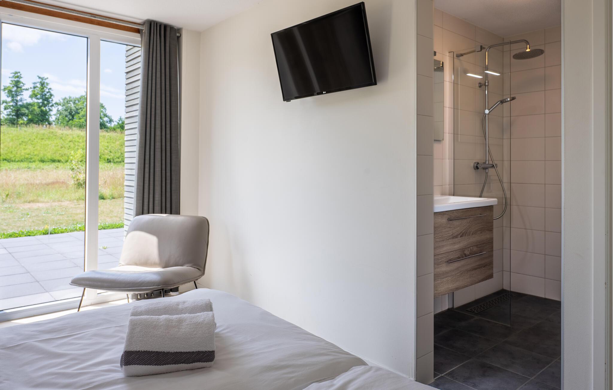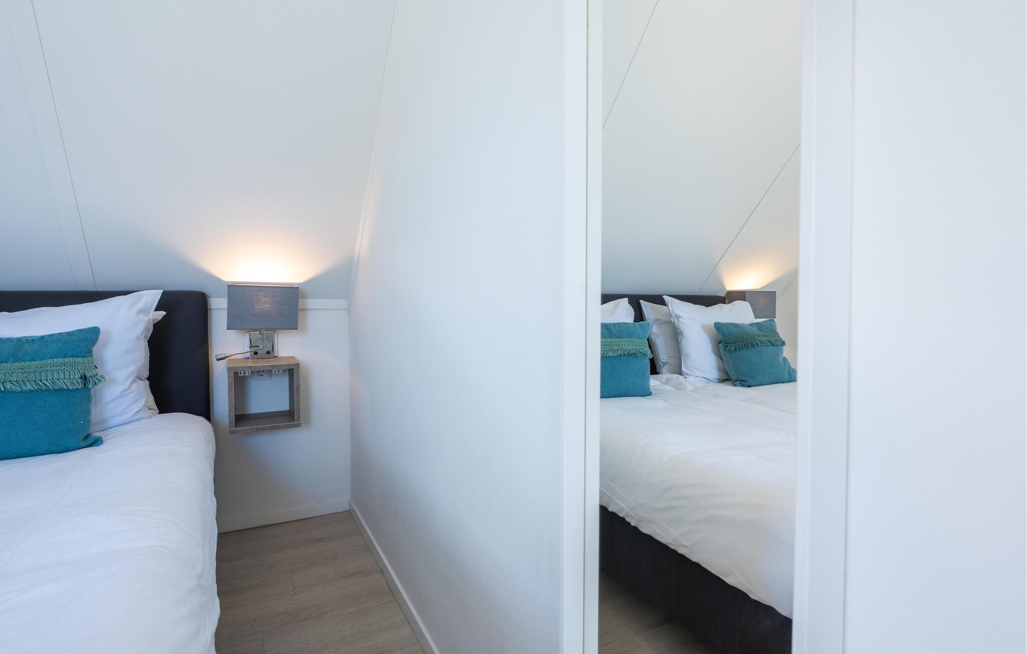 Denna moderna och lyxiga villa nära stranden erbjuder dig den perfekta platsen att varva ner på. De eleganta möblerna och den ljusa, maritima atmosfären skapar en lugn och inbjudande atmosfär. Här har du gott om utrymme för att känna dig som hemma med din familj eller vänner. Kom samman i det öppna vardagsrummet, som framgångsrikt kombinerar kök, matplats och vardagsrum och inbjuder dig att laga mat, äta eller koppla av tillsammans. Badrummen har en regndusch. Från trädgården har du en underbar utsikt över det vidsträckta polderlandskapet.