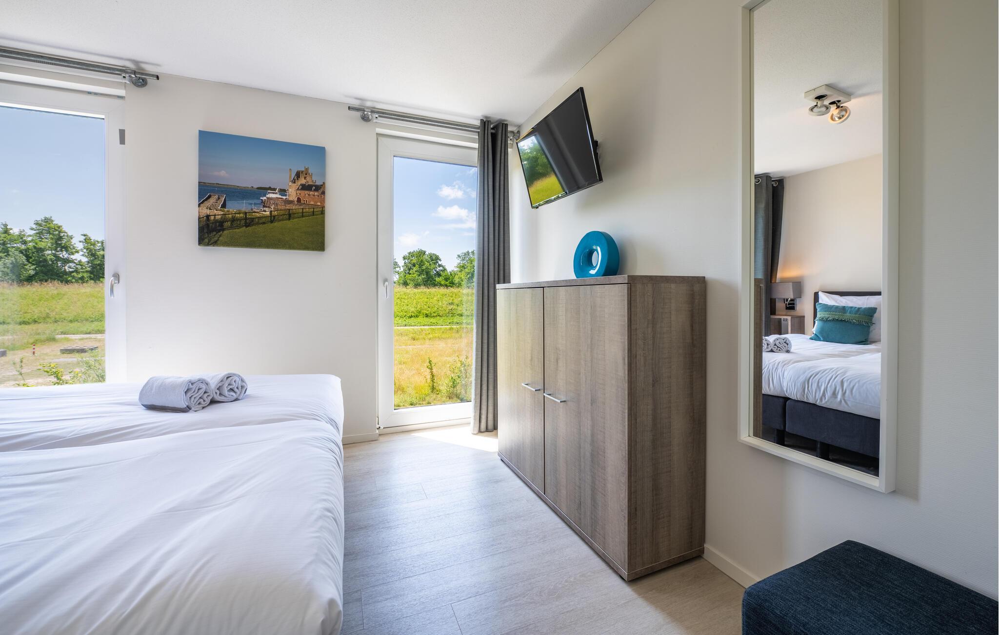 Upptäck det omgivande området Kamperland, som erbjuder en mängd aktiviteter och utflykter. Bara en kort cykeltur från kusten ligger den breda sandstranden som inbjuder till promenader och en avkopplande dag vid havet. Vattensportentusiaster kan ta ut svängarna med surfing, segling eller stand-up paddling. För naturälskare erbjuder Oosterschelde National Park fascinerande flora och fauna, medan städer som Middelburg och Veere lockar besökare med sina historiska sevärdheter och charmiga gator. Kamperland är den perfekta utgångspunkten för en varierad semester.