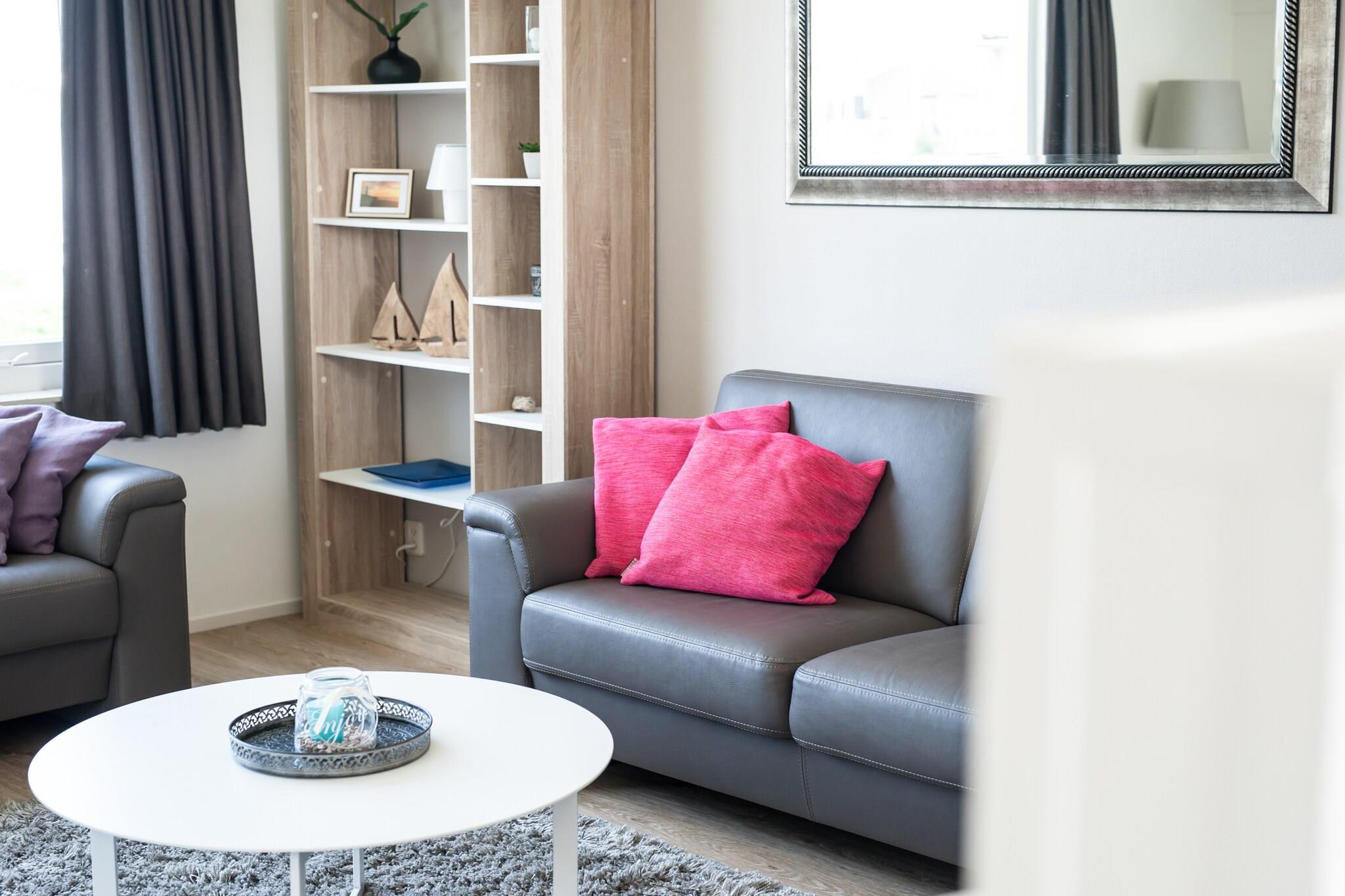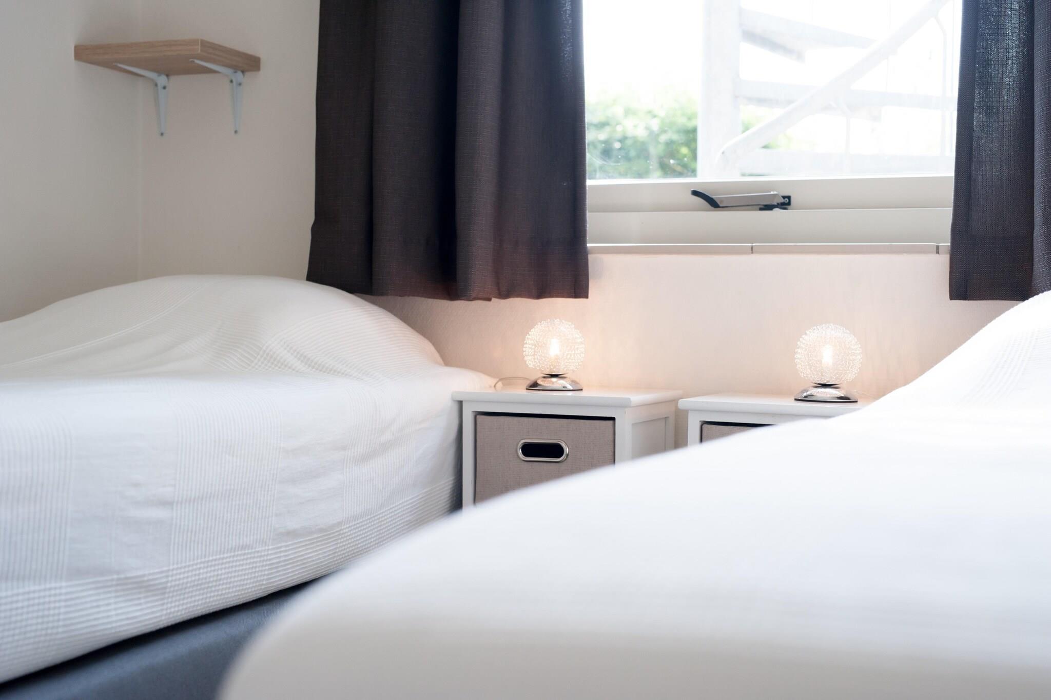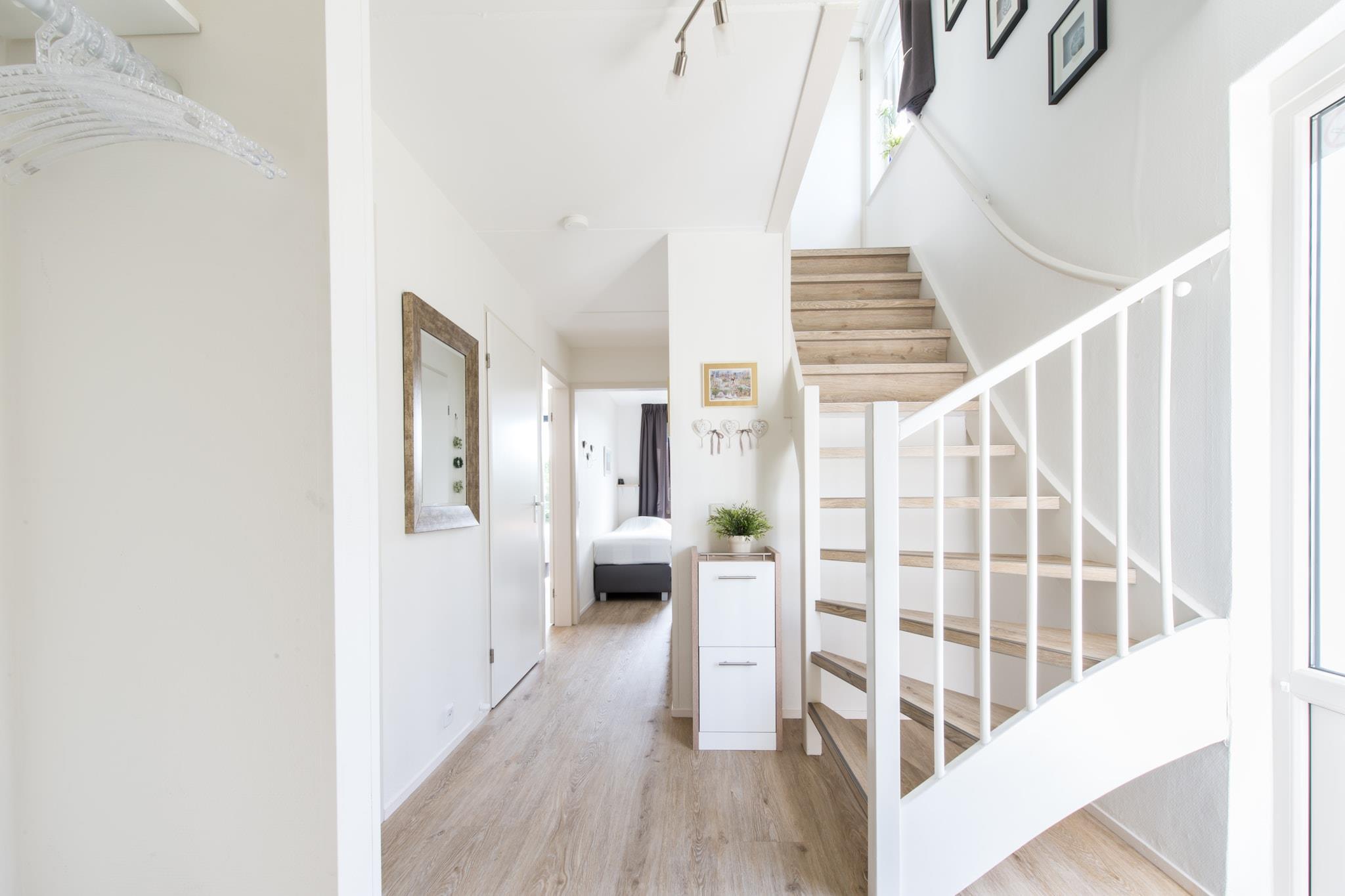 Detta bekvämt inredda parhus med en solig terrass och sydvästläge balkong är utrustad för 6 personer. Huset ligger i ett lugnt läge i utkanten av parken, bara några minuters promenad från stranden. Eftersom vardagsrummet har skapats på övervåningen har du en vidsträckt utsikt från vardagsrummet och från balkongen över de vidsträckta färgglada markerna i Noord-Beveland. Entrén till huset ger tillgång till tre rymliga sovrum, alla utrustade med två enkelsängar med resårmadrasser och tillräckligt med skåputrymme. Det finns två badrum. Ett badrum med regndusch och toalett samt ett badrum med dusch och handfat. Det finns en separat gästtoalett. Från hallen ger trappan tillgång till vardagsrummet på första våningen. Det prydliga vardagsrummet har en plattskärm med digital-TV med utländska kanaler och ger även tillgång till den rymliga balkongen. Det öppna köket är utrustat med bekväma inbyggda vitvaror, såsom en kombinerad mikrovågsugn, kyl-frys, Senseo och diskmaskin. Det finns en tvättmaskin i förrådet. Om du bokar en semester i denna semesterpark kan du lämna bilen bakom dig. Faciliteter finns inom räckhåll, inklusive ett litet snabbköp och en restaurang, men även ett subtropiskt badparadis (mot avgift) där barnen kan leka och plaska hela dagen finns i denna park. Från huset kan du promenera till stranden på några minuter.