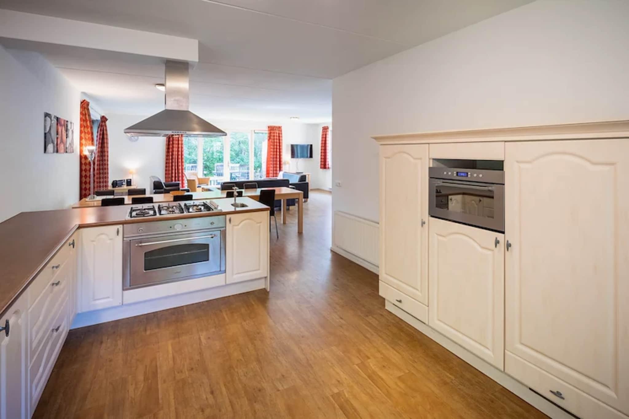 Samla dina favoritpersoner och njut av en oförglömlig vistelse i denna rymliga bungalow, perfekt för familjer och grupper av vänner. Detta fristående semesterhus ligger i hjärtat av Veluwe-skogen på Summio Parc De Berkenhorst och erbjuder både komfort och utrymme för upp till 10 gäster. Stig in i det ljusa vardagsrummet där alla kan koppla av tillsammans i den mysiga sittgruppen eller dela måltider vid det stora matbordet. Det öppna köket gör matlagningen till ett nöje, utrustat med allt från kyl och frys till ugn, mikrovågsugn, diskmaskin och till och med en Senseo-kaffebryggare för de lata morgnarna. Med fem sovrum - ett bekvämt beläget på bottenvåningen - finns det gott om plats för alla. De små är också väl omhändertagna, med en campingsäng, lekhage och barnstol redo vid ankomst. De två badrummen gör morgnarna enkla, med ett badkar för långa bad och ett annat med en duschkabin. Tvättmaskin och torktumlare finns också, vilket gör längre vistelser extra bekväma. För ren avkoppling, gå upp till övervåningen till den traditionella bastun, husets höjdpunkt. Efter en dag med vandring eller cykling genom Veluwe är det den perfekta platsen att varva ner och ladda om. Utanför bjuder den möblerade uteplatsen in till frisk skogsluft och avslappnade samtal under träden. Direkt utanför dörren kan du utforska den skiftande sanden i Kootwijkerzand, cykla genom Hoge Veluwe National Park eller ge dig ut på familjeäventyr i närliggande Apeldoorn, Amersfoort eller Arnhem. Oavsett om det är natur, kultur eller enkel samvaro du söker, är denna bungalow den perfekta miljön för din nästa stora resa.