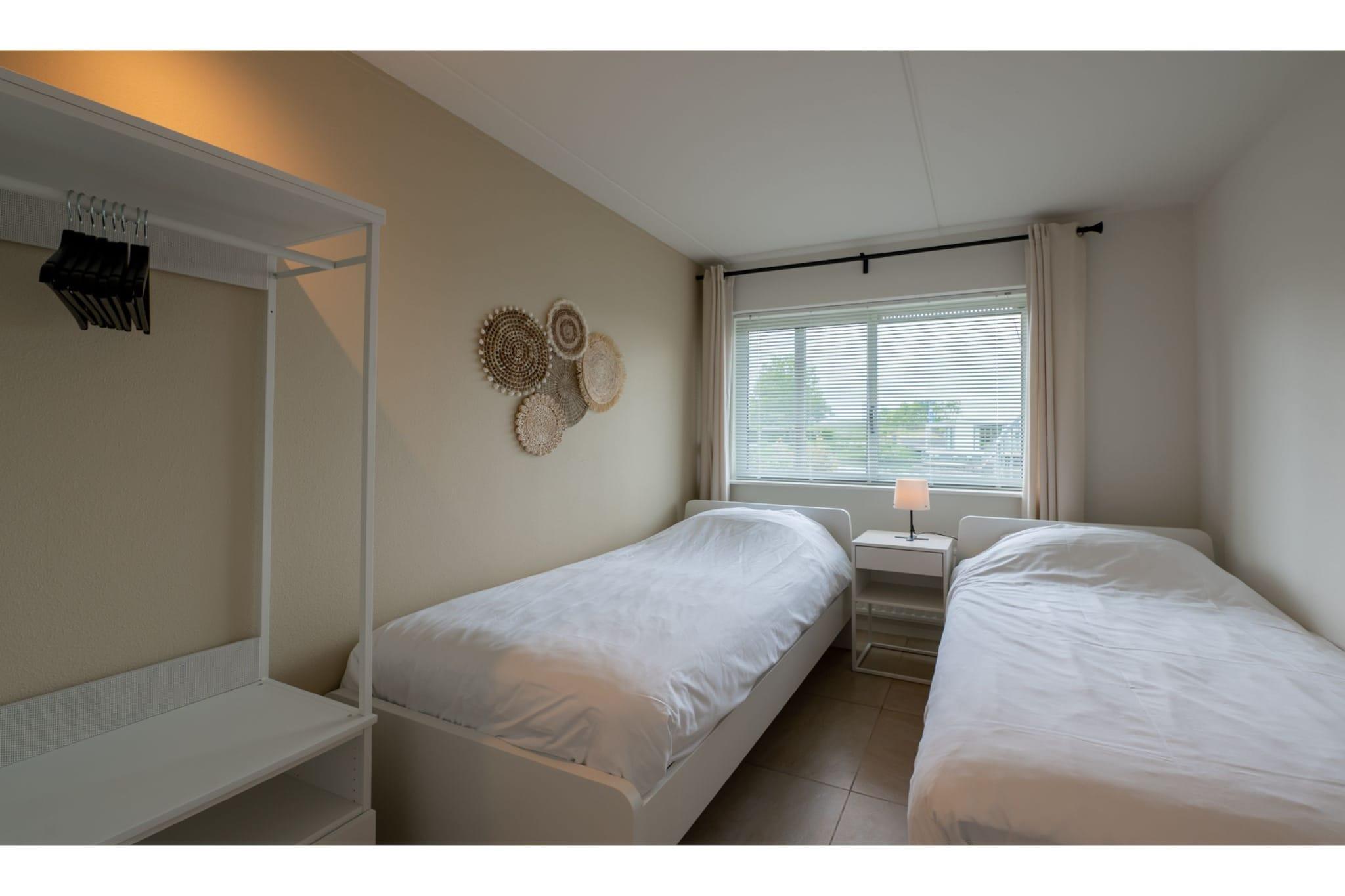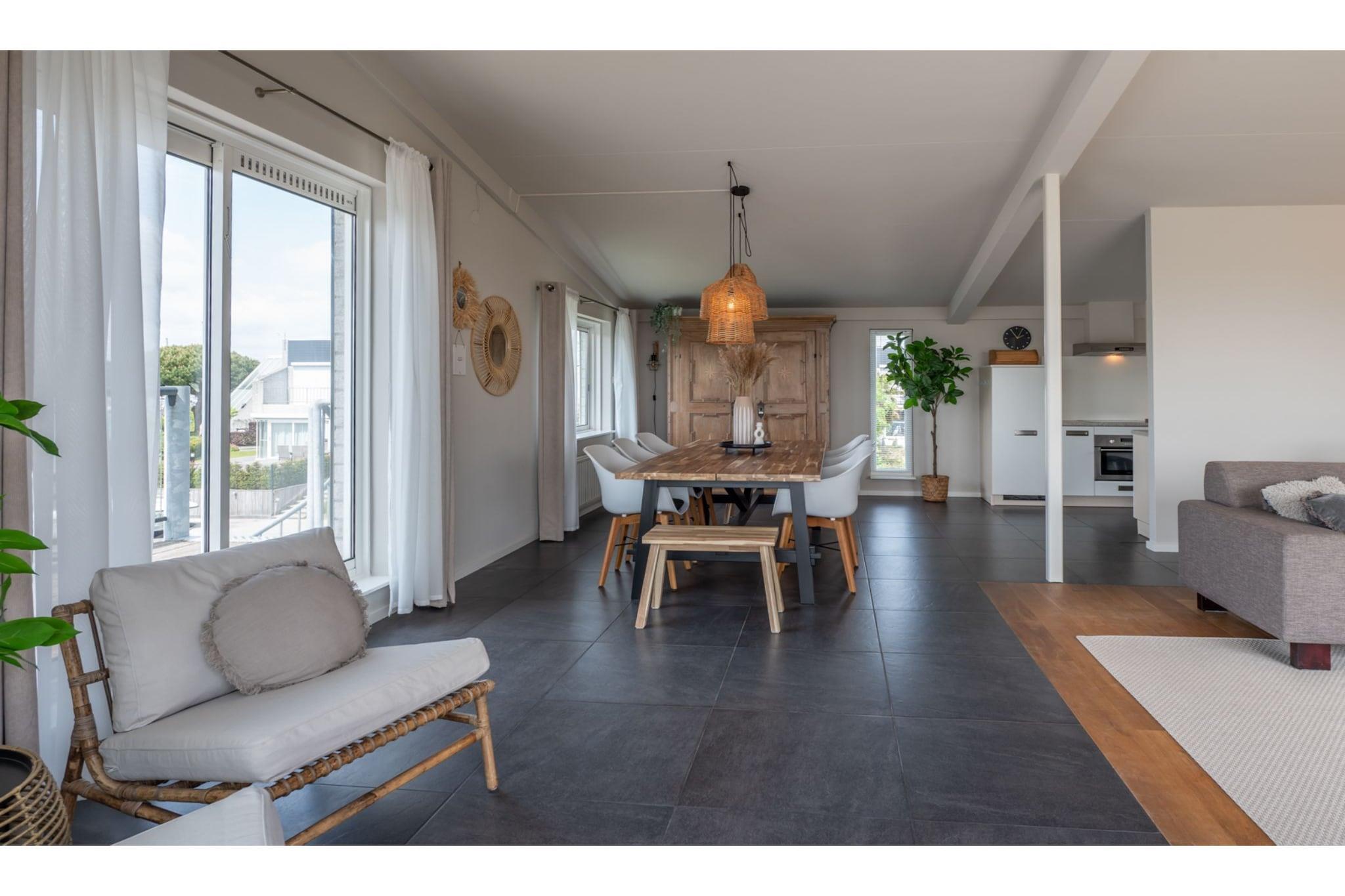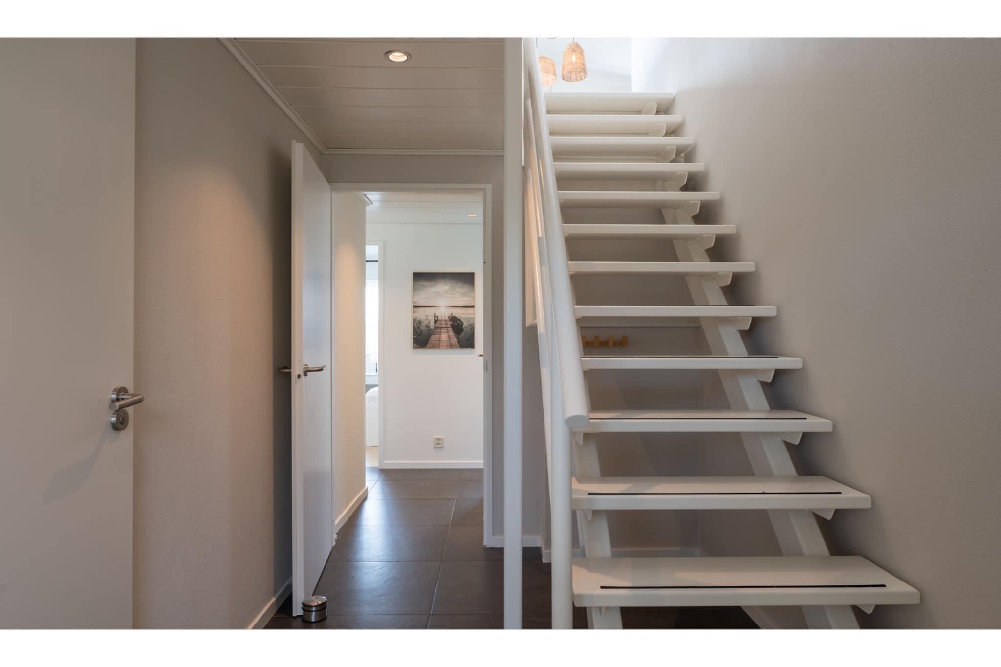 Bottenvåningen: (Hall(toalett ), sovrum(dubbelsäng), sovrum(dubbelsäng), sovrum(2x enkelsäng), sovrum(2x enkelsäng), badrum(dusch(Duschkabin), 2x handfat), badrum(Bubble bath, ångdusch, handfat, tvättmaskin)) På våning 1: (öppet kök(Kokplattor(keramisk), vattenkokare, kaffebryggare(koppar, kaffetratt), ugn, kombi ugn/mikro, diskmaskin, kylskåp), ardags- och matrum(TV(platt-tv, Holländska TV-kanaler, Tyska TV-kanaler, Internationella TV-kanaler), matbord(8 personer), Braskamin(trä), sitthörna(8 personer)), fransk balkong, värme(central, gas)) förråd(frys), brygga, balkong, terrass(privat, 25 m2), trädgård(privat, upplyst, 100 m2), trädgårdsmöbler, parkering