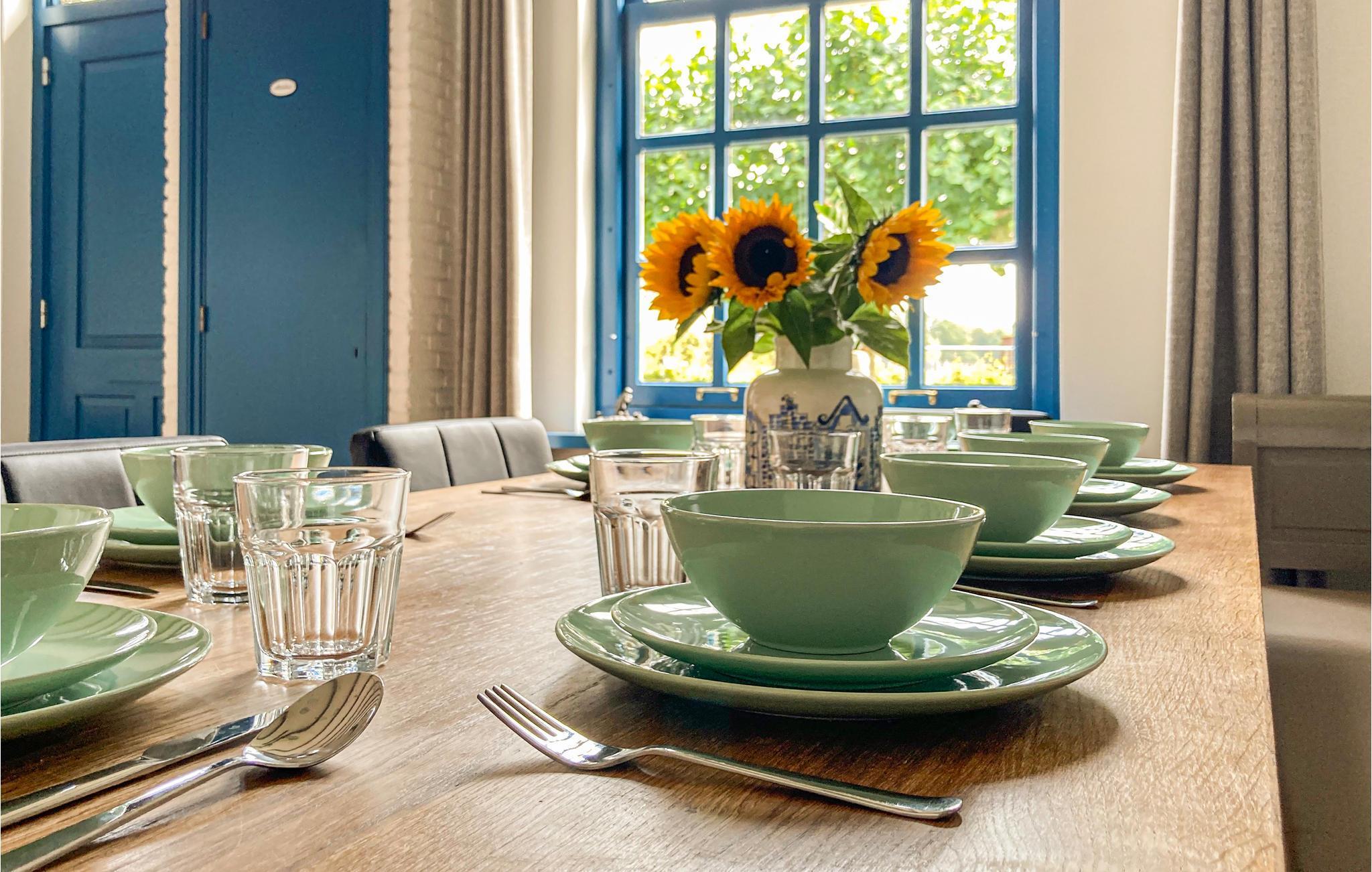 Det traditionellt byggda huset med halmtak välkomnar dig omgivet av ängar och skogar i en särskilt lugn och mysig atmosfär. Kom hit med din stora familj eller en familj med vänner och njut av samspelet mellan kärleksfullt inredda och moderna möbler. Gör det bekvämt för dig i vardagsrummet, där en gasolvärmare ger mysig värme för dina filmkvällar. Om du inte vill laga mat finns det ett mysigt café och en restaurang på området bredvid semesterhuset, som är öppet under dagen fram till de tidiga kvällstimmarna.