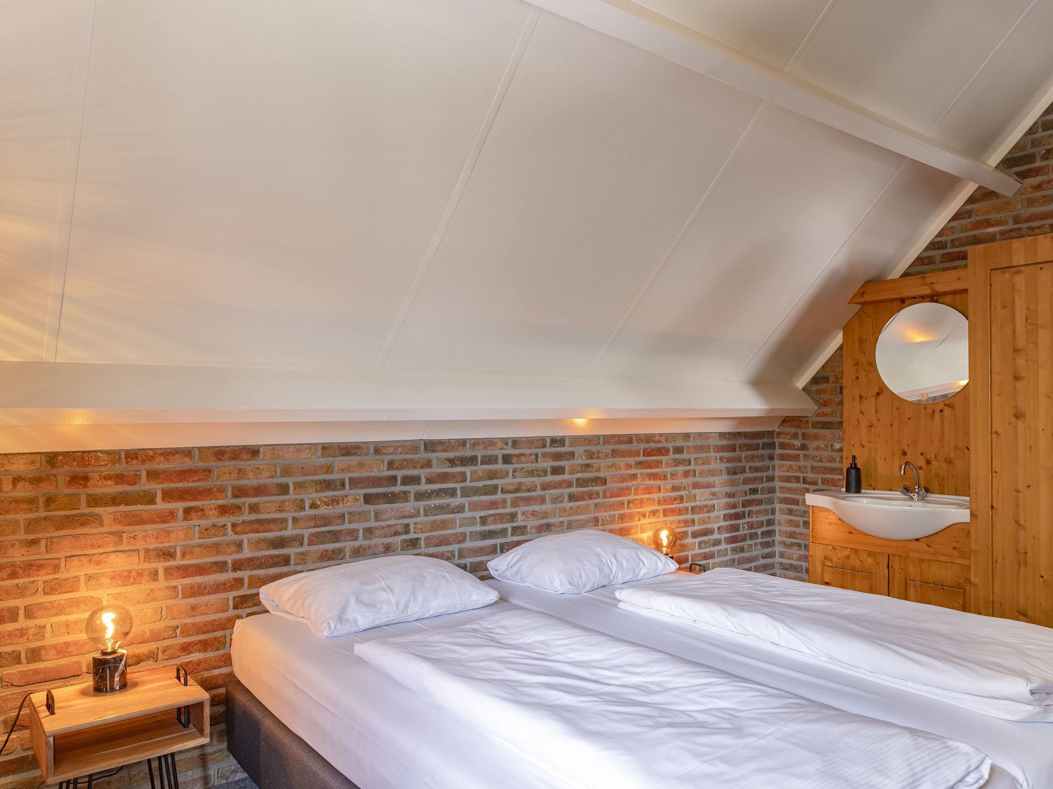 "Boomgaard", 9-room house 250 m2. Comfortable furnishings: living/dining room with dining table and flat screen. Exit to the terrace. Kitchen (dishwasher, Gas stove, 4 gas rings, kettle, freezer, electric coffee machine, combination microwave). Shower/WC, 2 sep. WC's. Heating. Upper floor: with sloping ceilings, 4 rooms, each room with 2 beds. 4 rooms, each room with 1 double bed. Shower/WC. Terrace. Terrace furniture, box-room. Facilities: washing machine, dryer, children's high chair, baby cot. Internet (WiFi, free). Please note: non-smoking house. The accommodation consists of two houses located next to each other.