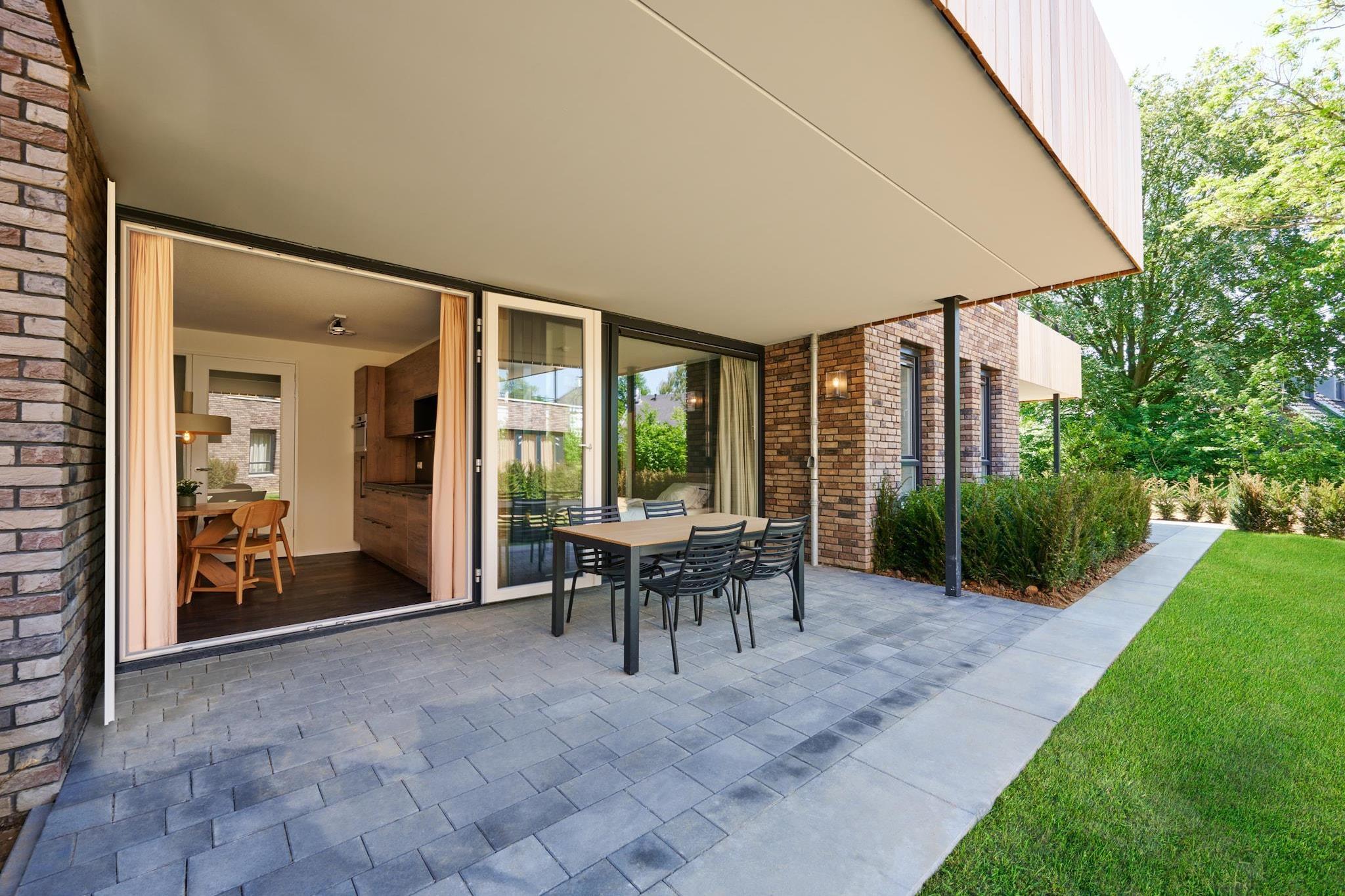 Snygg komfort med en touch av välbefinnande Välkommen till din ljusa och moderna lägenhet i Castellum, det senaste tillskottet (2022) till Resort Maastricht. Oavsett om du är på bottenvåningen eller första våningen, kommer du att njuta av ett mysigt vardagsrum med elegant inredning, ett fullt utrustat öppet kök och två rymliga sovrum - alla med eget badrum med duschkabin. Koppla av i din privata sittgrupp eller gå ut på din soliga balkong eller terrass för lite frisk luft. Du har också tillgång till en uppvärmd inomhuspool med jetstream och vilstolar – perfekt efter en dag med att utforska staden. Utmärkt läge nära City & Spa Bara 4 km från centrum av livliga Maastricht, är denna lägenhet perfekt belägen för både lugn och stadsliv. Du kommer att befinna dig precis bredvid Wellnessresort Maastricht (inträde mot avgift), som erbjuder lyxiga behandlingar och bastur. På resorten är allt genomtänkt designat - från den fridfulla Castellum-zonen till den gemensamma tvättstugan och bilfri parkering för enkel åtkomst. Det är en fridfull hemmabas som ligger bara några minuter från charmen med kullerstensgator, designbutiker och utsikt över floden. Djurvänliga äventyr och restauranger Ta med din lurviga följeslagare - husdjur är välkomna här! Maastricht är känt för att vara hundvänligt, med natursköna parker som Frontenpark och Sint-Pietersberg-leder som erbjuder utrymme att ströva omkring och utforska. Efteråt kan du avnjuta lunch på en husdjursvänlig terrass i Wyck, där vattenskålar och magmassage är standardservice.