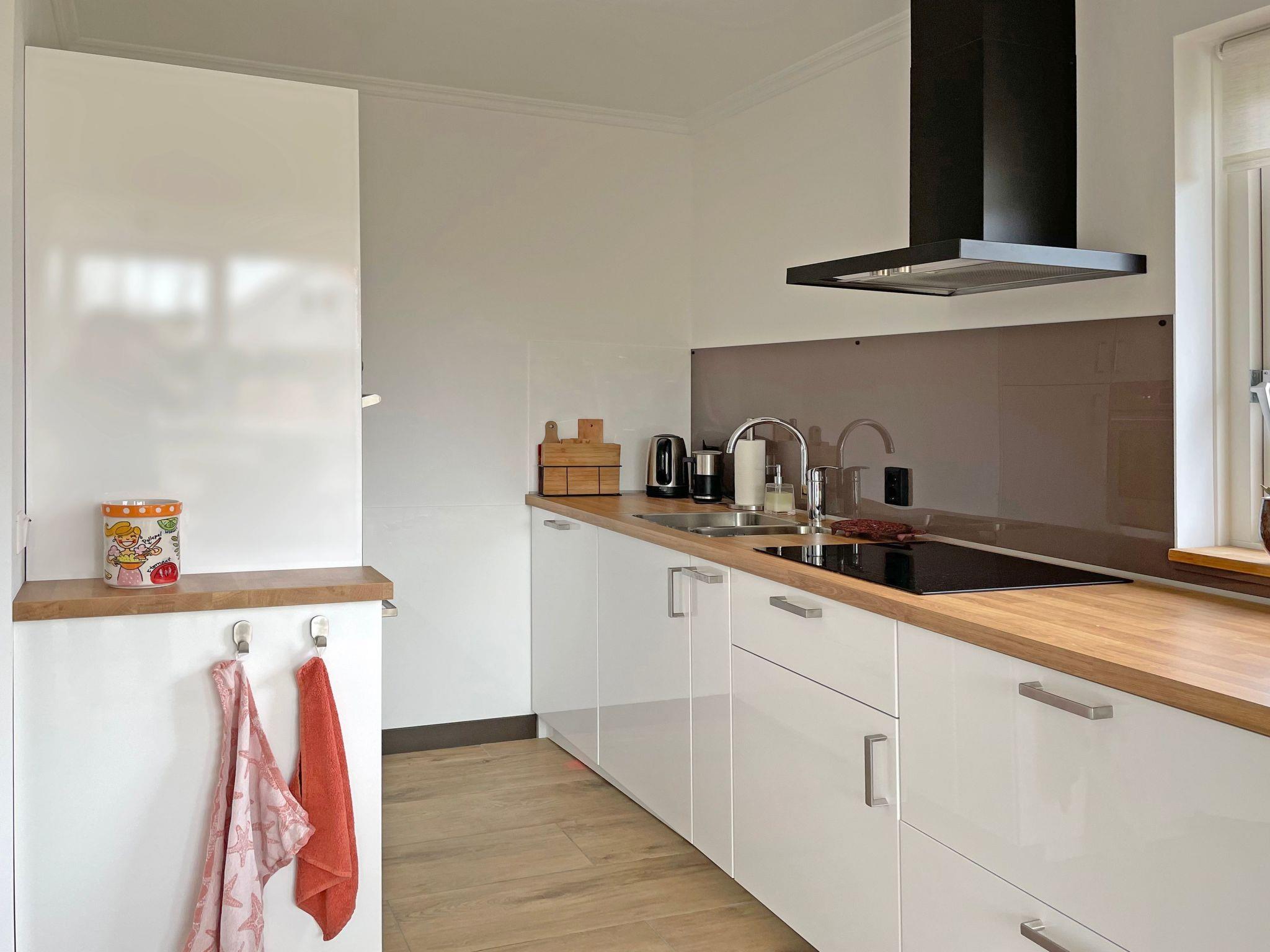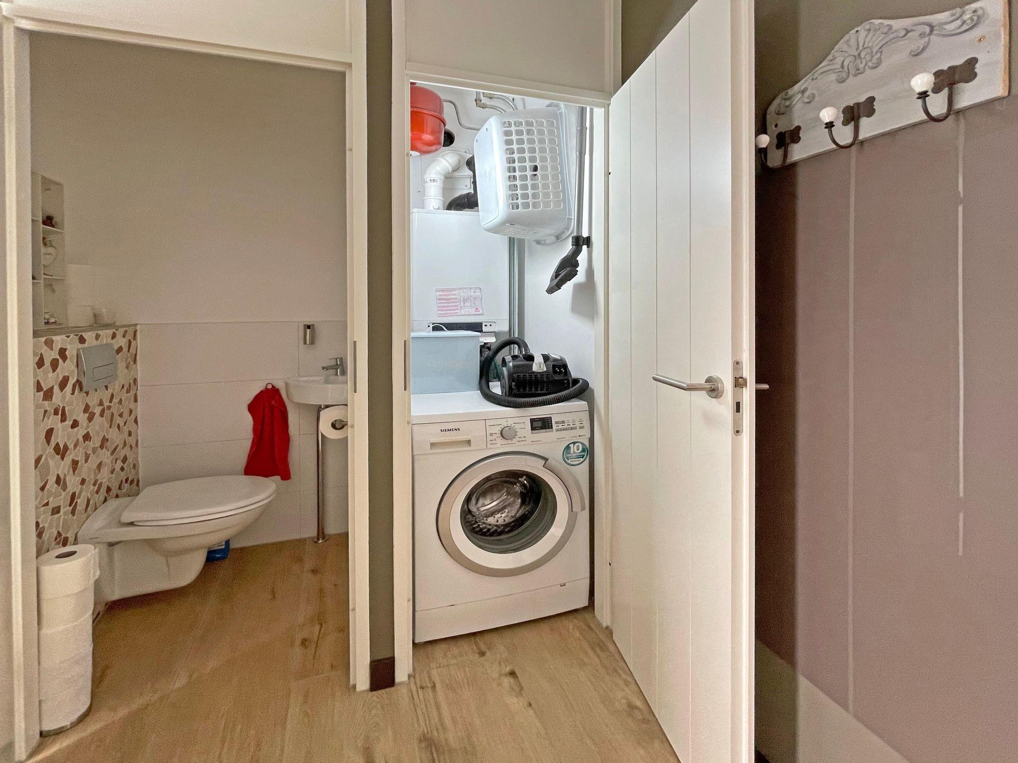 The kitchen is modernly equipped and has an oven with many options, a separate microwave, a dishwasher and a fridge with freezer compartment. There is a guest WC on the ground floor.