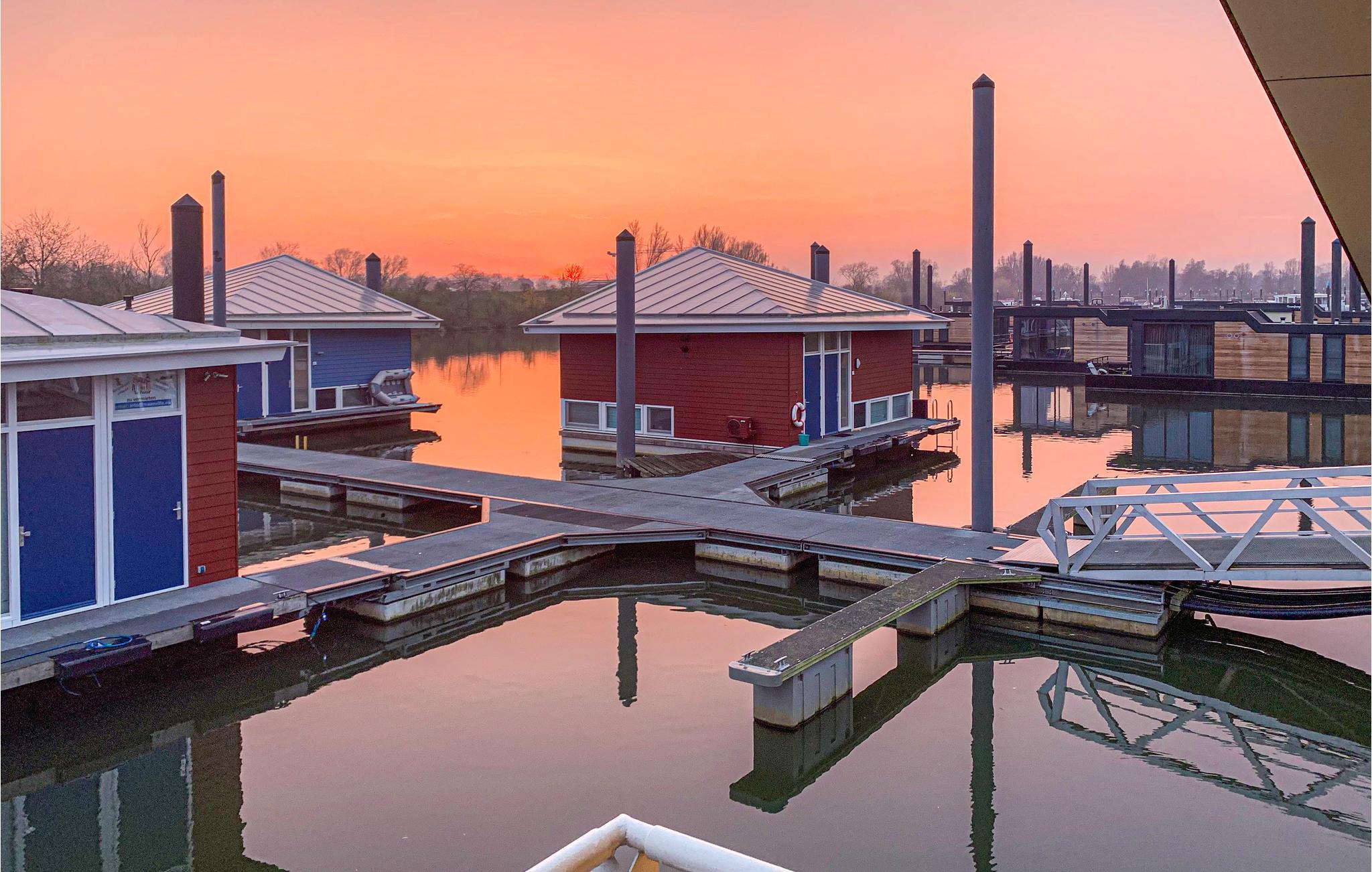 I det här unika semesterhuset, som byggdes 2013, bor du bokstavligen på vattnet! Maasvilla 31 är ett flytande eller amfibiehus som, beroende på Maas vattennivå, flyter på den lugna Maas-sjön eller, vid lågt vattenstånd, står på pålar på botten. Det är ca 120 kvm stort, omgivet av vatten och endast anslutet till land genom en flytande brygga. Inuti hittar du stora rum med möbler av hög kvalitet. De stora fönstren i vardagsrummet erbjuder en magnifik utsikt över vattnet. Vardagsrummet är rymligt med en öppen takås. Genom skjutdörrarna i vardagsrummet når du den möblerade balkongen, varifrån du kan se livet på vattnet på nära håll. På övervåningen finns vardagsrum, kök och toalett. I källaren hittar du de tre sovrummen, ett badrum och en andra toalett.