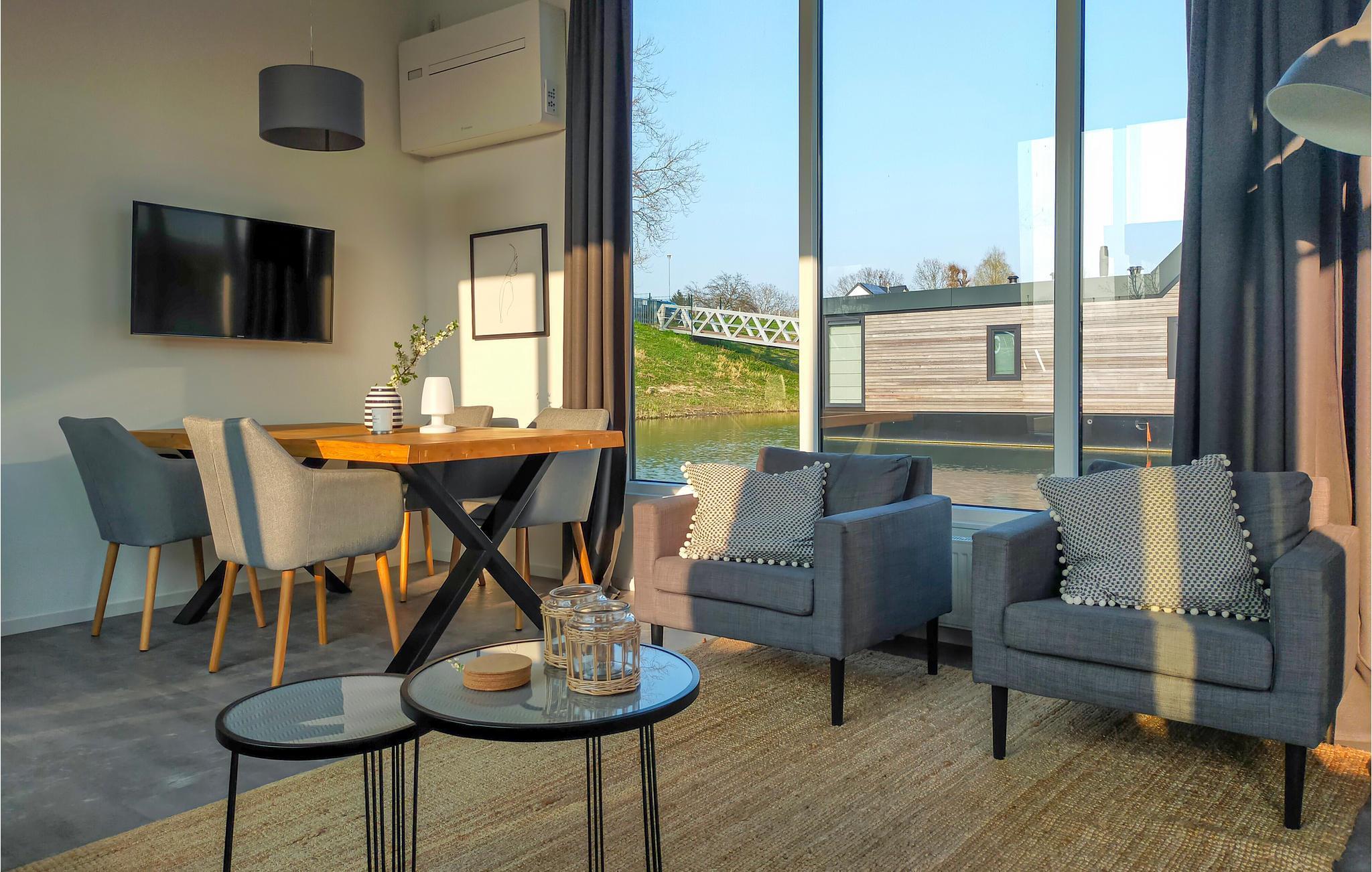 Skulle du vilja bo vid vattnet? Vill du titta på vattenfåglar och förbipasserande båtar från din terrass? Detta flytande hus för 4 personer med 2 sovrum, badrum och fullt utrustat kök, som öppnades 2020, erbjuder ett utmärkt tillfälle att njuta av vatten och natur i fullständig frihet och lugn. Husbåten ligger inte i första raden, du har ändå en vacker utsikt över vattnet. Vid högvatten har du en vacker utsikt över vallen och landskapet bakom den.