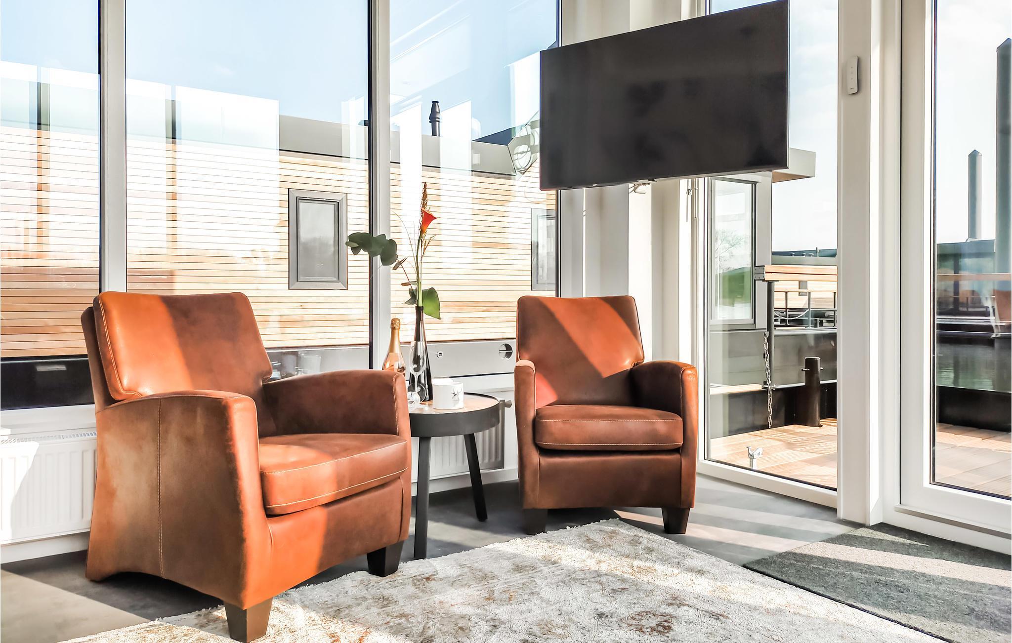 Du kan förtöja en mindre båt, kanot eller SUP till det flytande fritidshuset. Från sitt- och matplatsen samt terrassen har du en vacker utsikt över det omgivande vattnet. För att vara en husbåt är köket över genomsnittet och vardagsrummen särskilt mysiga.