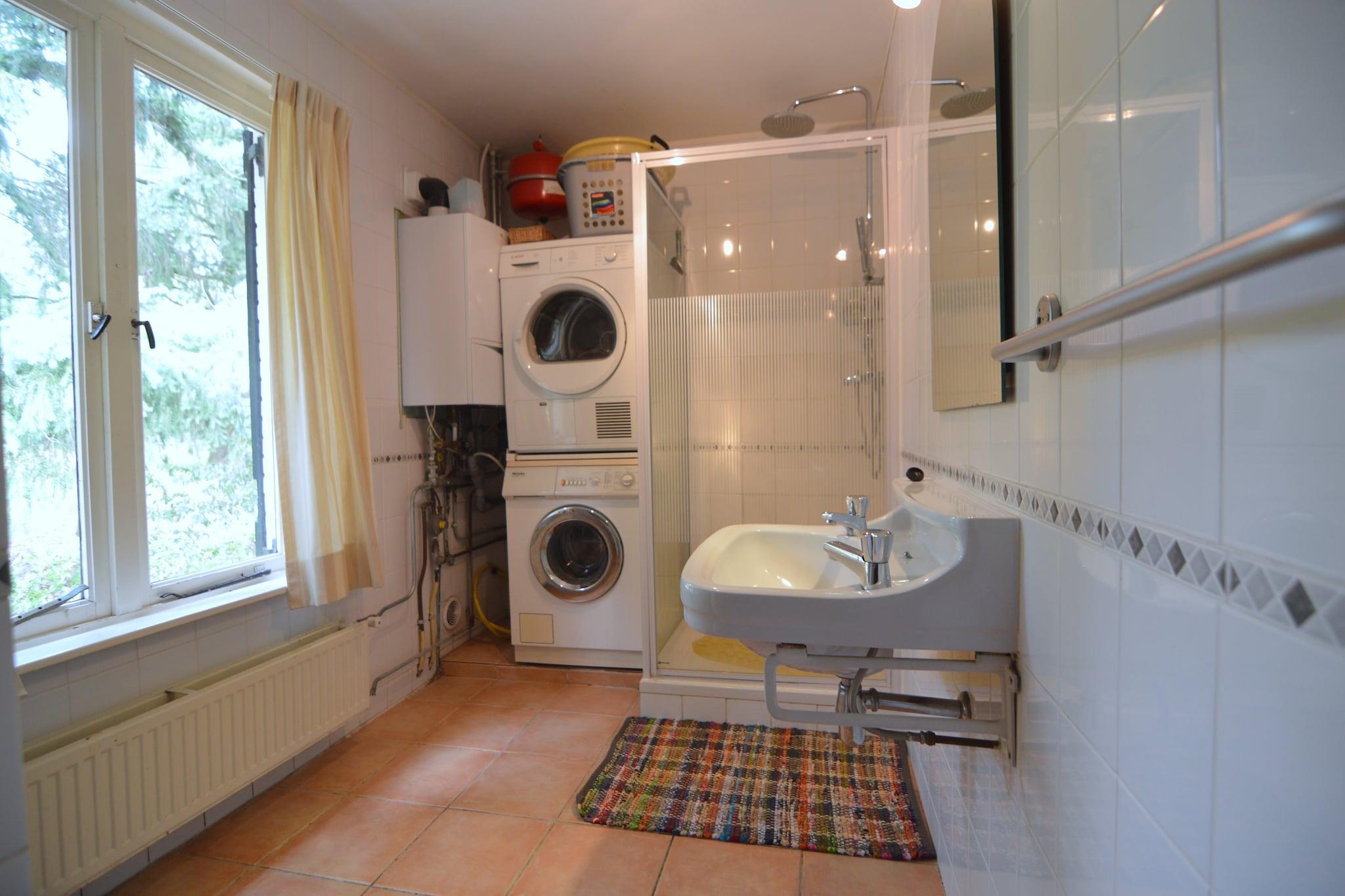 Bottenvåningen: (Vardagsrum(TV(digital), öppen spis, DVD-spelare, radio), Vardagsrum(TV(digital), öppen spis), Kök(spis(Spis med 4 kokplattor), ugn, mikrovågsugn, diskmaskin, kylskåp), sovrum(Dubbelsäng eller 2 enkelsängar, handfat), sovrum(Dubbelsäng eller 2 enkelsängar, handfat), badrum(torktumlare, dusch, toalett , tvättmaskin), badrum(badkar, massagedusch, infraröd bastu, toalett ), WC) På våning 1: (sovrum(via en ganska brant trappa)(2x enkelsäng, trappgrind), sovrum(via en ganska brant trappa)(2x enkelsäng, trappgrind), loft(via en ganska brant trappa)(dubbelsäng), Öppen övervåning(via en ganska brant trappa)(våningssäng, handfat, trappgrind)) öppen spis, kaffebryggare, mikrovågsugn, diskmaskin, dusch eller badkar, dusch, infraröd bastu, tvättmaskin, projektorduk(på begäran), flip-over(på begäran), projektor(på begäran), värme(central), terrass(tak), terrass, trädgård, trädgårdsmöbler, trädgårdsmöbler, solstole, grill, grill, studsmatta, studsmatta(privat), solstolar, Parasoll, tennisbana, tennisbana(privat), bordtennis, fotbollsspel, spjälsäng, spjälsäng, barnstol, strykbräda, sällskapsspel