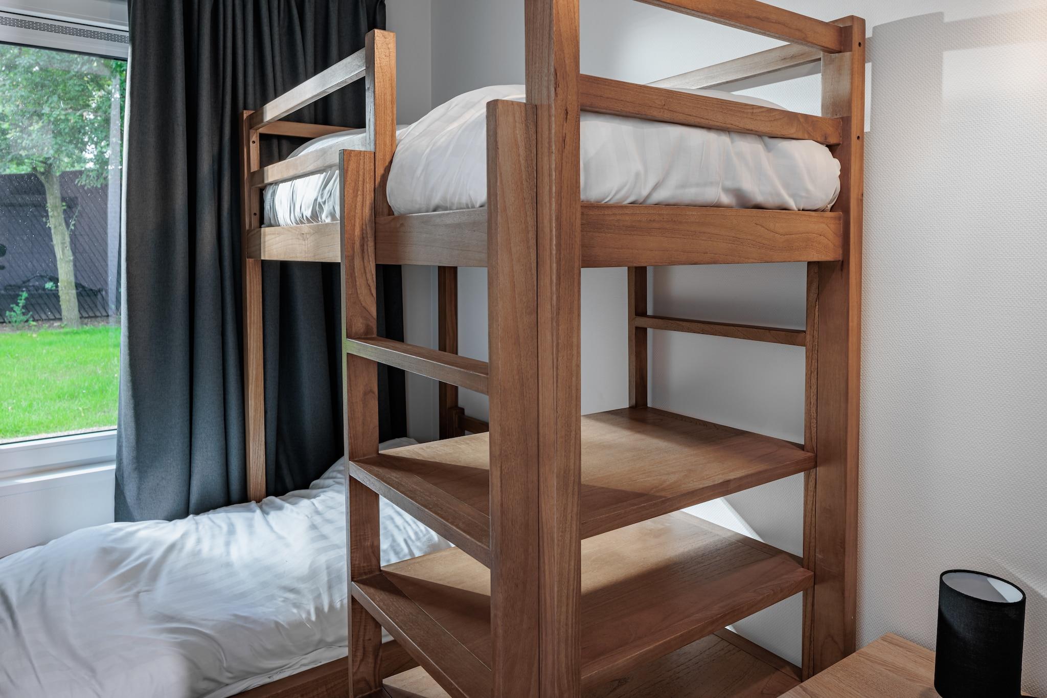 Familjevänlig komfort i en naturlig miljö Välkommen till din mysiga tillflyktsort i hjärtat av Holiday Park Schaijk! Omgiven av frodiga skogar och glittrande vatten, är denna envånings, husdjursvänliga lodge perfekt för familjer som söker komfort och äventyr. Bara 2 km från den charmiga staden Schaijk och 12 km från staden Oss, erbjuder lodgen en fridfull oas med enkel tillgång till affärer, aktiviteter och kultur. Snygg, barnsäker och fullt utrustad Denna vackert inredda lodge rymmer upp till 4 vuxna och 2 barn. Vardagsrummet är varmt och välkomnande med golvvärme och en smart-TV med streaming, medan det moderna köket är utrustat med diskmaskin och kombinerad mikrovågsugn. De tre sovrummen erbjuder flexibilitet: två med resårmadrasser (dubbel eller tvåbäddsrum), och ett tredje med en mysig våningssäng i barnstorlek (80x170 cm). Badrummet har en duschkabin, golvvärme och en toalett – perfekt efter en dag utomhus. Djurvänliga äventyr och lokala godsaker Ta med din lurviga vän! Den inhägnade trädgården och terrassen tillåter barn och husdjur att leka säkert. Det närliggande naturreservatet Maashorst är idealiskt för natursköna hundpromenader och kul utan koppel. För att äta middag, bege dig till ställen som välkomnar husdjur som De Notaris för regionala rätter eller njut av en kaffe på Brabants Bakkie medan din hund vilar vid dina fötter. Oavsett om du kopplar av i trädgården eller utforskar naturstigar, är denna lodge din familjs inkörsport till det bästa i norra Brabant.