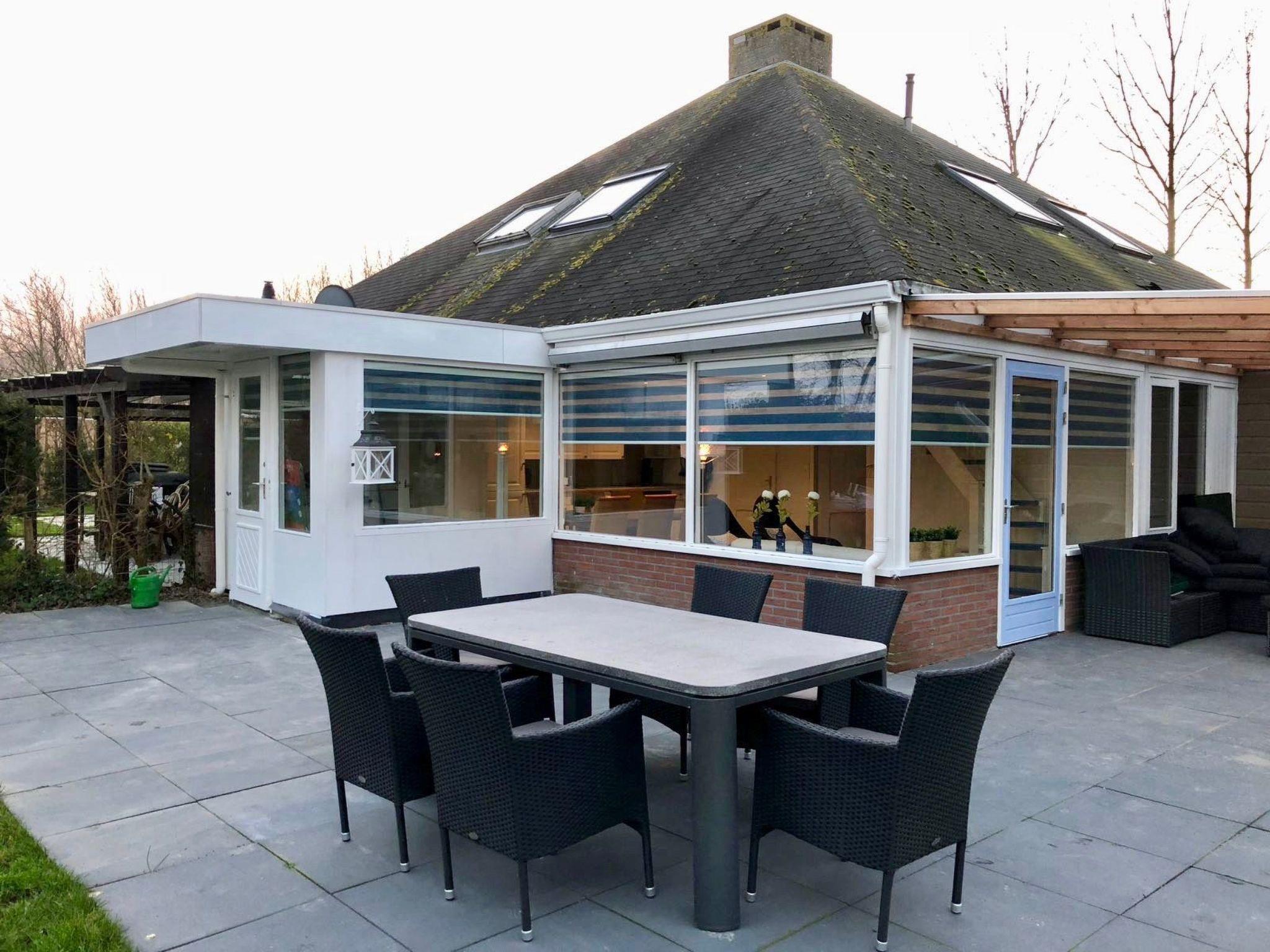 In the garden, you will find a lovely lounge set under a patio cover so you can sit outside for a long time in the evening. There is also a dining table with chairs and an electrically operated sunshade.