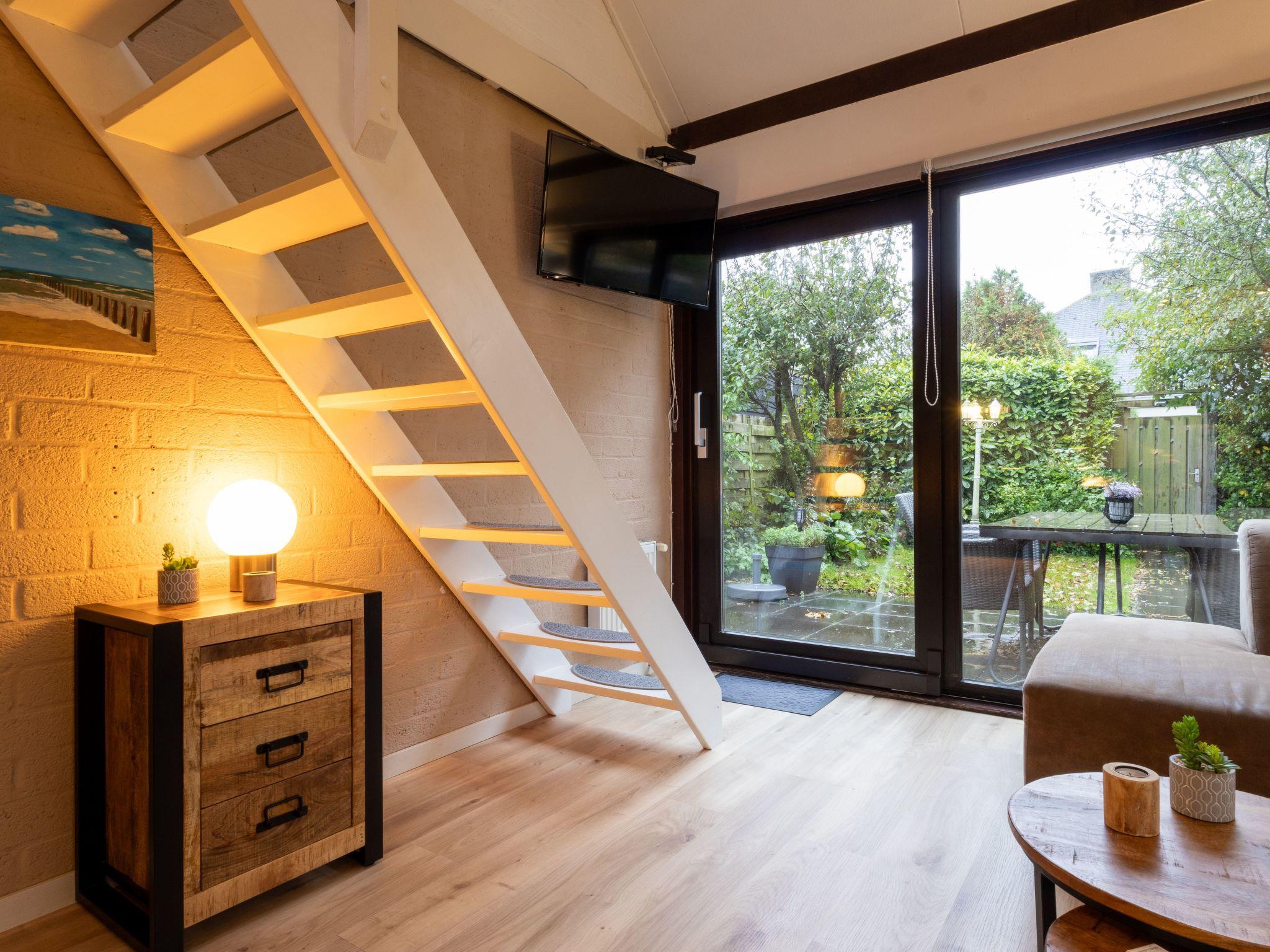 The bungalow is suitable for up to four people. The open living room with a sofa is equipped with an LCD TV with 70 Channels including the most well-known 15 German channels, central heating and a dining area. The open kitchen has a Senseo coffee machine, filter coffee machine, kettle, microwave, dishwasher, fridge-freezer, induction hob and washing machine. The bungalow has a bedroom on the ground floor and a bedroom on the top floor. The downstairs bedroom is furnished with an electric Auping double bed (200 cm x 200 cm), while the upstairs bedroom is furnished with two 70 x 200 cm box-spring single beds. The bathroom is on the ground floor and features a shower (rain, massage and jets), a toilet and a sink.