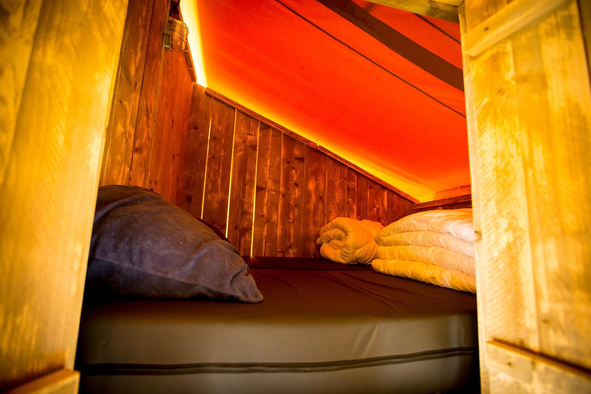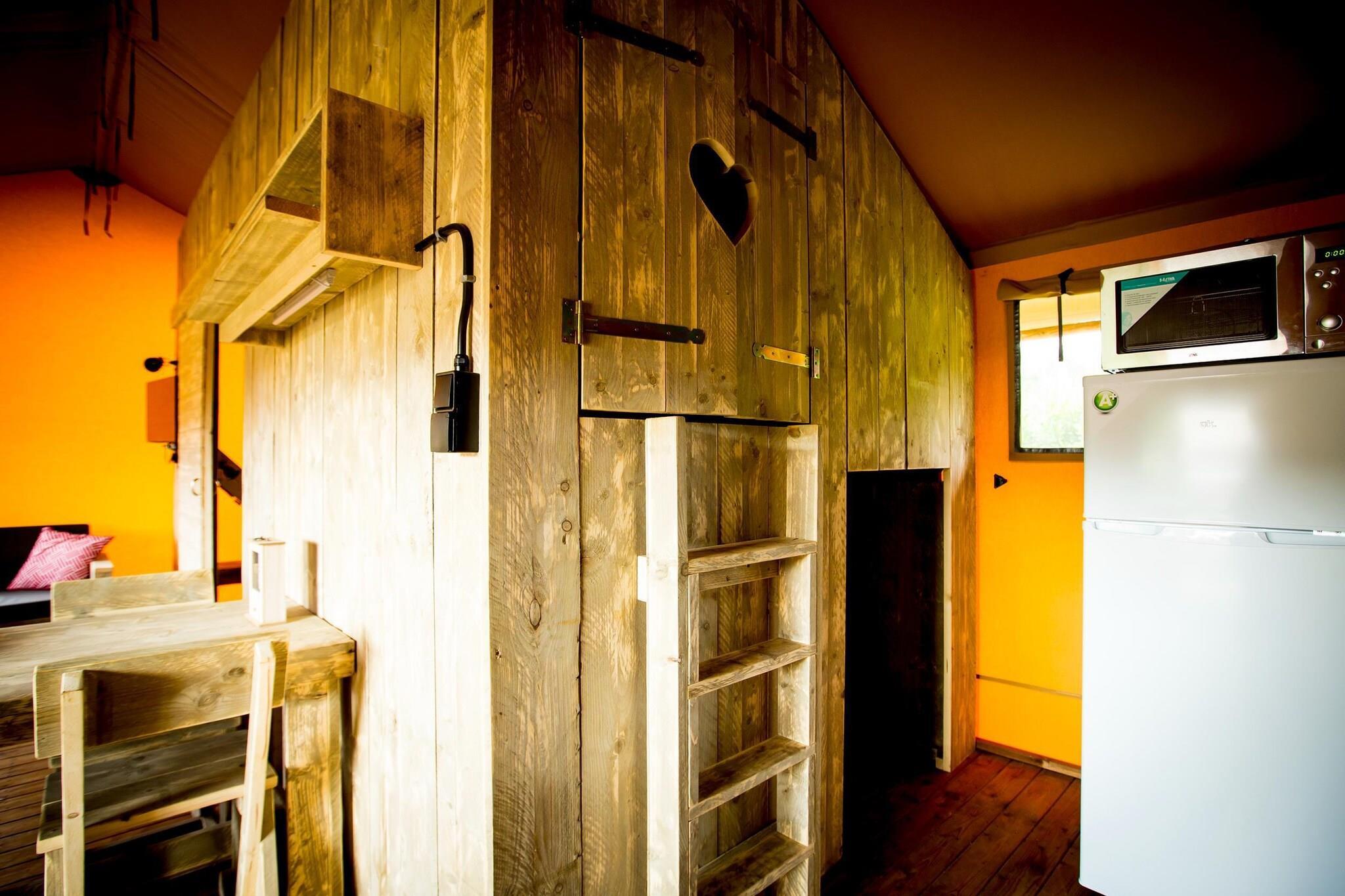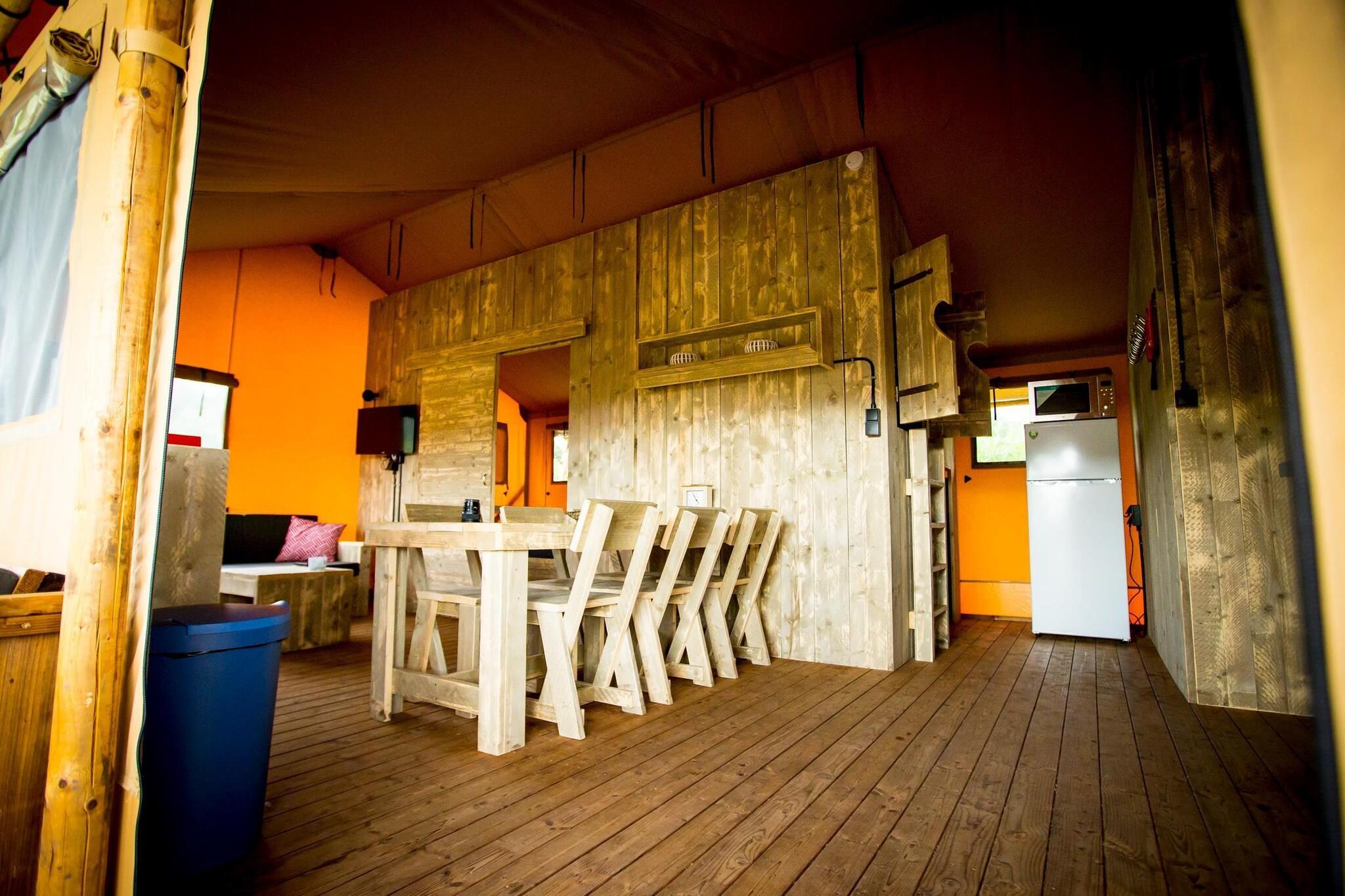 Unik Glamping Escape med alla bekvämligheter Välkommen till en unik vistelse på Holiday Park Duinhoeve, där charmen med camping möter modern lyx! Dessa rymliga tältstugor erbjuder en mysig interiör med eleganta träfinisher eller placering av sanddyner (beroende på typ), vilket skapar antingen en varm rustik atmosfär eller ett lugnt strand. Utrustad med en gasspis, kabel-TV och ett vardagsrum med öppen planlösning och matplats, är det glampande gjort rätt. Vakna upp i en riktig säng, njut av en varm dusch i ditt privata badrum och laga dina favoritmåltider i det kompletta köket. En perfekt plats i naturen Dessa stugor ligger inbäddat i hjärtat av Udenhout och erbjuder snabb tillgång till naturreservat och vandringsleder. Med tre sovrum - ett med dubbelsäng, ett med dubbelsäng och ett annat med en enkelsäng och våningssäng - är dessa tältstugor bekväma värdfamiljer eller små grupper. Gå ut på din privata veranda med trädgårdsmöbler och andas in skogsluften. Beläget nära flera lekplatser, har barnen utrymme att leka medan vuxna varva ner bekvämt. Observera: husdjur är inte tillåtna, vilket säkerställer en ren och allergivänlig miljö. Utforska och ät i norra Brabant Du är bara några minuter från nationalparken Loonse en Drunense Duinen – ett måste för vandrare och cyklister. För att äta middag, bege dig till charmiga Udenhout eller närliggande Tilburg, där du hittar mysiga brasserier, lokala kaféer och internationella rätter.