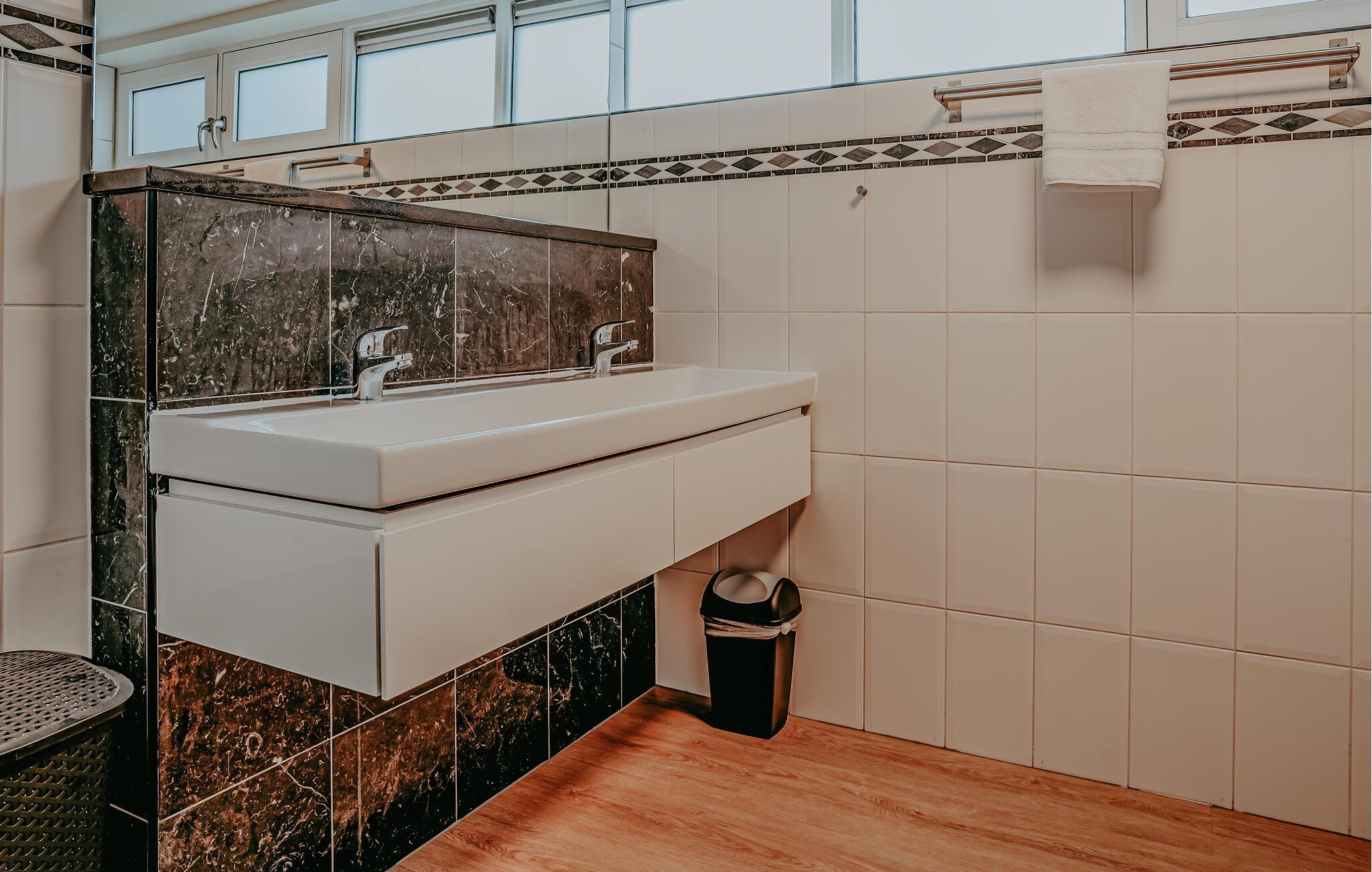 Badrum (nr. 1) - WC: Varmt och kallt vatten. Dusch