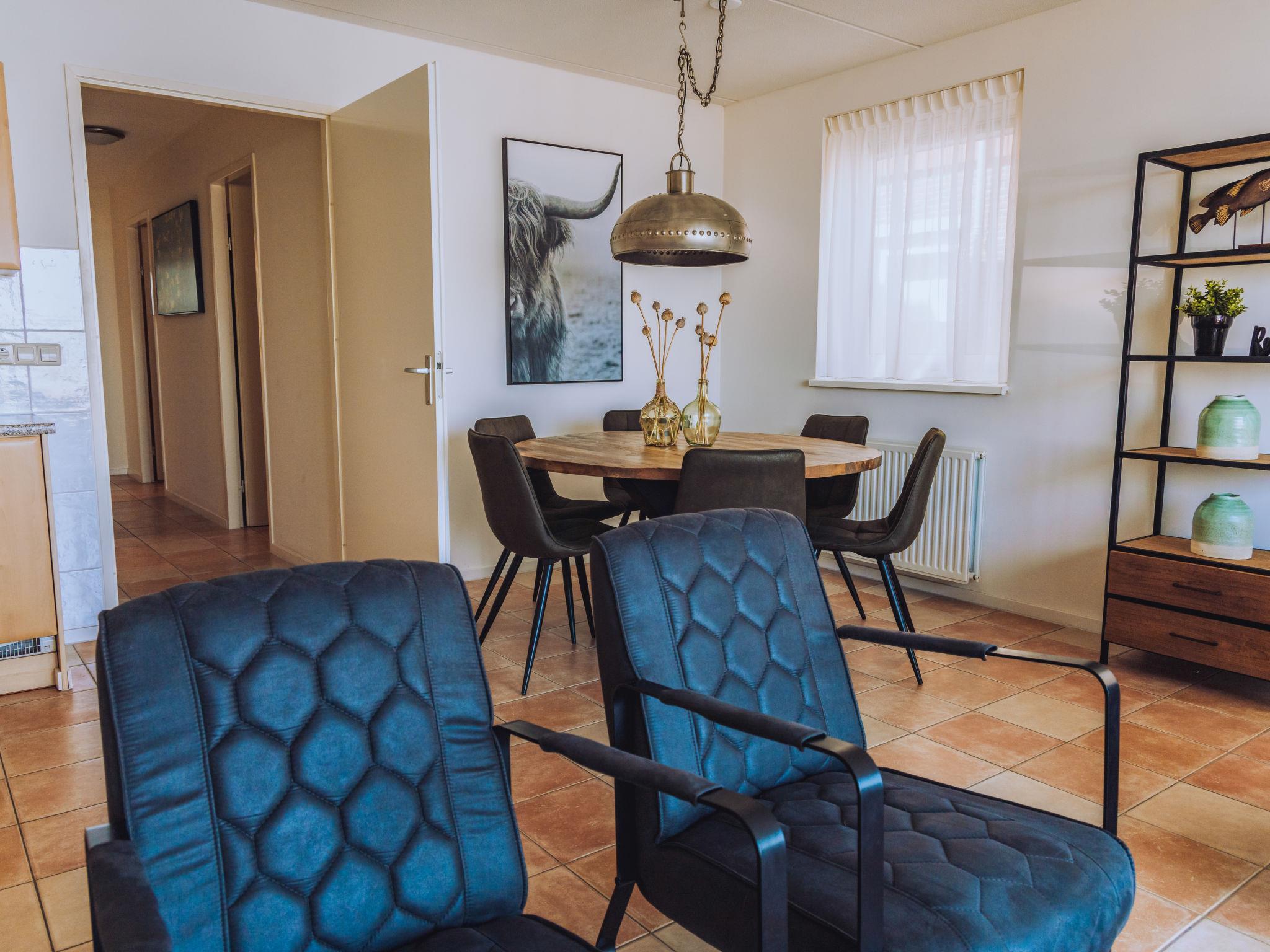 "Westergeest", 4-room apartment 90 m2, on the ground floor. Practical furnishings: entrance hall with separate WC. Living/dining room with dining nook, TV and DVD. 1 room with 2 beds. 2 rooms, each room with 1 x 2 bunk beds. Luggage room. Open kitchen (4 hot plates, dishwasher, electric coffee machine, combination microwave). Shower. Heating. Terrace. Terrace furniture. Facilities: washing machine. Internet (WiFi, free). Parking at the house. Please note: non-smoking house. Smoke alarm.