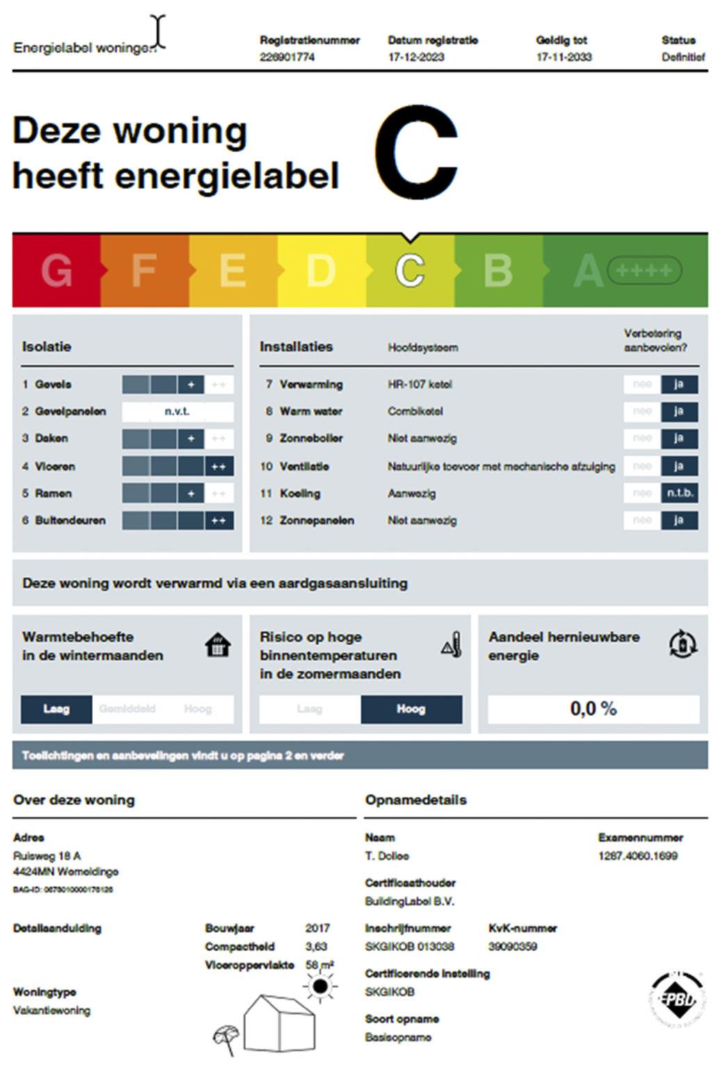 "Ruisweg 18A", 3-room house 70 m2. Comfortable furnishings: entrance hall with separate WC. Living/dining room with dining table, flat screen and air conditioning. Exit to the terrace. 1 double bedroom with 2 beds (80 cm, length 200 cm), air conditioning. 1 double bedroom with 2 beds (80 cm, length 200 cm). Open kitchen (oven, dishwasher, 4 induction hot plates, kettle, microwave, electric coffee machine). Shower. Heating. Terrace. Terrace furniture, deck chairs (2), box-room. View of the lake. Facilities: Internet (WiFi, free). Parking (1 car) at the house. Please note: non-smoking house. Smoke alarm. The house is located by the water. The gas fireplace can be used during the colder months. Bookings accepted for holiday purposes only. A deposit of 100 EUR per person can be charged on site.