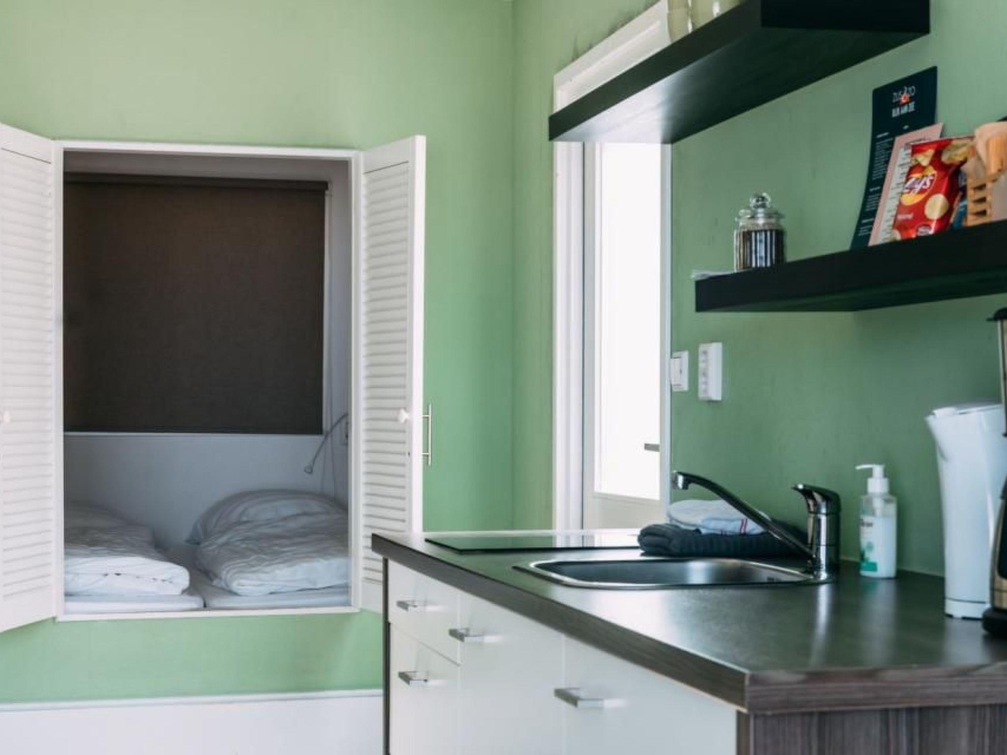 The Beachhouse is fully furnished and equipped with a masterbed, a room with bunk beds, a compact kitchen and a bathroom. There is also a sofa bed in the living room. The holiday home is fully equipped and of course there is no lack of Wifi (WLAN).