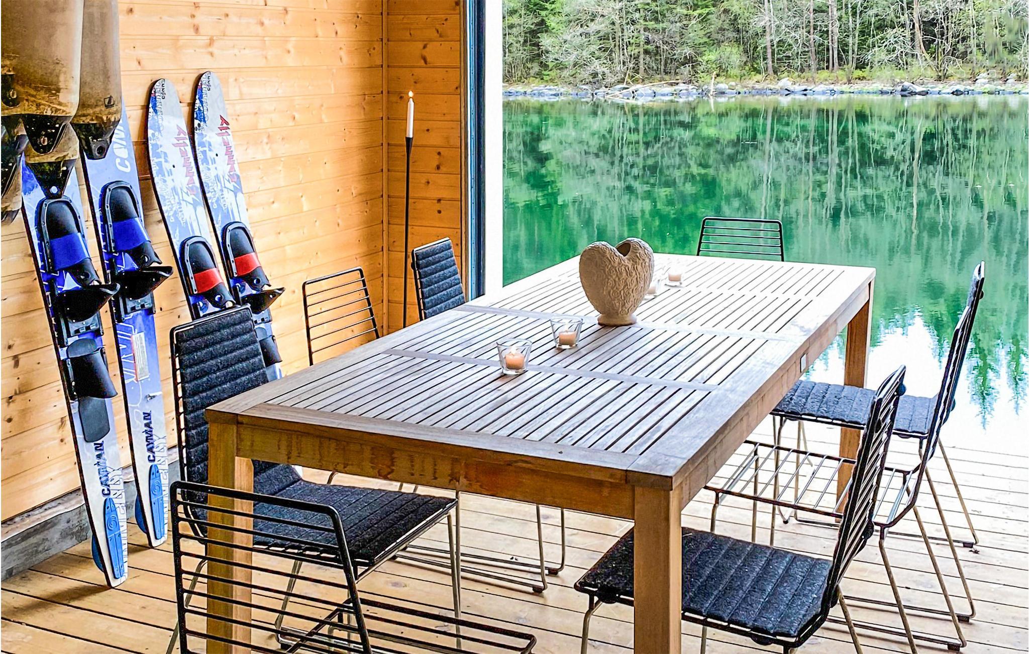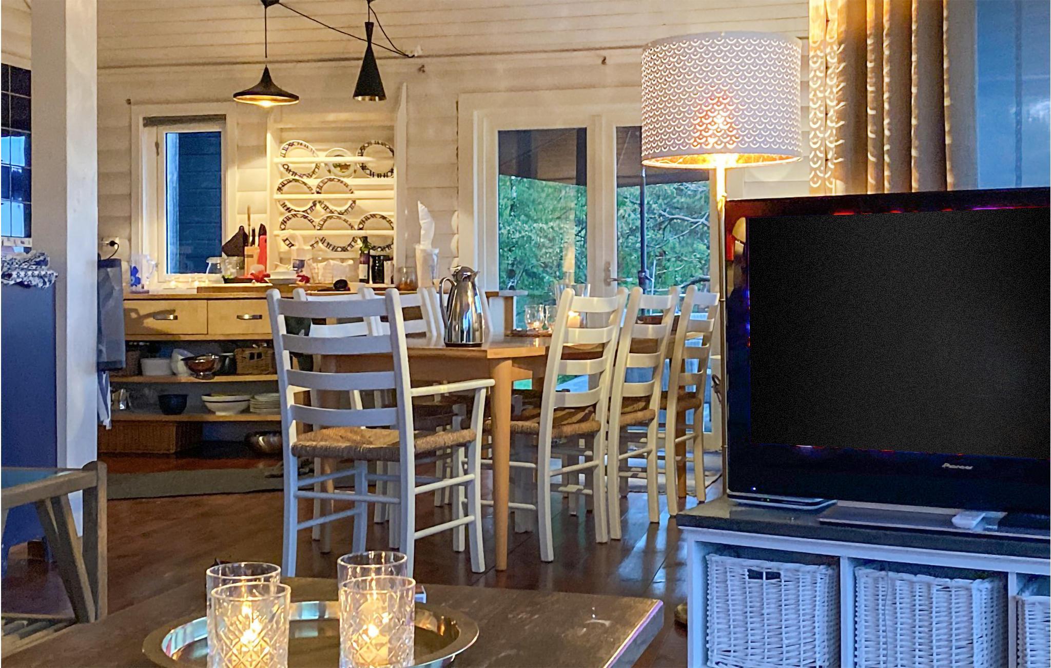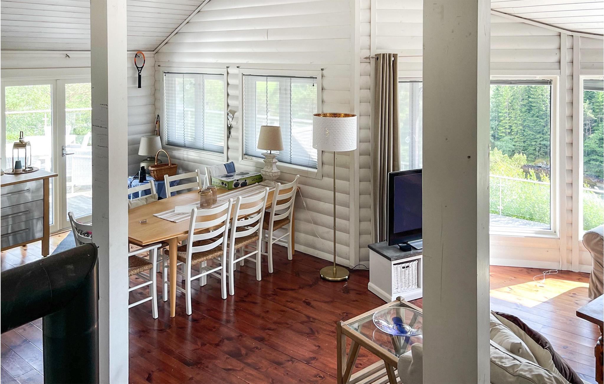 Denna stuga, med ett fantastiskt läge precis vid Ålfjorden, är ett paradis för fiskeentusiaster. Högt i tak och stora fönster, som släpper in mer dagsljus och tar naturen rakt in i vardagsrummet, skapar en luftig känsla av rymd, lugn och värme. Ha roliga spelkvällar vid soffbordet och planera dina resor. Förbered frukosten i det blå kaklade köket och njut av hembakade kakor på den stora terrassen med utsikt över det smaragdgröna vattnet och de höga granarna. Känn solen och andas in den friska luften. Hoppa i den glittrande fjorden eller kasta ut fiskelinan. Vandra och upptäck det rika växt- och djurlivet. Blåbär, lingon och hjortron förgyller dina turer.