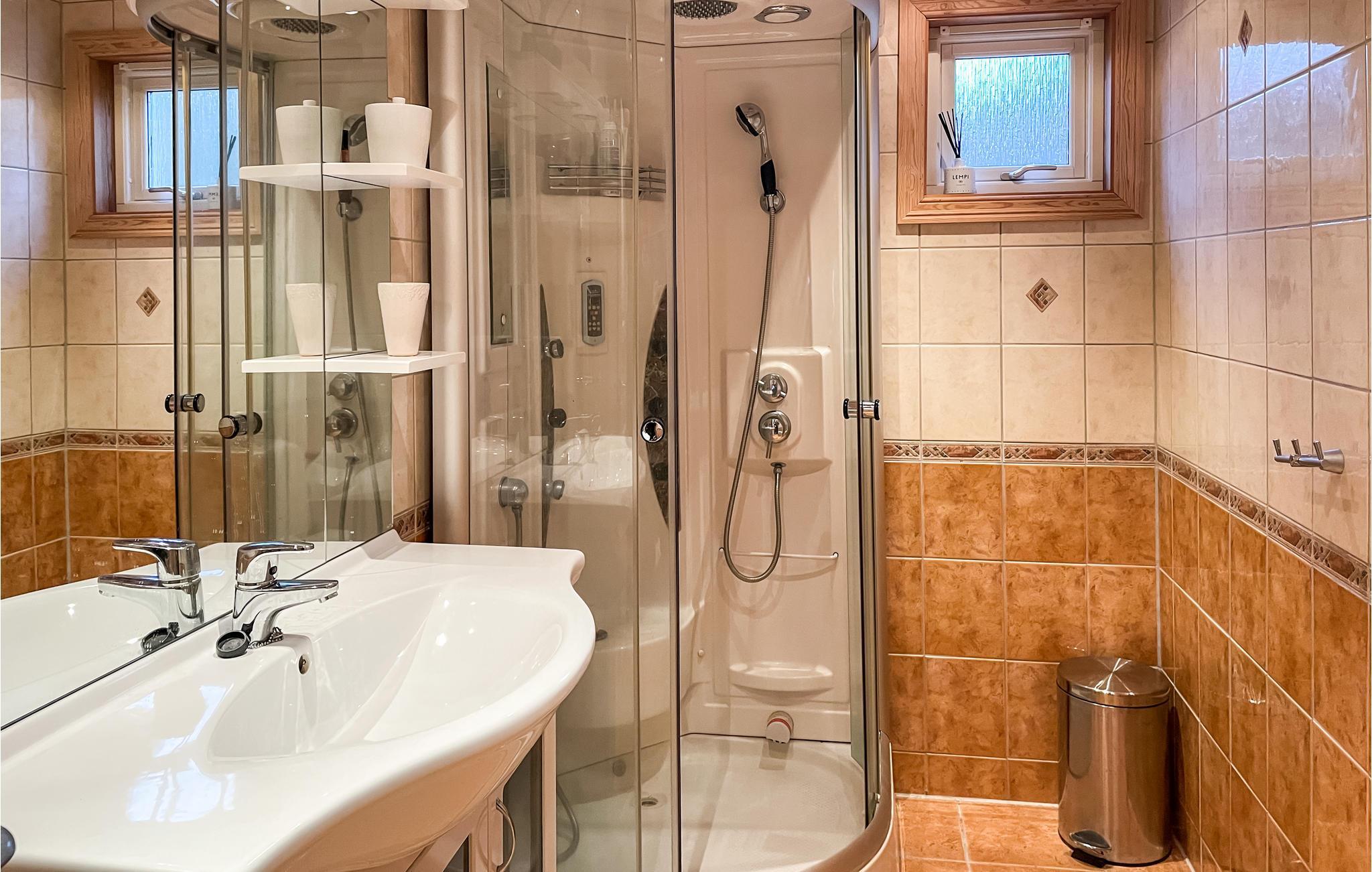 Badrum (nr. 1) - WC: Varmt och kallt vatten. Dusch