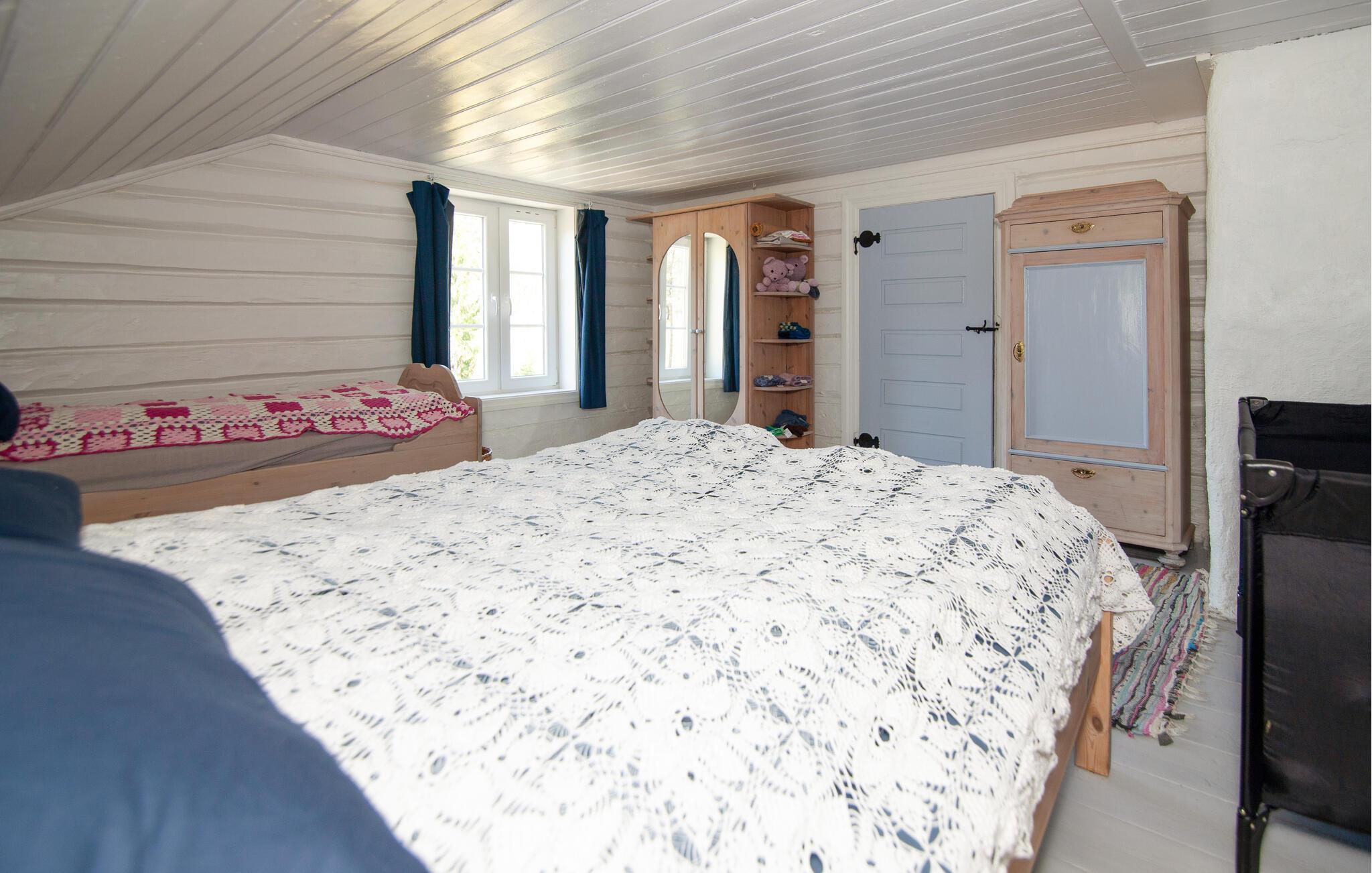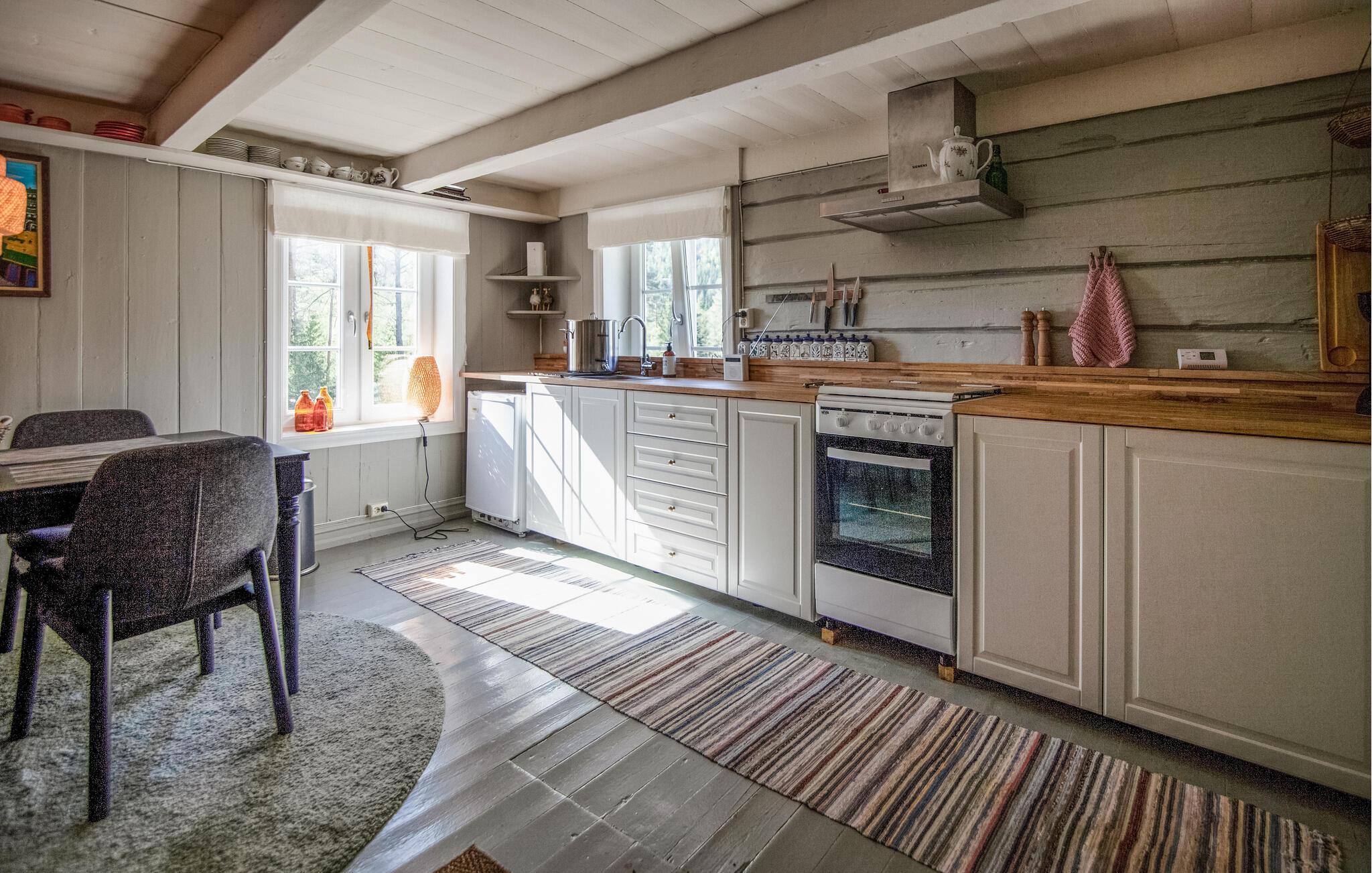 Stig in och låt dig förtrollas av den ljusa, mysiga atmosfären i denna kärleksfullt renoverade träkoja från 1800-talet. Här kan du njuta av en avkopplande paus från vardagen med dina nära och kära medan du utforskar den förtrollande naturen. Tänd den vedeldade kaminen och se fram emot harmoniska måltider och mysiga spelkvällar i det smakfullt inredda vardagsrummet.