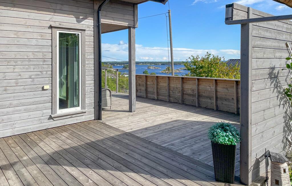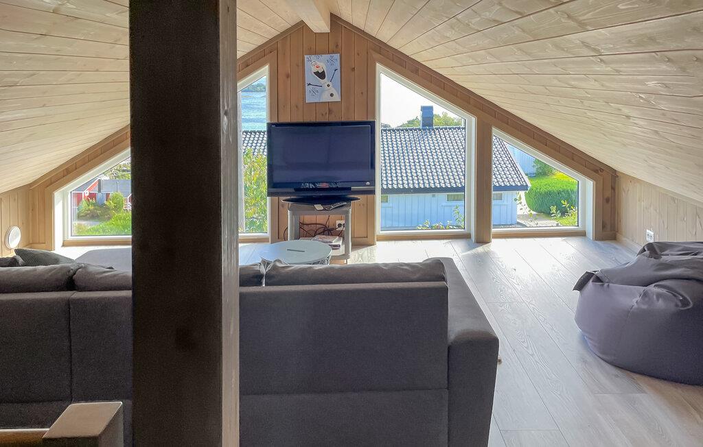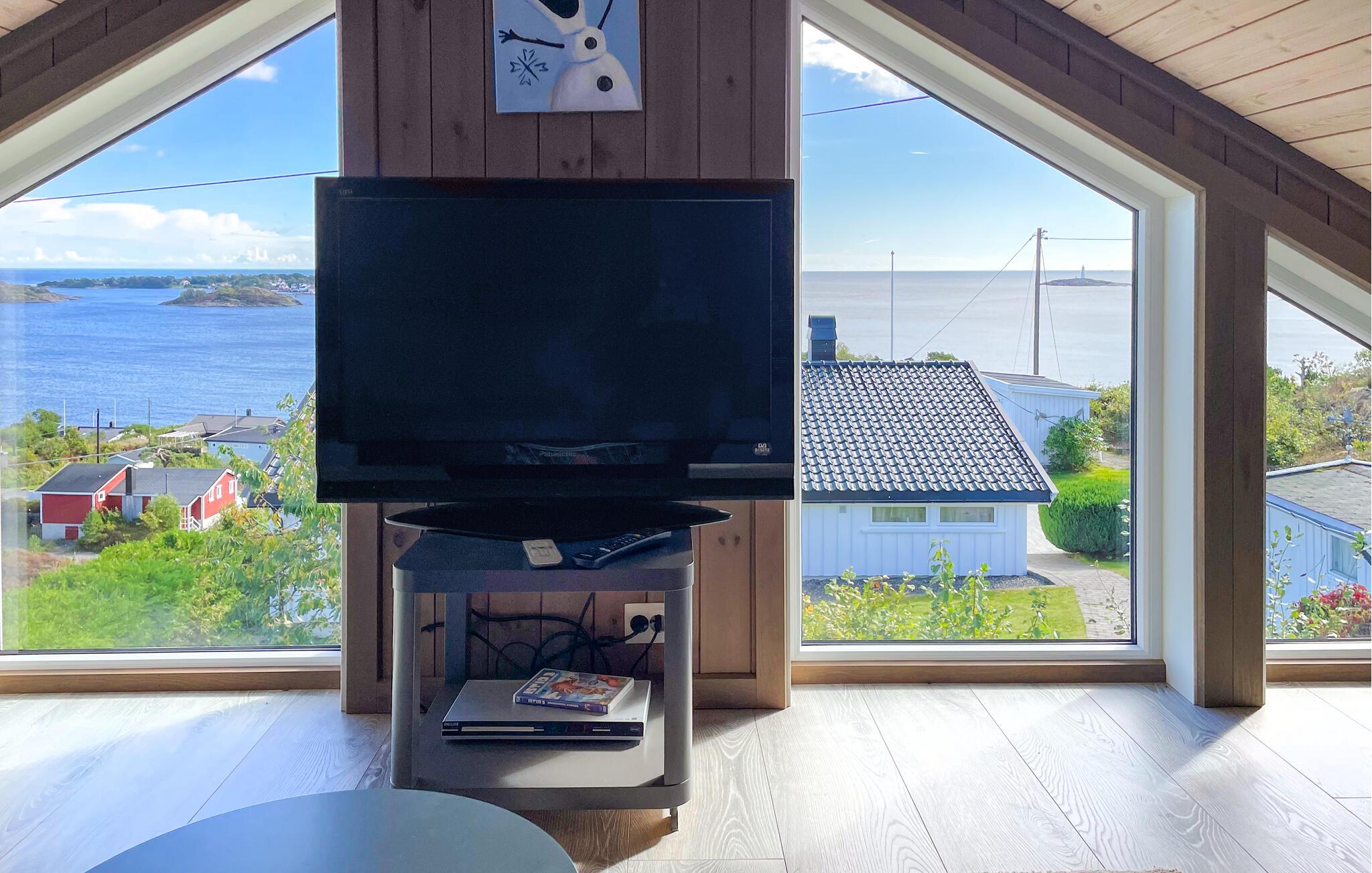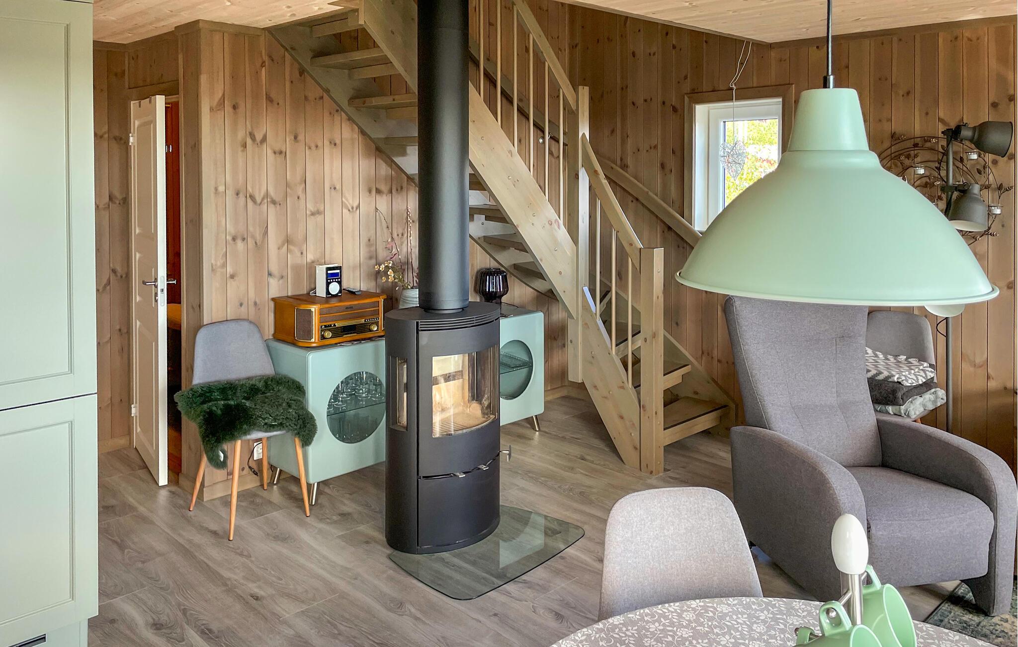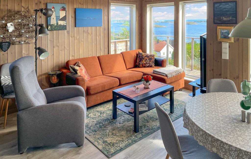 I detta hus kombineras rustik charm och komfort på ett harmoniskt sätt. Varma träväggar, ljusa möbler och stora fönster som öppnar upp utsikten långt ut över havet skapar en atmosfär där du snabbt kan stänga av och ladda batterierna. Koppla av i den bekväma soffan, bläddra igenom semesterläsningen eller bara njut av utsikten över havet.