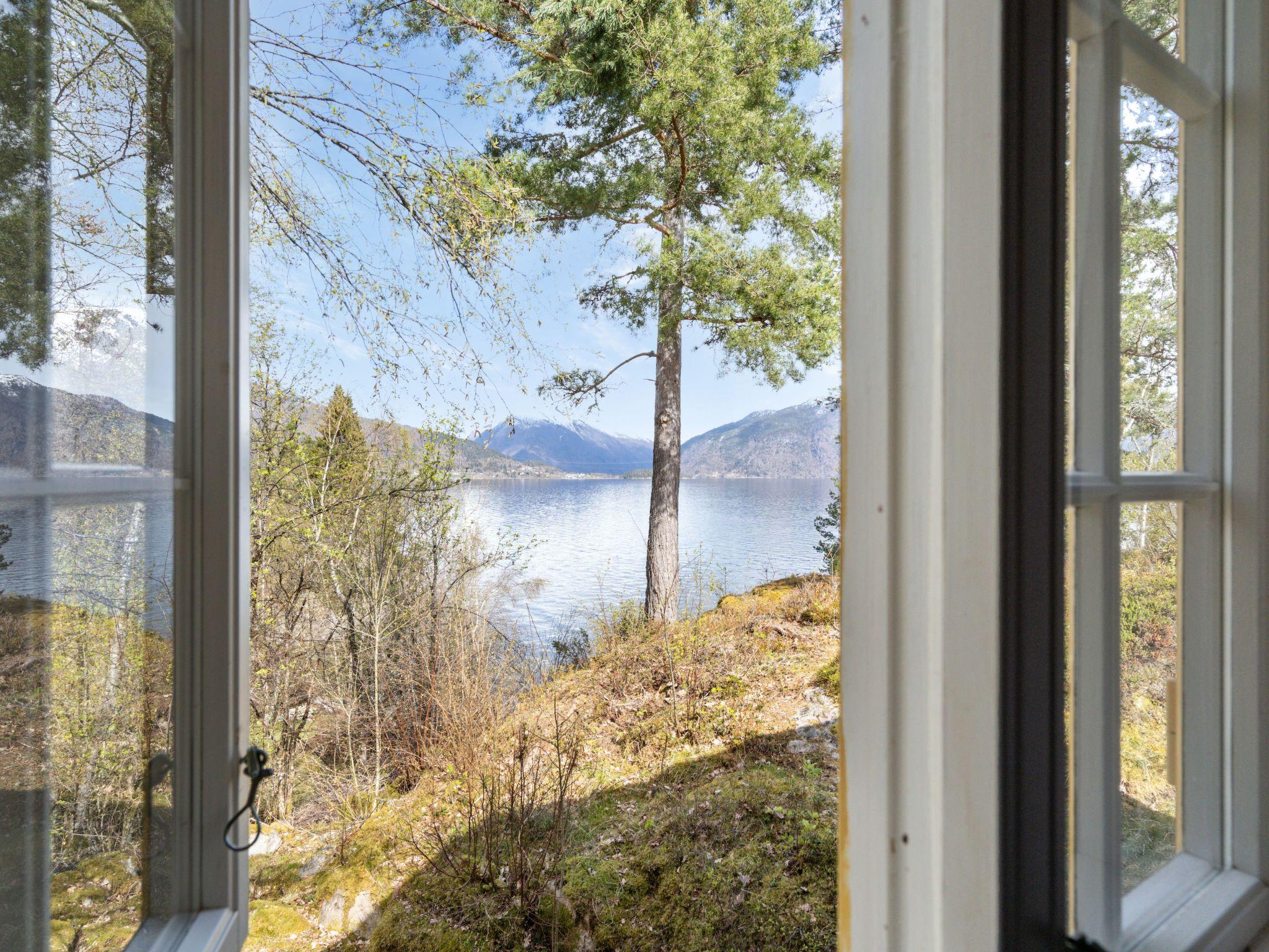 Beautiful cottage "Sandviki", 15 m a.s.l., surrounded by trees. In a hamlet 4 km from the centre of Balestrand, 42 km from the centre of Høyanger, 49 km from the centre of Sogndal, 50 m from the sea, in a cul-de-sac. Private: natural state property with meadow. 100 m long motor access (via unmade road). Parking on the premises. Supermarket 4 km, bus stop "Thue" 450 m, railway station "Bergen" 196 km, ferry "Bergen" 196 km, sandy beach "Balestrand" 4 km. Please note: private mooring.