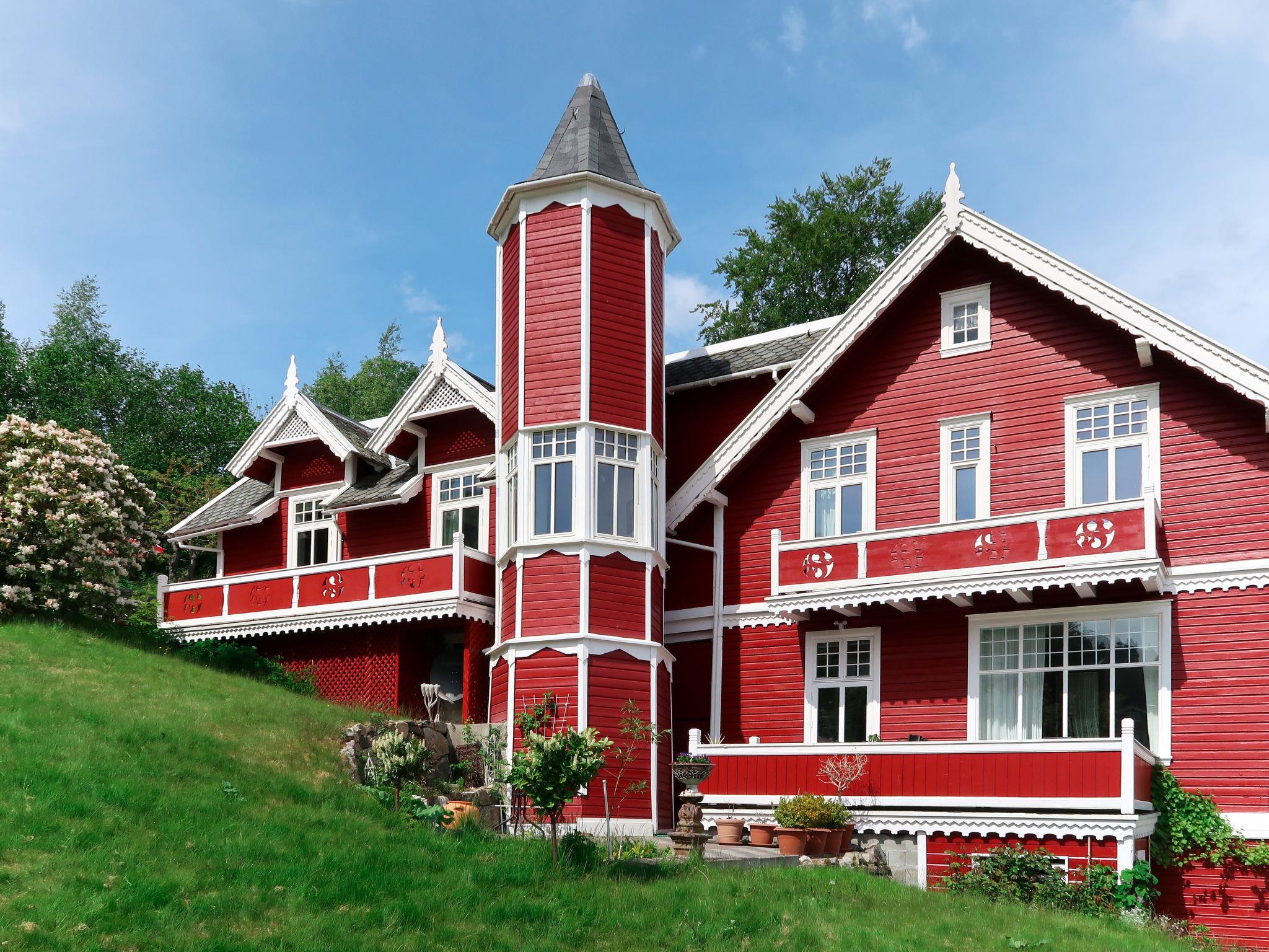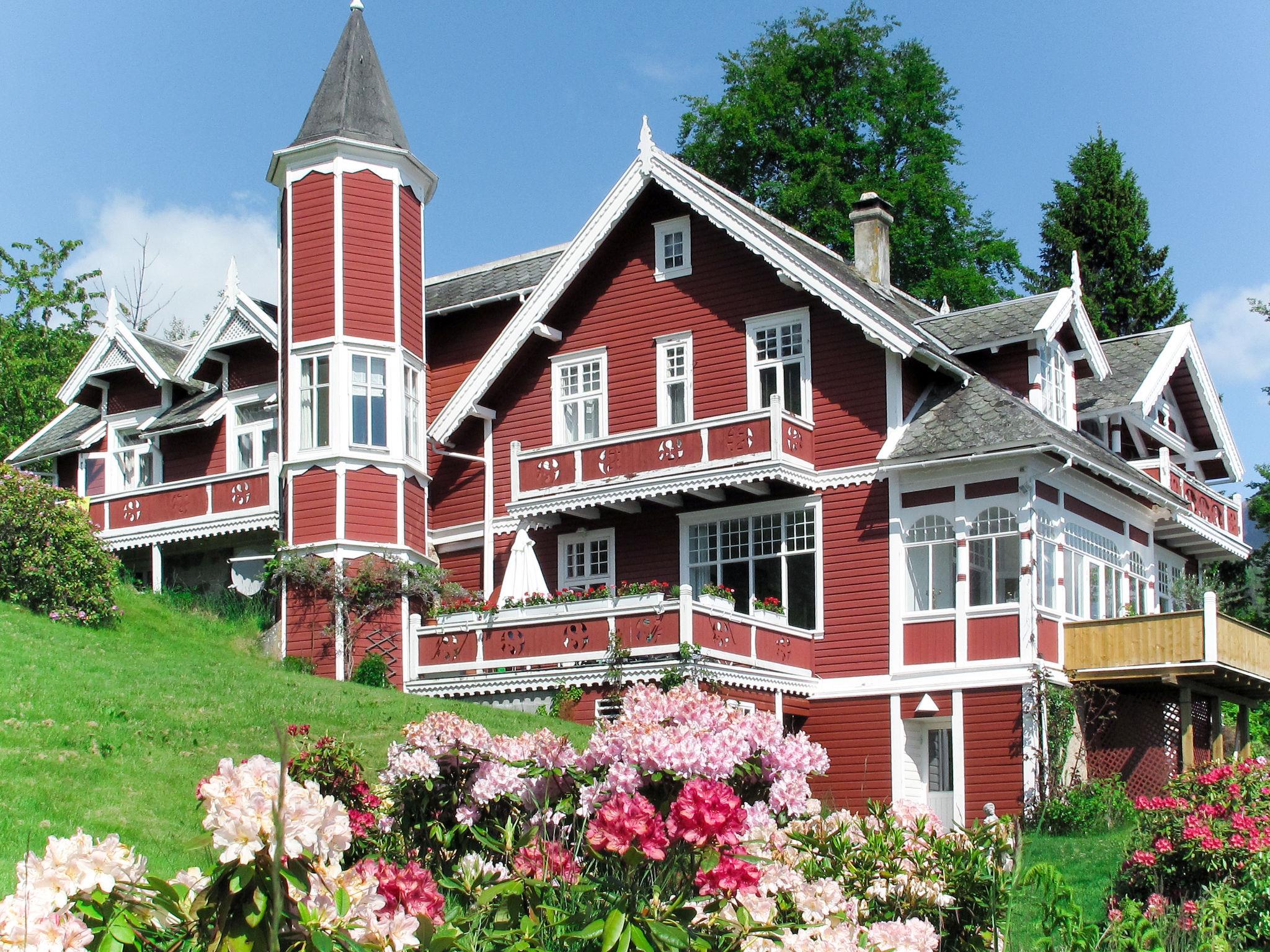 Very beautiful 2-family house "Villa Lorna". 2 km from the centre of Balestrand, 45 km from the centre of Høyanger, 48 km from the centre of Sogndal, residential area (villas), 30 m from the sea, road to cross. For shared use: property 2'000 m2, well-kept garden with lawn. Bathing jetty bathing place, fish-processing table. Available: boat (extra). Motor boat (on order). 30 m stepped path to the house. Parking at the house at 30 m. Supermarket 2 km, bus stop "Skåsheimselva" 350 m, railway station "Flåm" 120 km, ferry "Bergen" 209 km, sandy beach "Balestrand" 2 km, grass beach 40 m, indoor swimming pool 45 km. Fishing possibilities 30 m. Please note: the owner lives in the same residence.