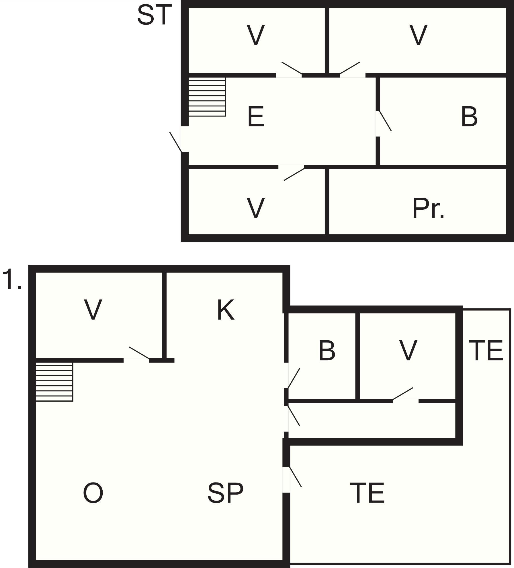 5 Sovrum: (1DS)+(1DS+1V)+(1DS+1V)+(1DS+1V)+(1E)