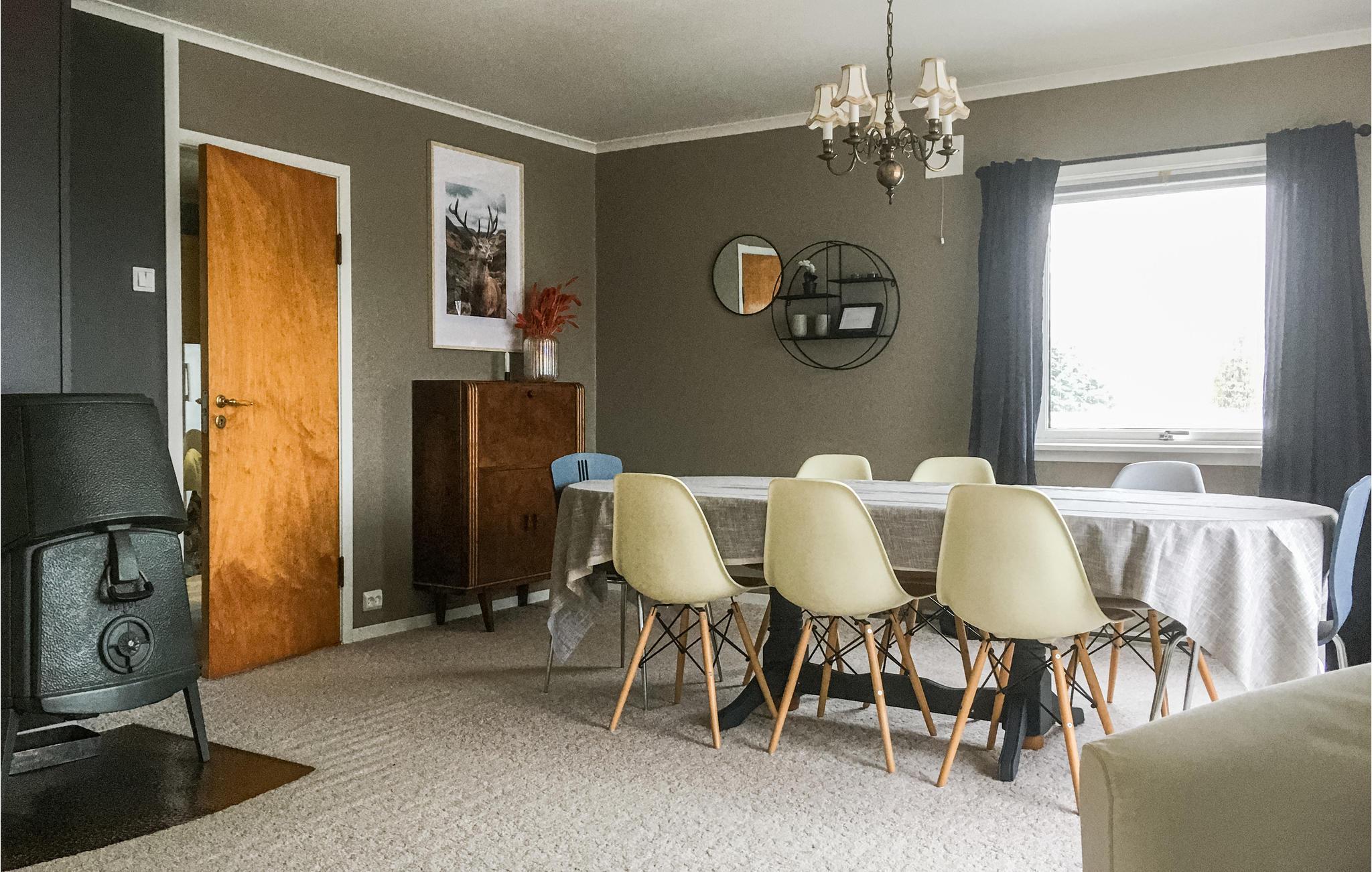 Ett semesterhus i lite äldre stil med heltäckningsmattor och tapeter, som renoverades 2022. Detta boende erbjuder dig gott om utrymme för att koppla av och känna dig som hemma. Det är ett barnvänligt hus med rustika möbler, så det har behållit charmen och stilen från 1960-talet, där den norska kaminen också genererar den nödvändiga värmen. På verandan kan man grilla sent på kvällen och avrunda de ljumma kvällarna tillsammans med familjen. Det finns en gård nära den soliga och öppna fastigheten. Även andra dagsutflykter är inte långt borta, för på den 15 km långa smala sjön Ørsdalsvatnet kan du paddla kanot, simma, boka en båttur (alltid tillgänglig på söndagar på sommaren) M / K Ørsdølen, ta en eftermiddagspromenad till det nya skyddet vid Storafjellet gapahuk i Vikeså centrum eller en vandring till Mjåvassknuten och besöka gruvan i Ørsdølen.