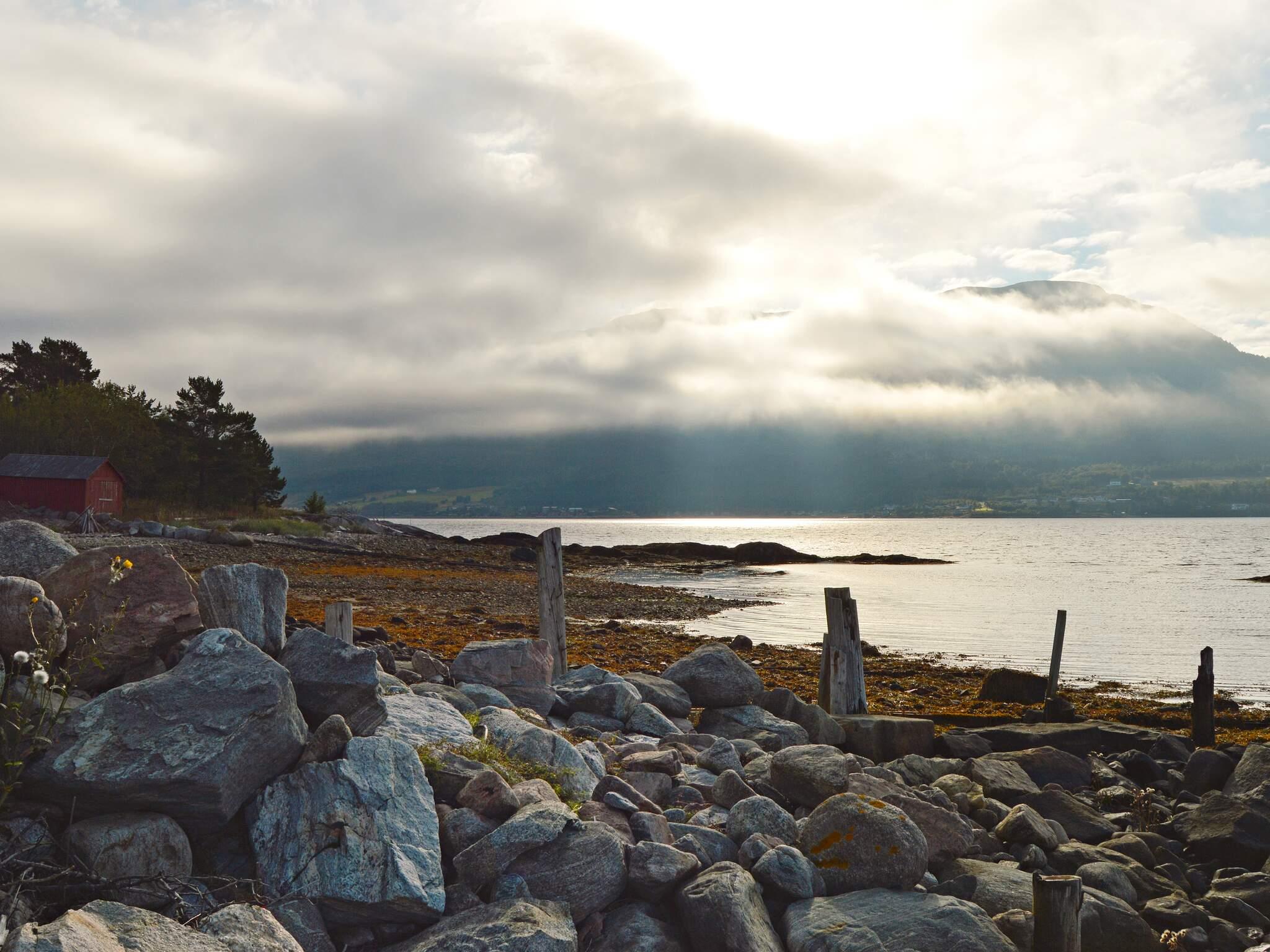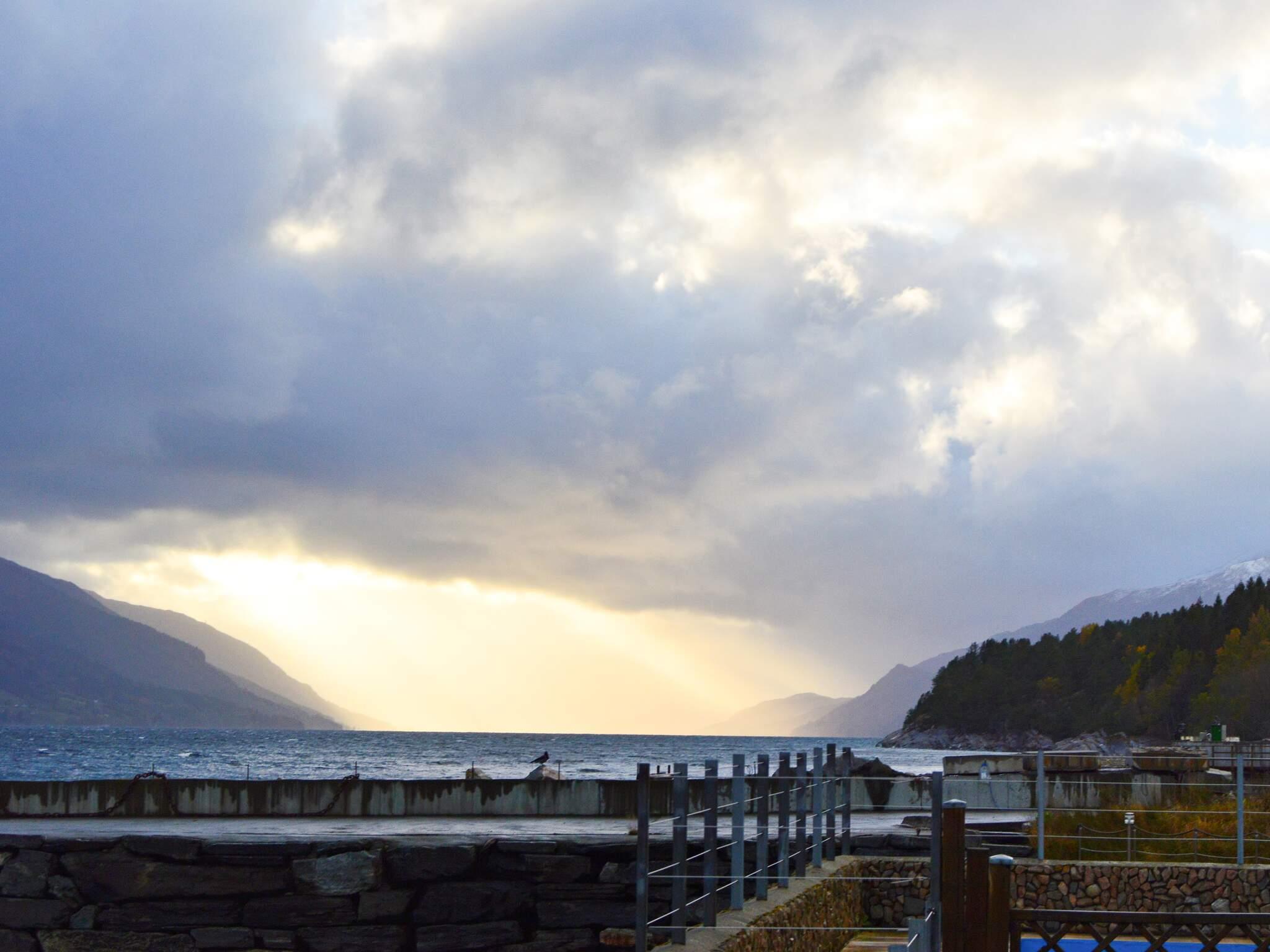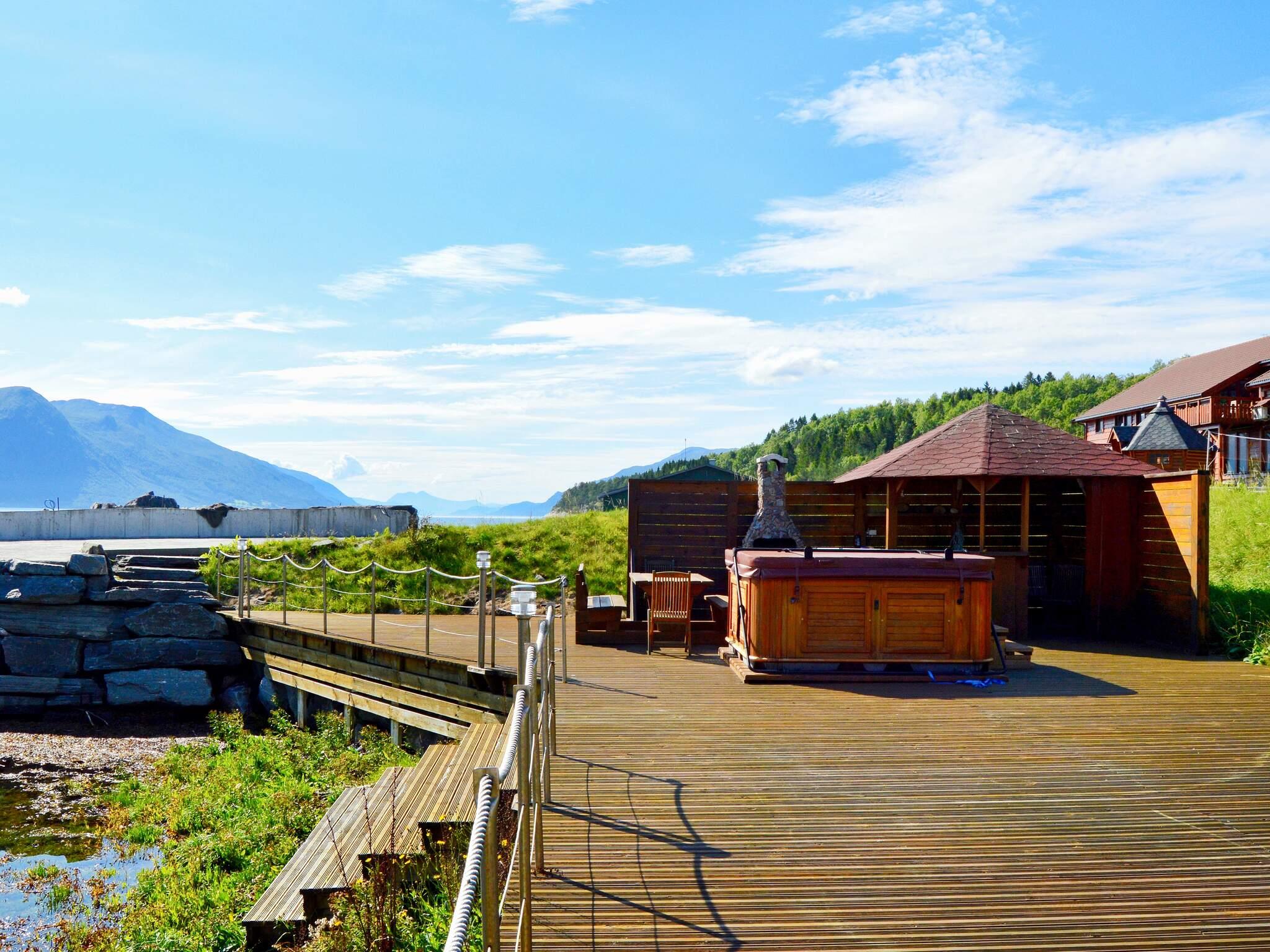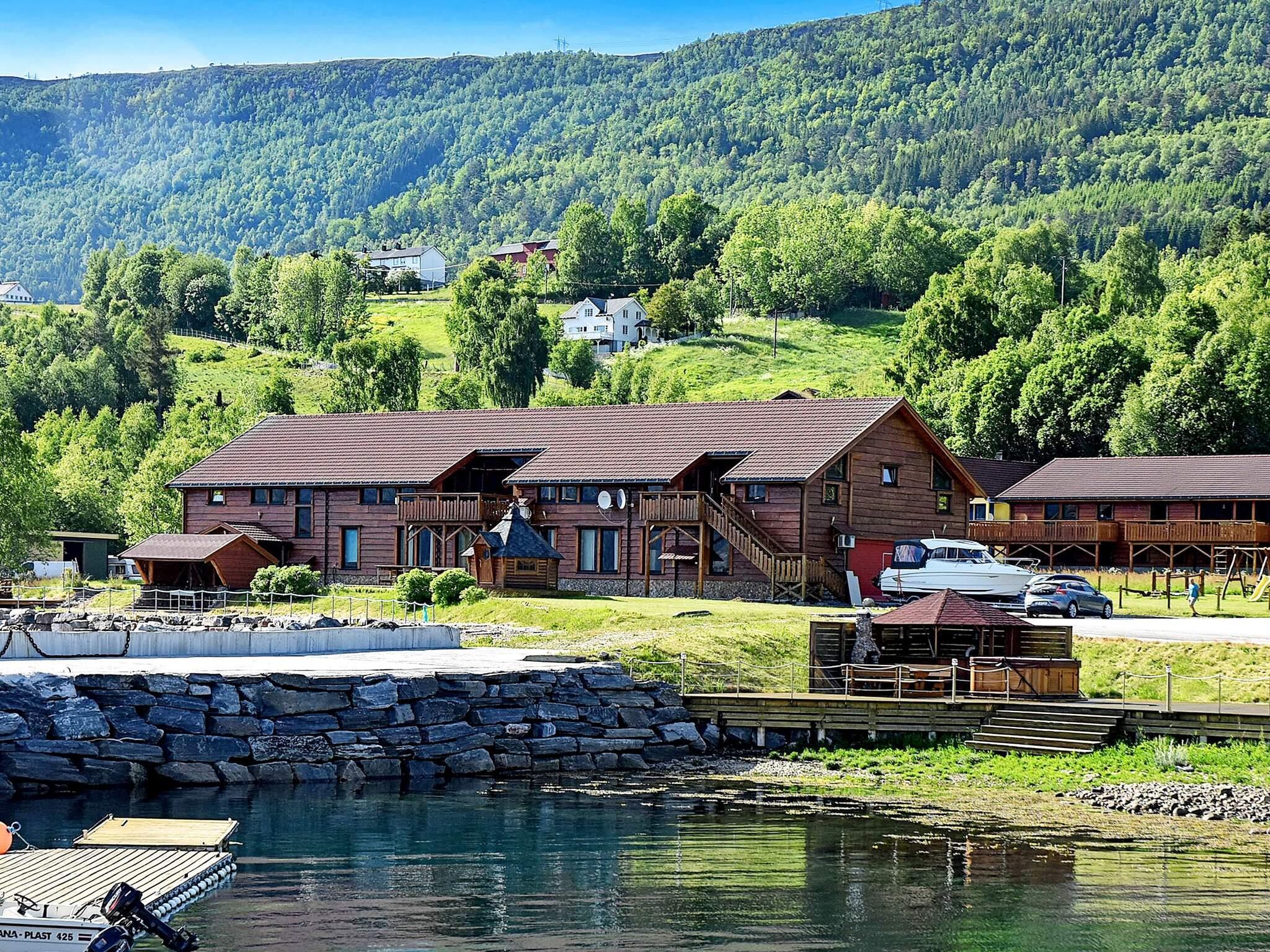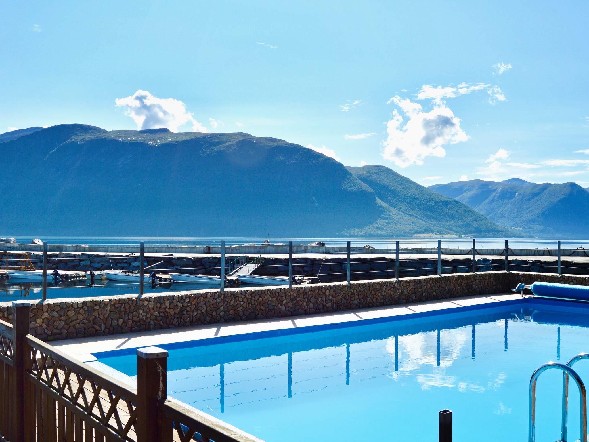 Fint feriested med felles svømmebasseng, direkte ved fjorden og omgitt av et fantastisk fjord- og fjellandskap.