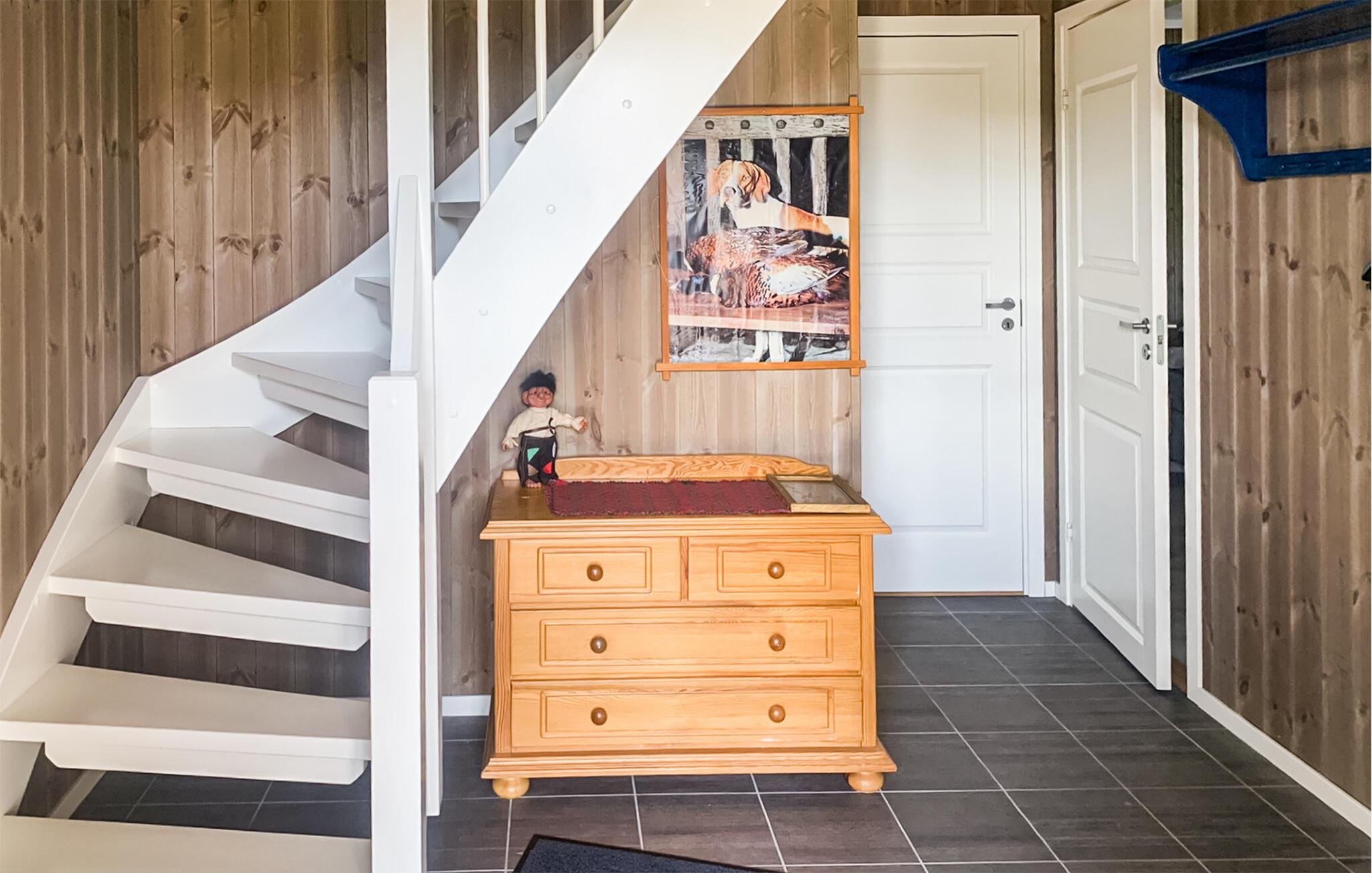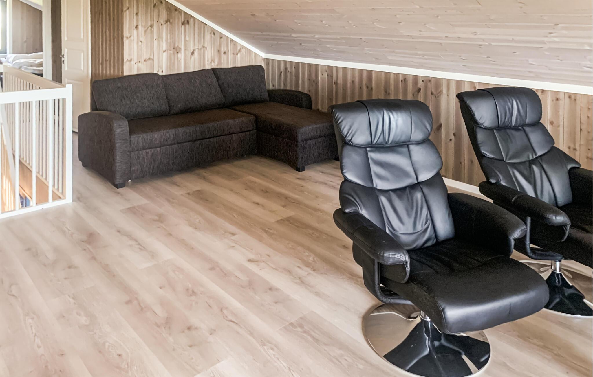 Detta charmiga hus kombinerar komfort och mysighet för att skapa en harmonisk helhet. Träpanel och rustika möbler skapar en avslappnad atmosfär, medan bekväma soffor inbjuder dig att ta en avkopplande paus från vardagen. När det är kallare ute kan du tända den vedeldade kaminen och koppla av i den mysiga värmen. Ni kan laga mat tillsammans i det moderna köket och njuta av era läckra måltider vid det stora matbordet.