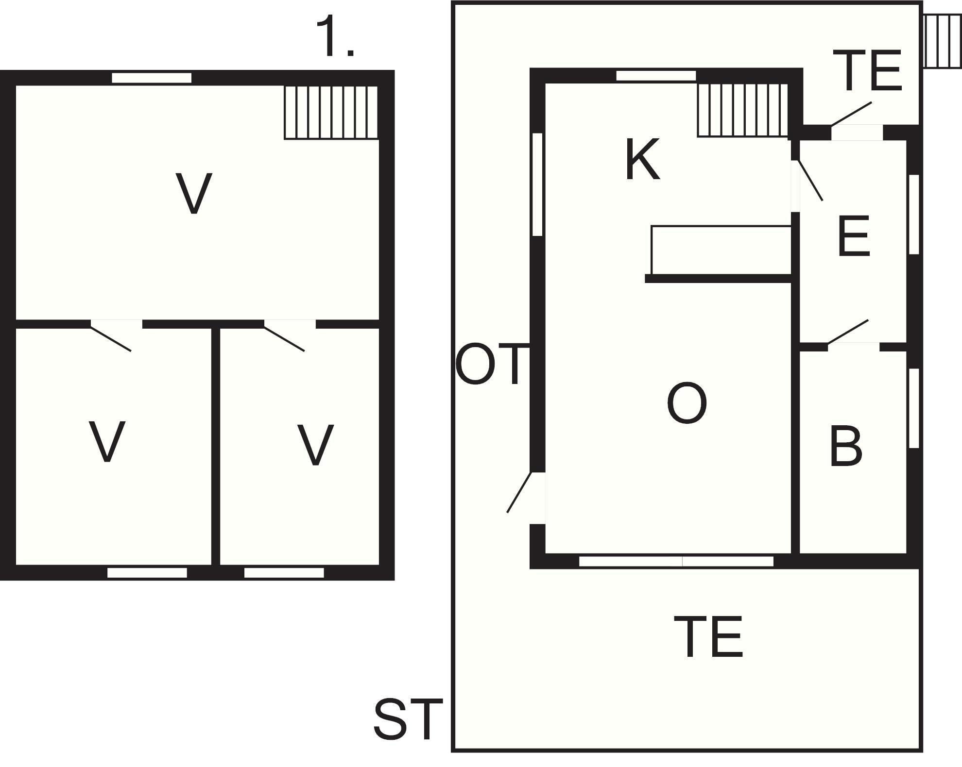 1 Vardagsrum: 30 m2, (2E), öppen spis, stereoanläggning, TV