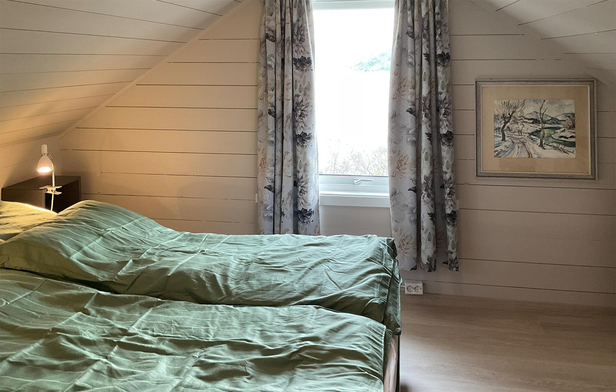 I ett drömlikt läge väntar detta inbjudande semesterhus på dig, det är precis rätt plats för en avkopplande semester där du kan njuta av aktiviteter i naturen. De ljusa rummen med träpanel inbjuder till avkoppling. Njut av den vackra utsikten över naturen när ni äter tillsammans. Slå dig ner i soffan och koppla av med en magnifik utsikt över fjorden. På kvällen kan du slå dig ner vid den öppna spisen och lyssna på det mysiga knastret från lågorna.