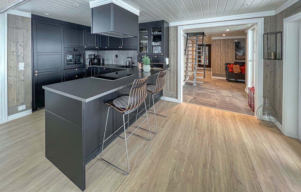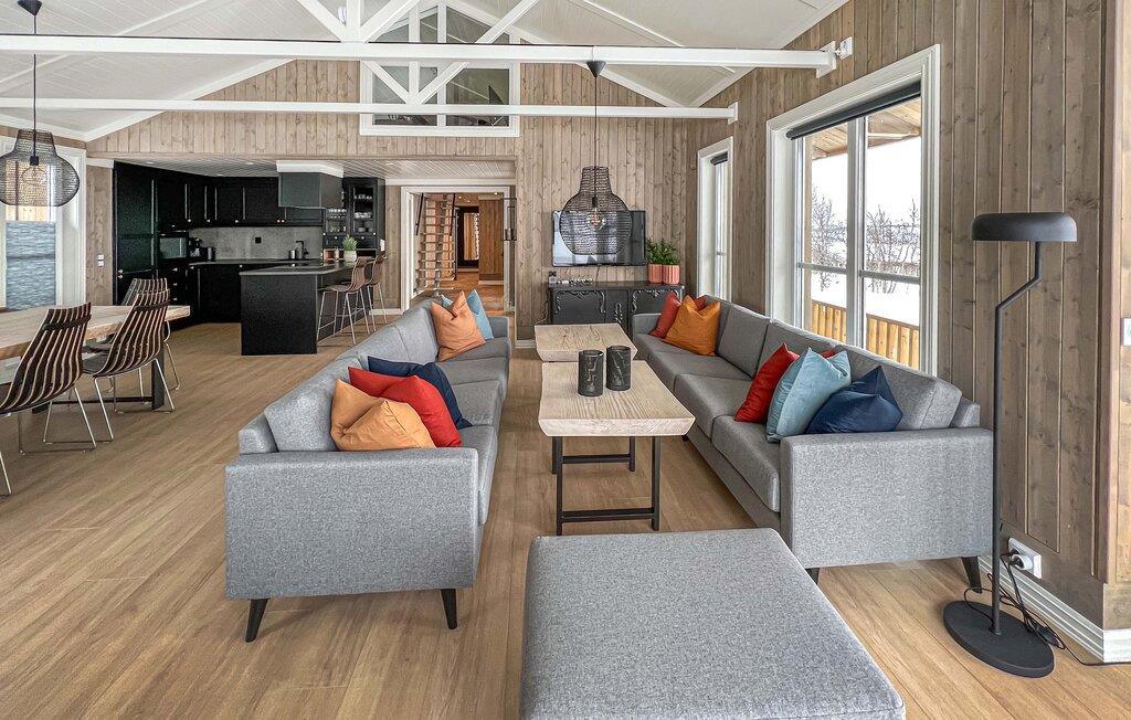 Högt i tak med synlig konstruktion och ljusa trägolv kännetecknar den moderna, nordiska atmosfären i ditt semesterhus. Slå er ner i de bekväma sofforna och njut av utsikten genom de stora fönstren. Vardagsrummet och matsalen är generöst tilltagna och passar perfekt för gemensamma måltider och långa kvällar med socialt umgänge. Använd det moderna köket med matlagningsö, gott om förvaringsutrymme och högkvalitativa apparater för att laga mat tillsammans. Dra dig tillbaka till bastun efter en aktiv dag och koppla av i den mysiga värmen.