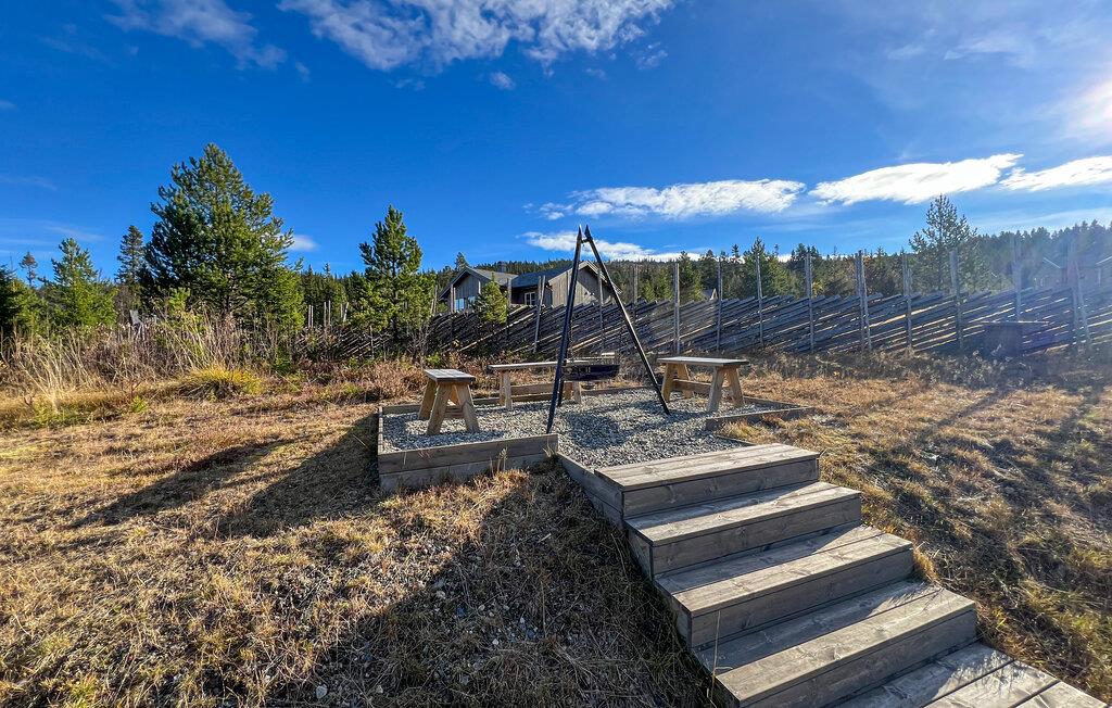 Ta ett steg ut och andas in den klara bergsluften. Tillbringa mysiga kvällar utomhus på terrassen eller vid den öppna spisen med bänkar. Lyssna till vinden i träden eller njut av solnedgången med utsikt över de omgivande kullarna.
