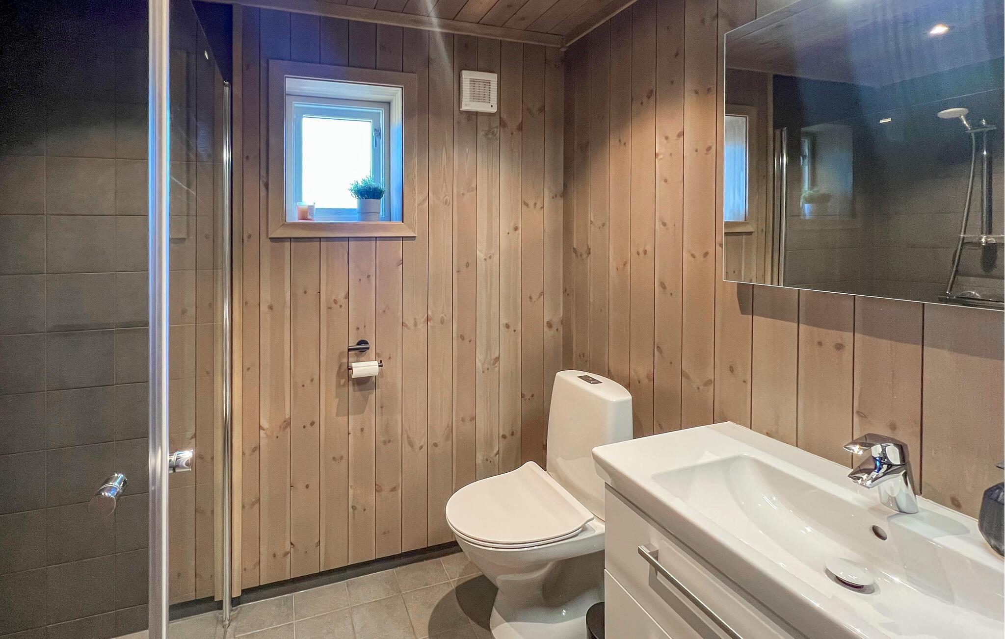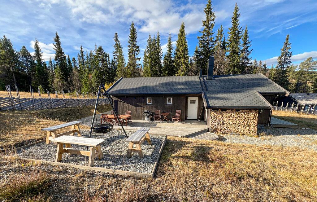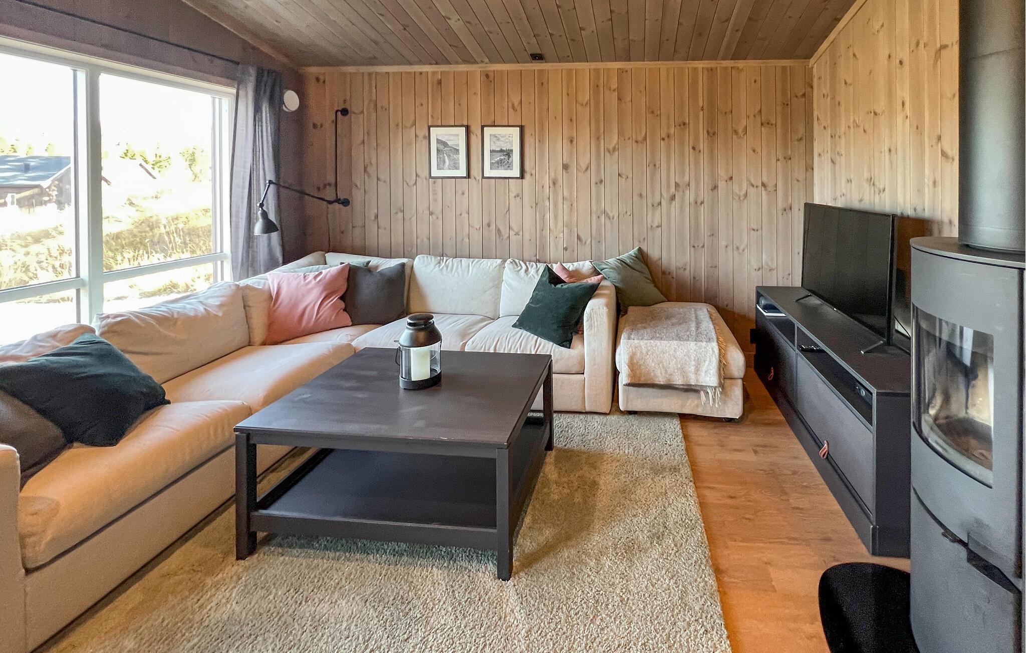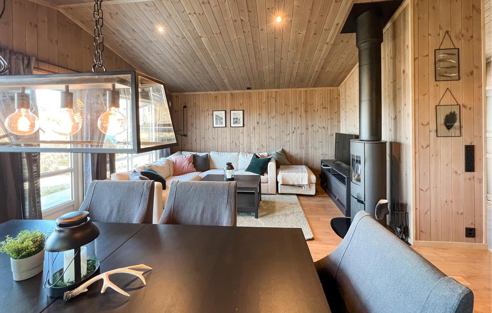 Njut av avkopplande dagar i denna smakfullt inredda stuga, som kombinerar värme, lugn och nordisk design. Huset är omgivet av skogar och berg och erbjuder en idyllisk atmosfär. Koppla av i det ljusa vardagsrummet med stora panoramafönster med utsikt över landskapet. Den mysiga soffgruppen inbjuder till lugna timmar framför braskaminen, medan den öppna planlösningen med matplats och modernt kök ger en känsla av rymd. Förbered dina måltider i det eleganta köket och avnjut dem vid det långa träbordet i det varma ljuset. Träpanel på väggarna och noggrant utvalda detaljer skapar en harmonisk, skandinavisk atmosfär.
