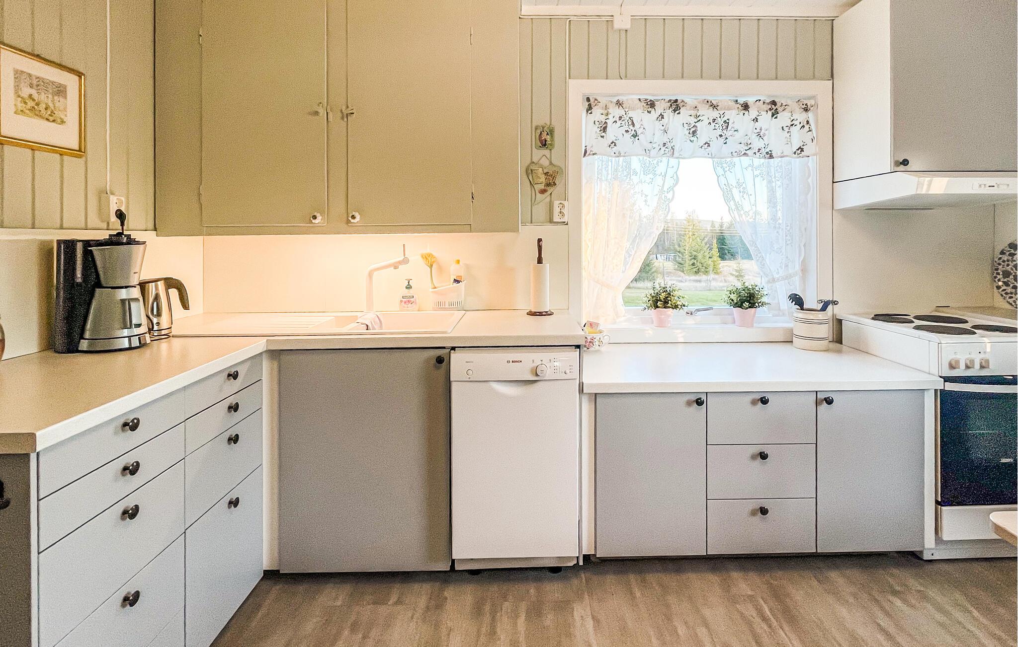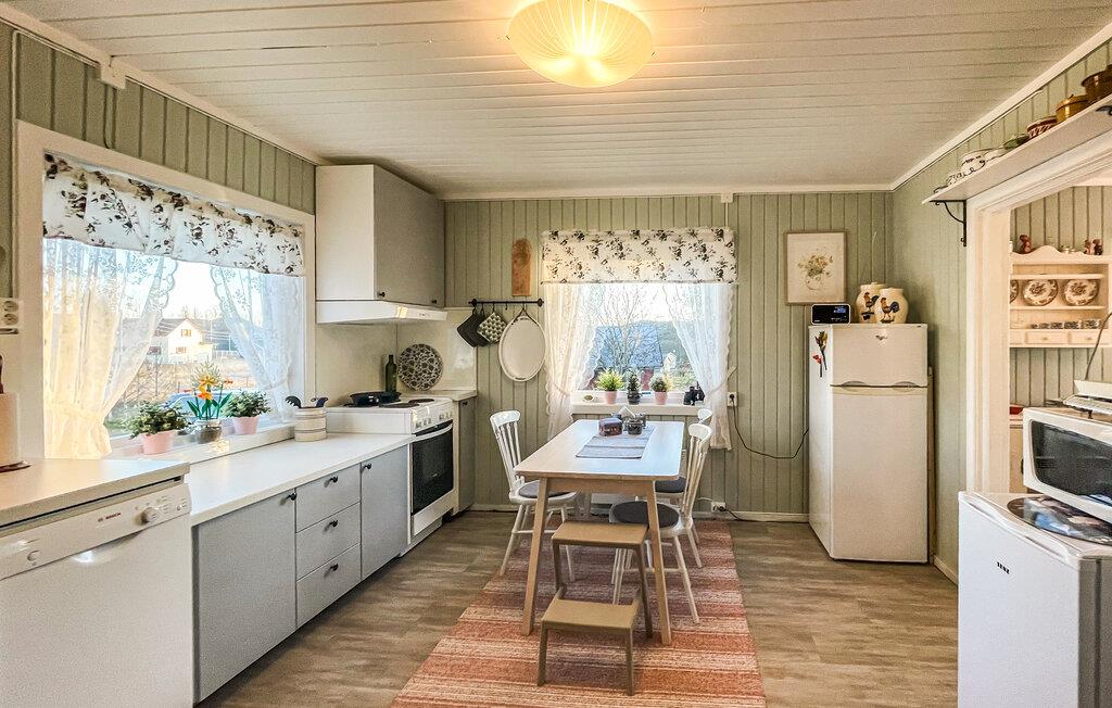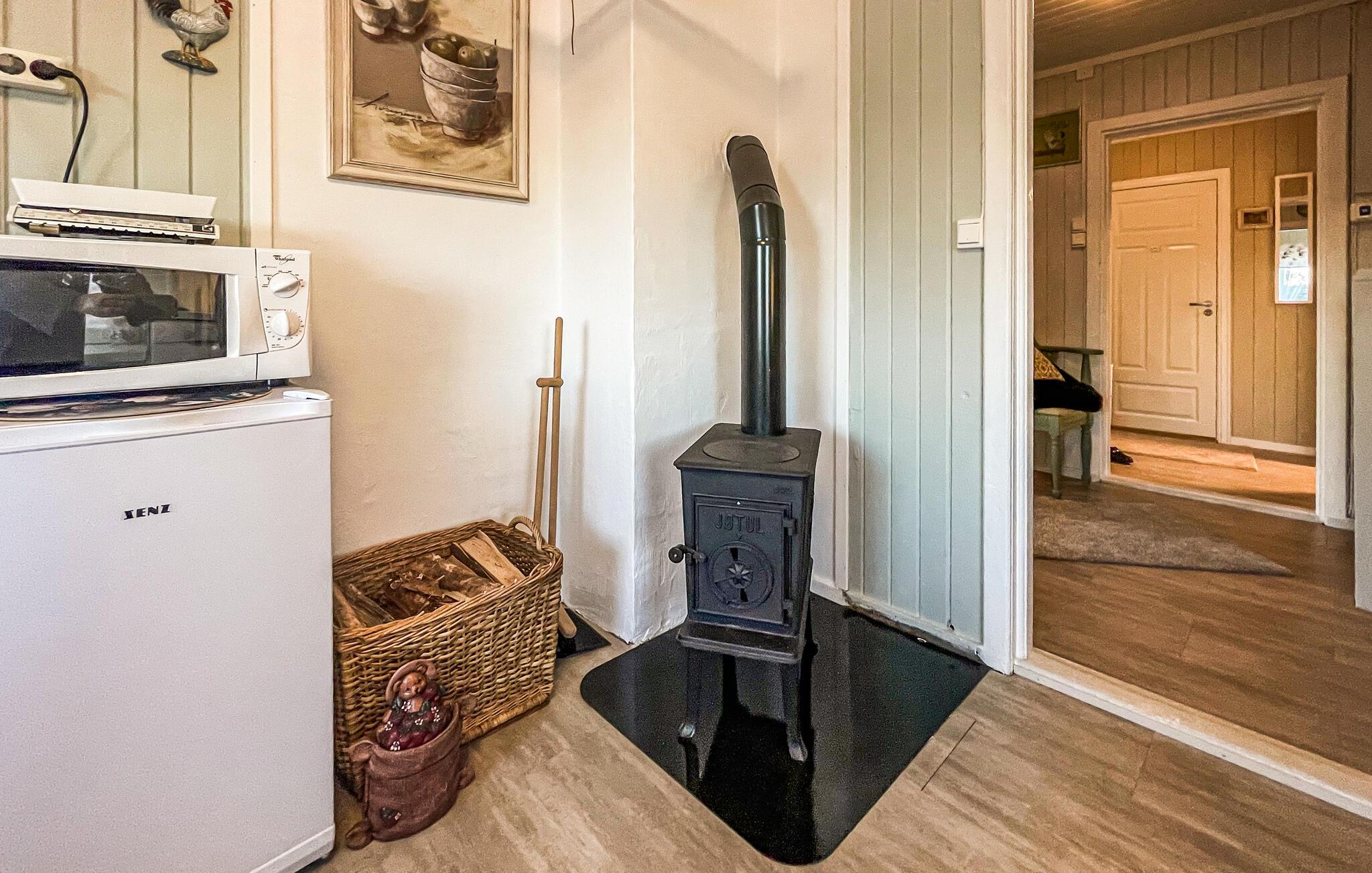 Börja dagen med frukost i det mysiga köket, som är utrustat med allt du behöver. Gör dig hemmastadd i det nostalgiska vardagsrummet som är kärleksfullt möblerat och njut av värmen från den öppna spisen. Använd verandan för avkopplande timmar utomhus och beundra de gröna omgivningarna. Samlas vid grillplatsen för mysiga kvällar.