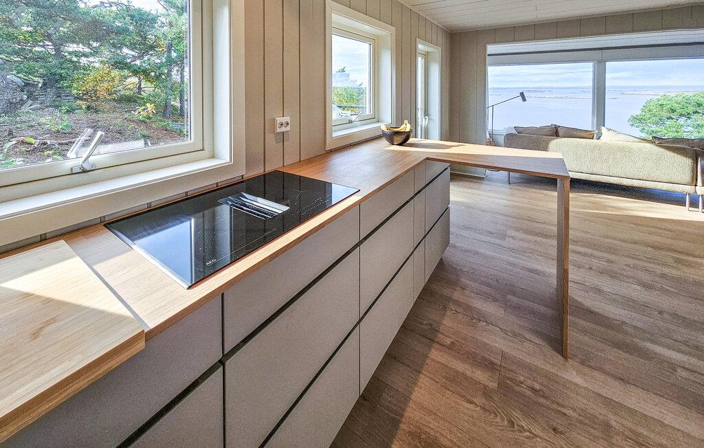 Detta idylliskt belägna hus njuter av sin lugnande utsikt över fjorden och är en underbar plats att komma bort från allt. Här kommer du snabbt att känna dig som hemma, oavsett om du sitter vid fönstret med en varm kopp kaffe, lagar mat tillsammans eller njuter av en mysig måltid medan solen sakta sjunker ner i havet. Kanske fördjupar du dig också i en god bok eller låter tankarna flyga iväg till din favoritmusik.