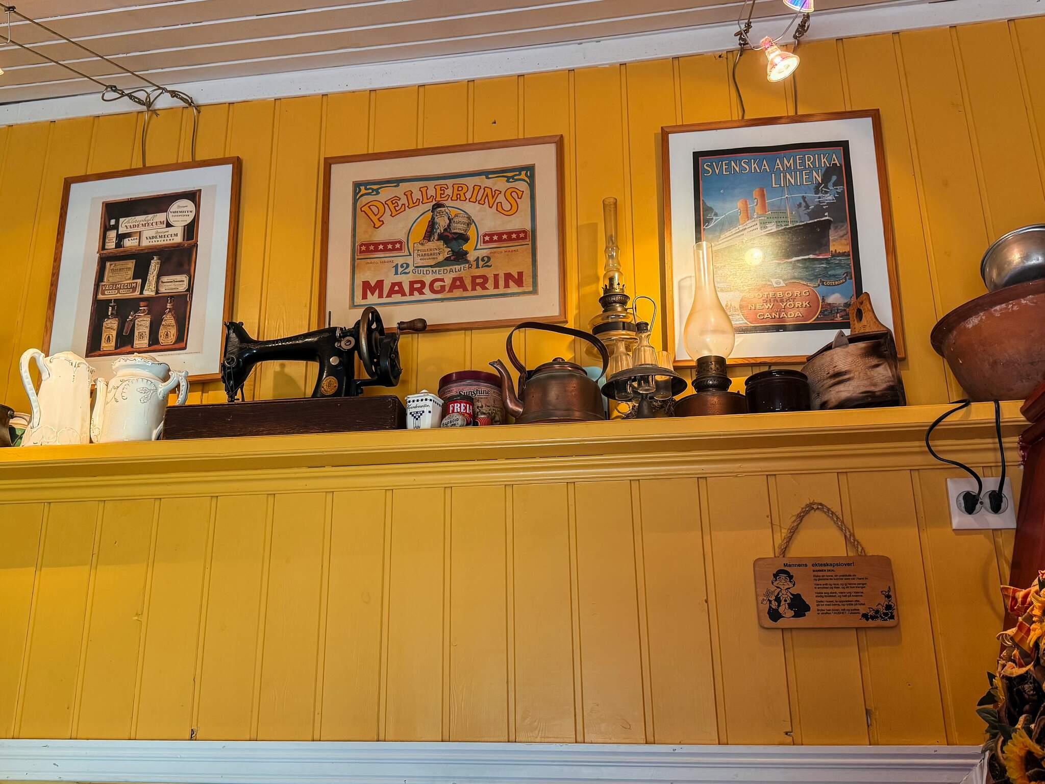 Kök: Barnstol, elspis, kylskåp m/frysfack, mikro, spisfläkt, diskmaskin, tvättmaskin, kaffetratt, våffeljärn