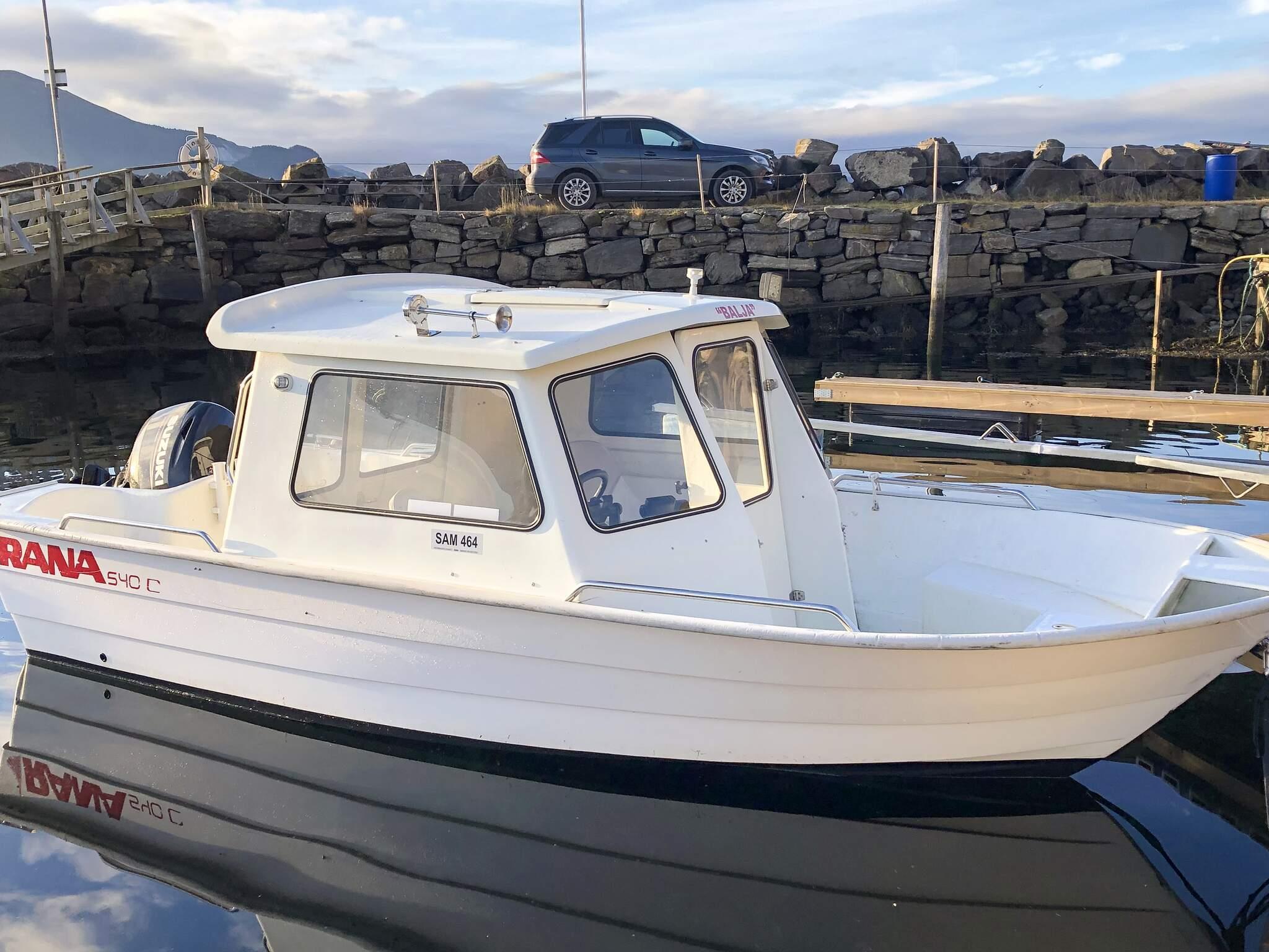1x 18 fots Rana 540 Cabin med 60 HK Suzuki, GPS/kartplotter/ekkolodd, 4 stangholdere.