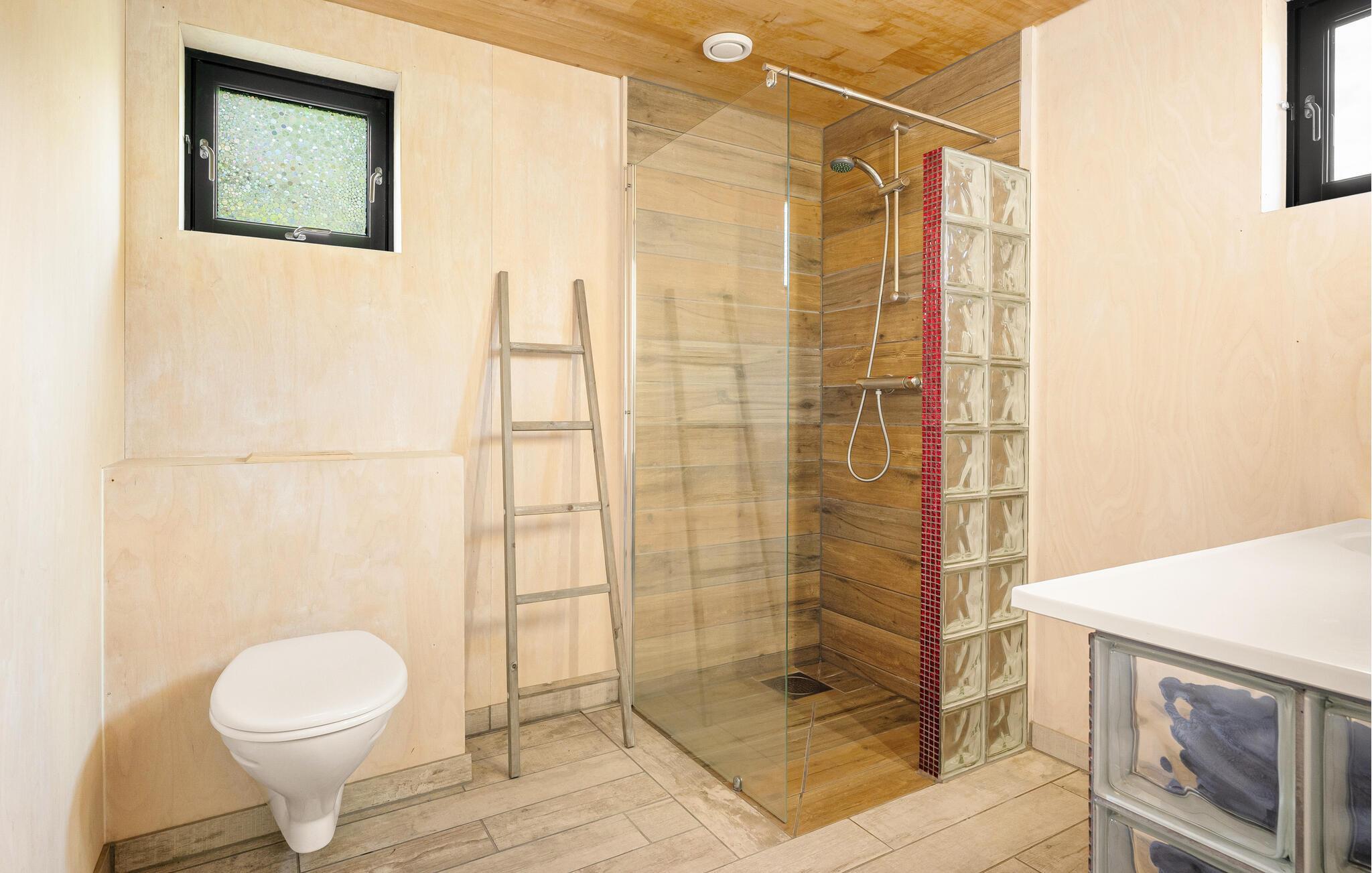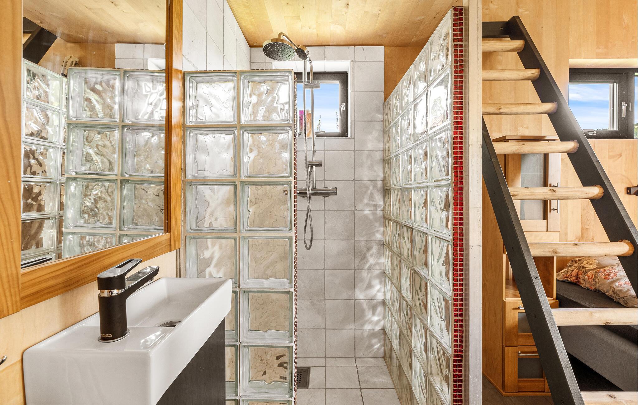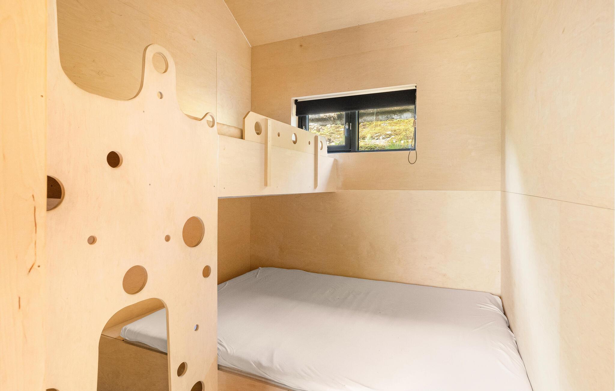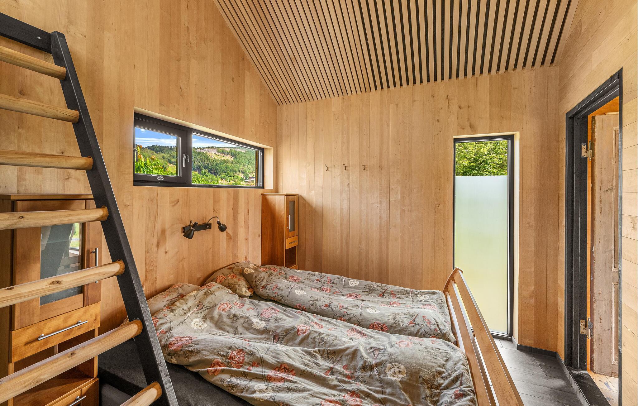 Tillbringa avkopplande dagar i natursköna omgivningar, perfekt för familjer som vill kombinera natur, komfort och aktiviteter. Detta smakfullt designade trähus erbjuder idealiska förutsättningar för en lyckad semester precis vid fjorden. Njut av det rymliga vardagsrummet med högt i tak, mycket trä och stora fönster som erbjuder utsikt över landsbygden. Gör det bekvämt för dig i soffgruppen eller duka upp matbordet för gemensamma måltider. Laga mat i det moderna köket, där flera personer bekvämt kan laga mat tillsammans. Den öppna planlösningen inbjuder till avkopplande timmar i en vänlig atmosfär.
