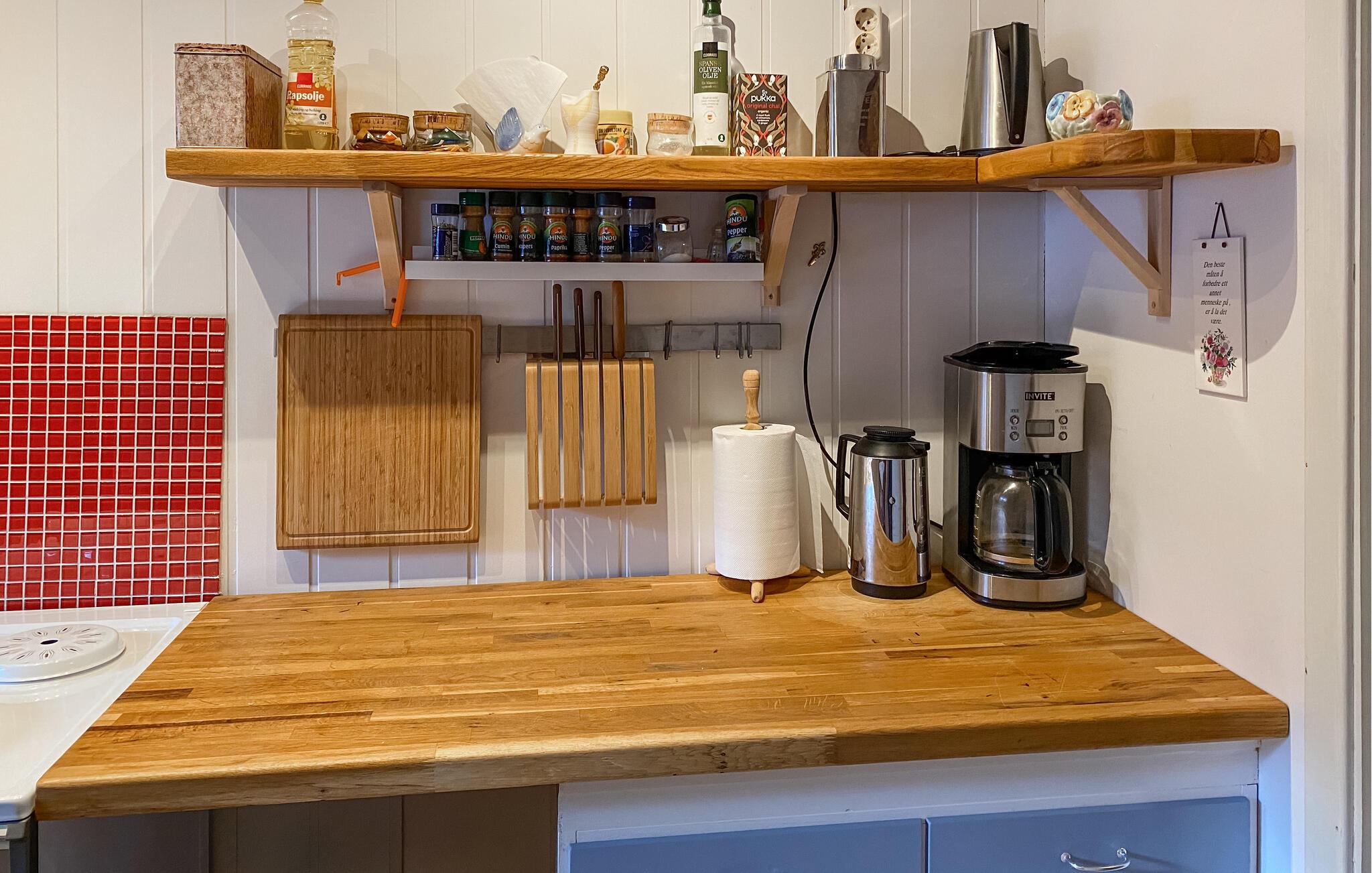 Från den lilla träterrassen och den idylliska trädgården kan du njuta av den hisnande utsikten över det omgivande landskapet och fjorden. Här kan du koppla av och uppleva lugnet i naturen till fullo.