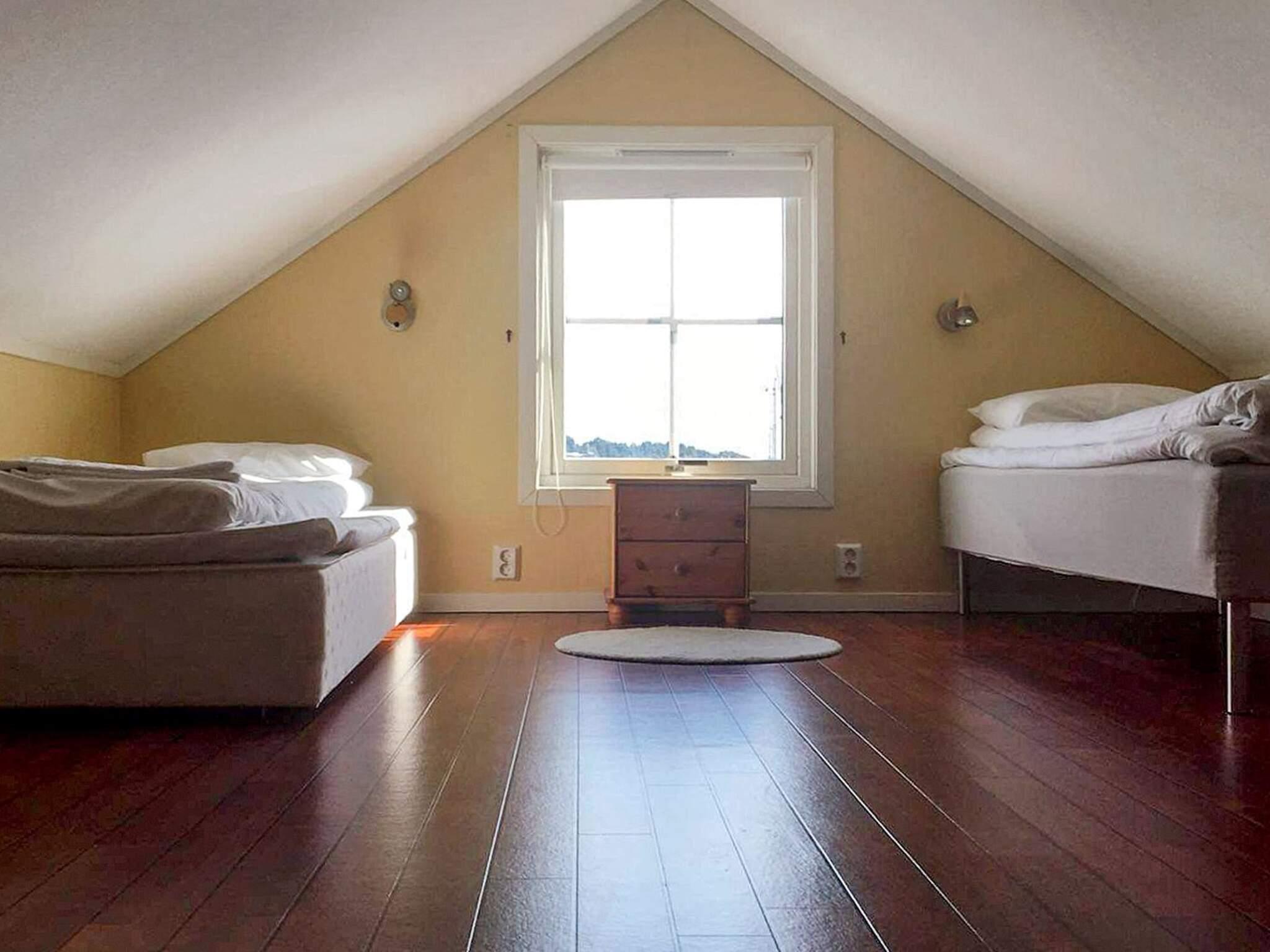 Rorbua har åpen løsning mellom kjøkkenet og stua. Internett: 500/500Mbits, på deling mellom 3 rorbuer. En bratt trapp fører opp til soverommene i toppetasjen. Sammensettbare enkeltsenger på 2 av de 4 soverommene.