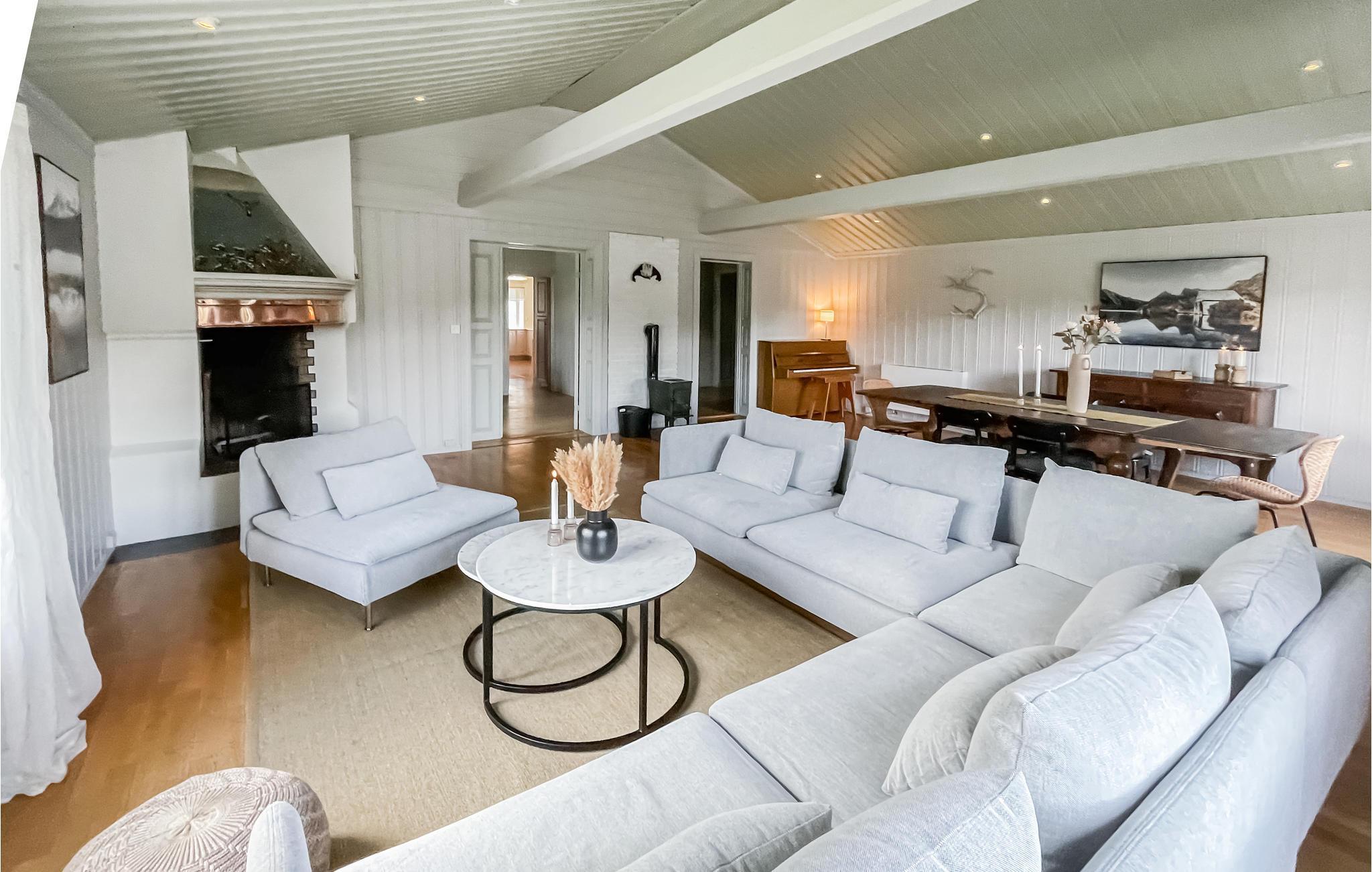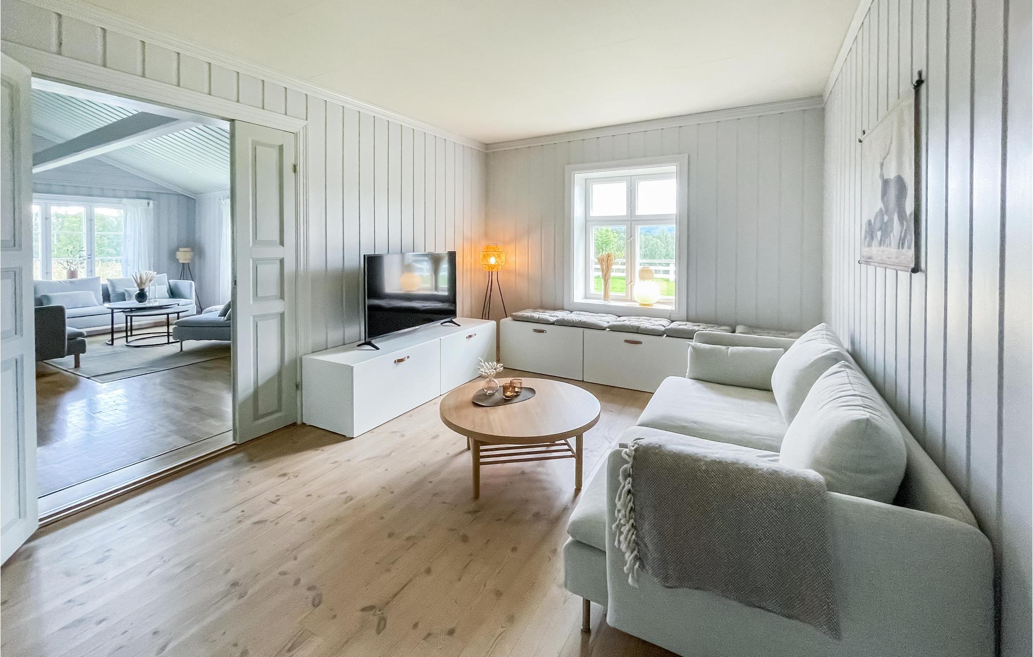 Fantastiskt semesterhus i en herrgård nära Koppang. I centrum av Stor-Elvdal, i provinsen Innlandet, ligger detta inbjudande hus omgivet av skog och ängar på Nordstu Gård. Gör dig hemmastadd i de ljusa, charmigt inredda rummen. På kvällen inbjuder köksbänken till långa samtal, eller så kan du slå dig ner i sittgruppen och njuta av den mysiga värmen från den öppna spisen. Nordstu är hem till en stor hjord av Angus-kor.