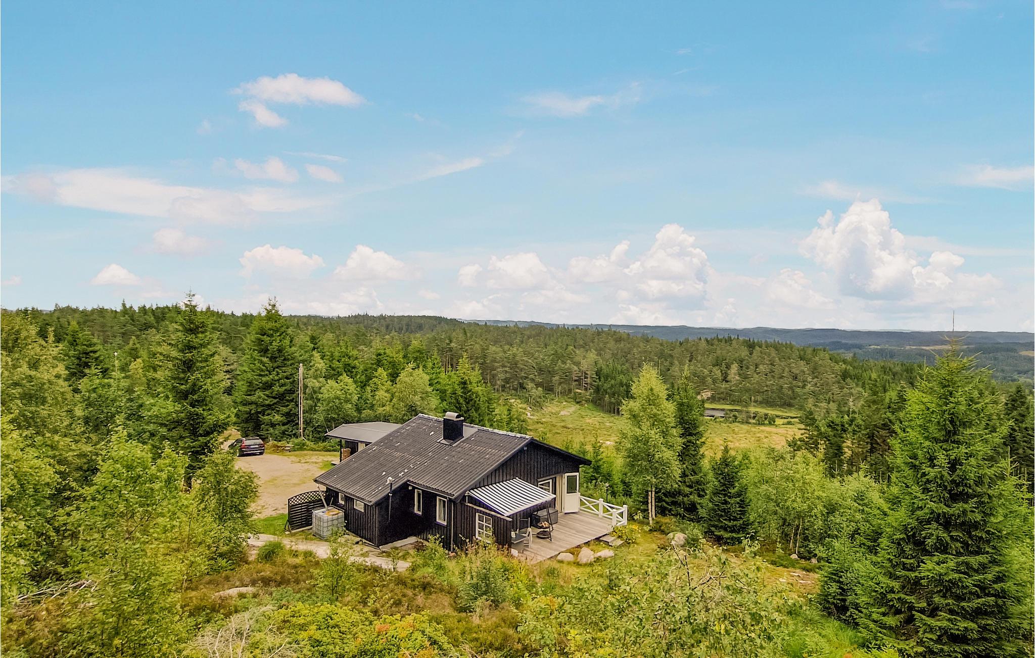 Ett enkelt och mysigt semesterhus på en solig tomt med utsikt. Här njuter du av en panoramautsikt över landsbygden och har sol från morgon till kväll. Detta är ett fridfullt område med ett rikligt djurliv med bland annat älgar, rådjur, hjortar och mycket mer. Det finns särskilt många älgar i området, så bli inte förvånad om de plötsligt går förbi huset. Området erbjuder annars många vandringsleder samt goda möjligheter till svamp- och bärplockning. Det är inte heller långt till stranden och fiskemöjligheter. Dessutom ligger en av Norges bästa laxälvar ca 5 km bort. För fler upplevelser är det drygt en halvtimmes bilresa till kusten och den gamla segelfartygsstaden Mandal. Detta är den perfekta platsen för dem som vill njuta av natur och lugn. Välkommen!