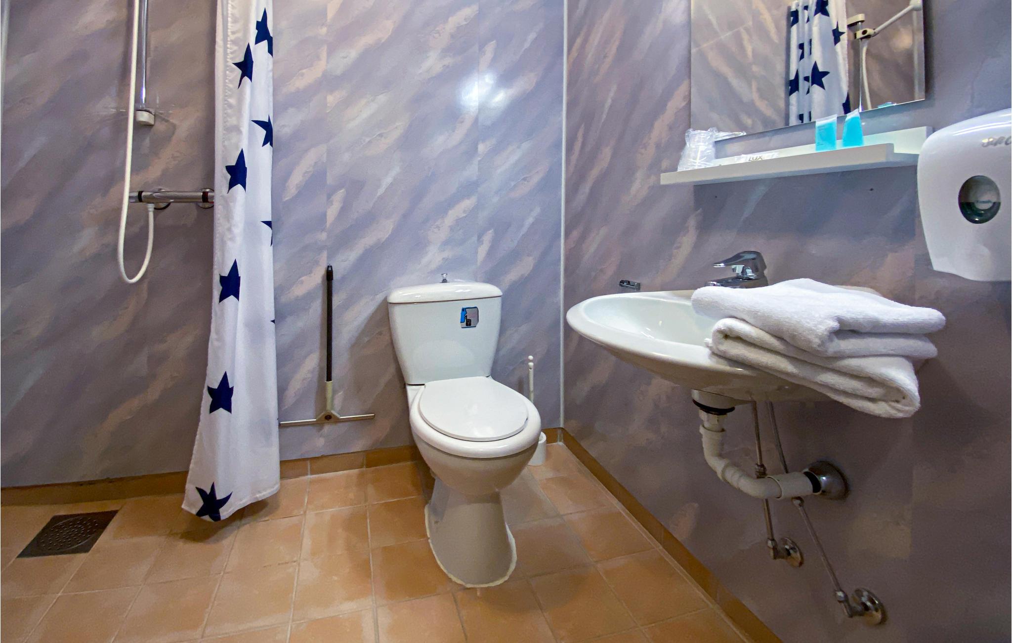 - WC med varmt och kallt vatten, Dusch